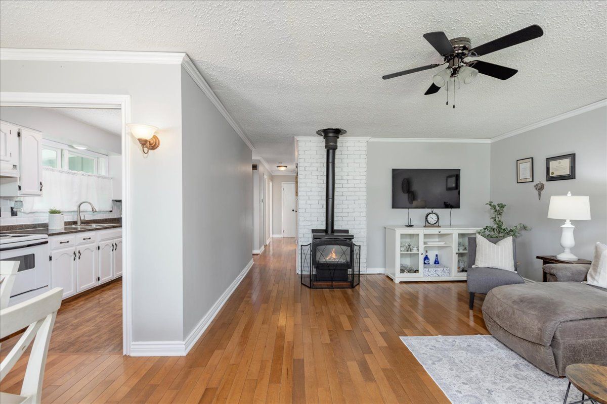 • Bright living room with a cozy gas fireplace for relaxed gatherings.