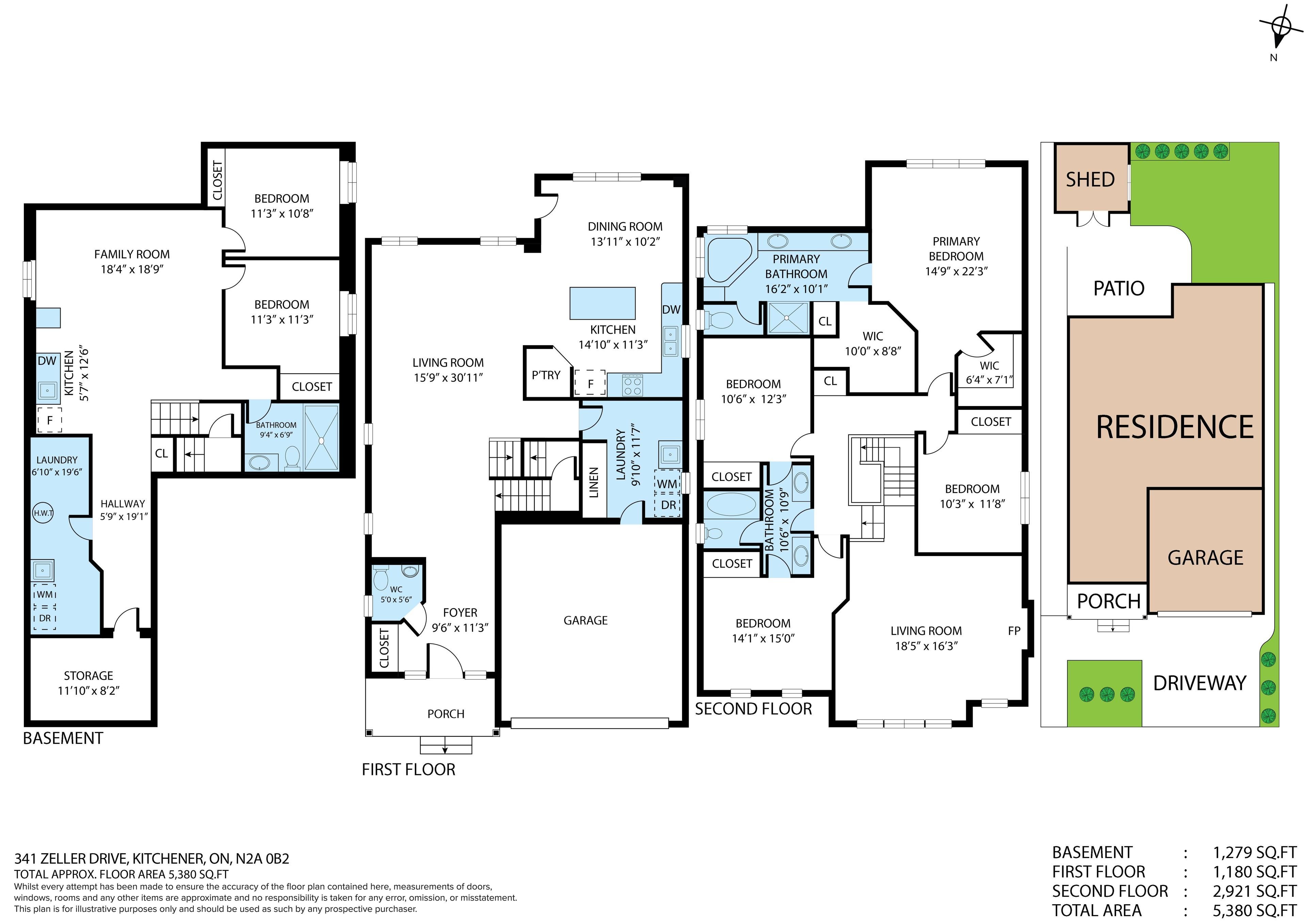 Welcome to 341 zeller drive, a magnificent hawksview-built home situated in the highly sought-after lackner woods community. Offering 2,800 square feet of elegant living space above grade plus an additional 1,200+ square feet of professionally finished basement, this property is designed for both luxury and functionality. The main floor features soaring 9-foot ceilings, maple hardwood floors, and ceramic tile throughout. The open-concept layout is anchored by a chef-inspired kitchen boasting maple cabinetry, granite countertops, a large island, and a walk-in pantry. A convenient main-floor laundry completes this level. Upstairs, a grand great room with a striking 12-foot ceiling provides the perfect setting for family gatherings. The second floor hosts four generously sized bedrooms, including a master retreat with two enormous walk-in closets and a luxurious 5-piece ensuite. Two additional bedrooms are connected by a well-appointed jack-and-jill 5-piece ensuite, offering both privacy and convenience. The newly finished basement adds exceptional versatility, featuring durable flooring, two private rooms, a spacious living area, a 3-piece bathroom, and a dedicated laundry room. Outside, the professionally landscaped front garden, exposed aggregate driveway, and interlocking pathways lead to a backyard oasis complete with a stamped concrete patio, planter box, and shed. Ideally located just steps from lackner woods public school and minutes from chicopee ski & summer resort, natural trails, highways 7/8/401, and shopping centers, this home offers an unparalleled combination of luxury, space, and convenience.