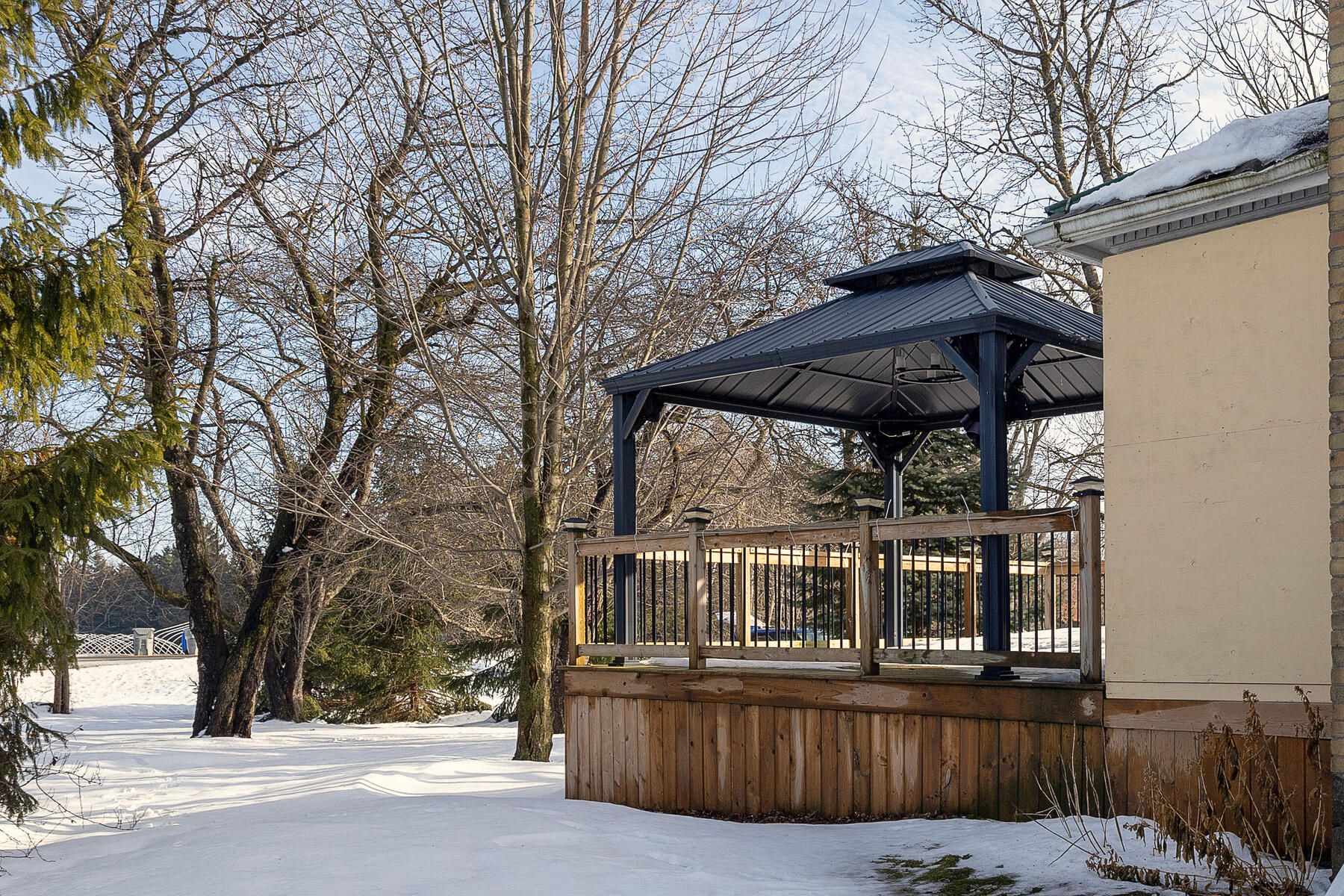 • Outdoor living with a front deck, gazebo, and a drive-thru shed.