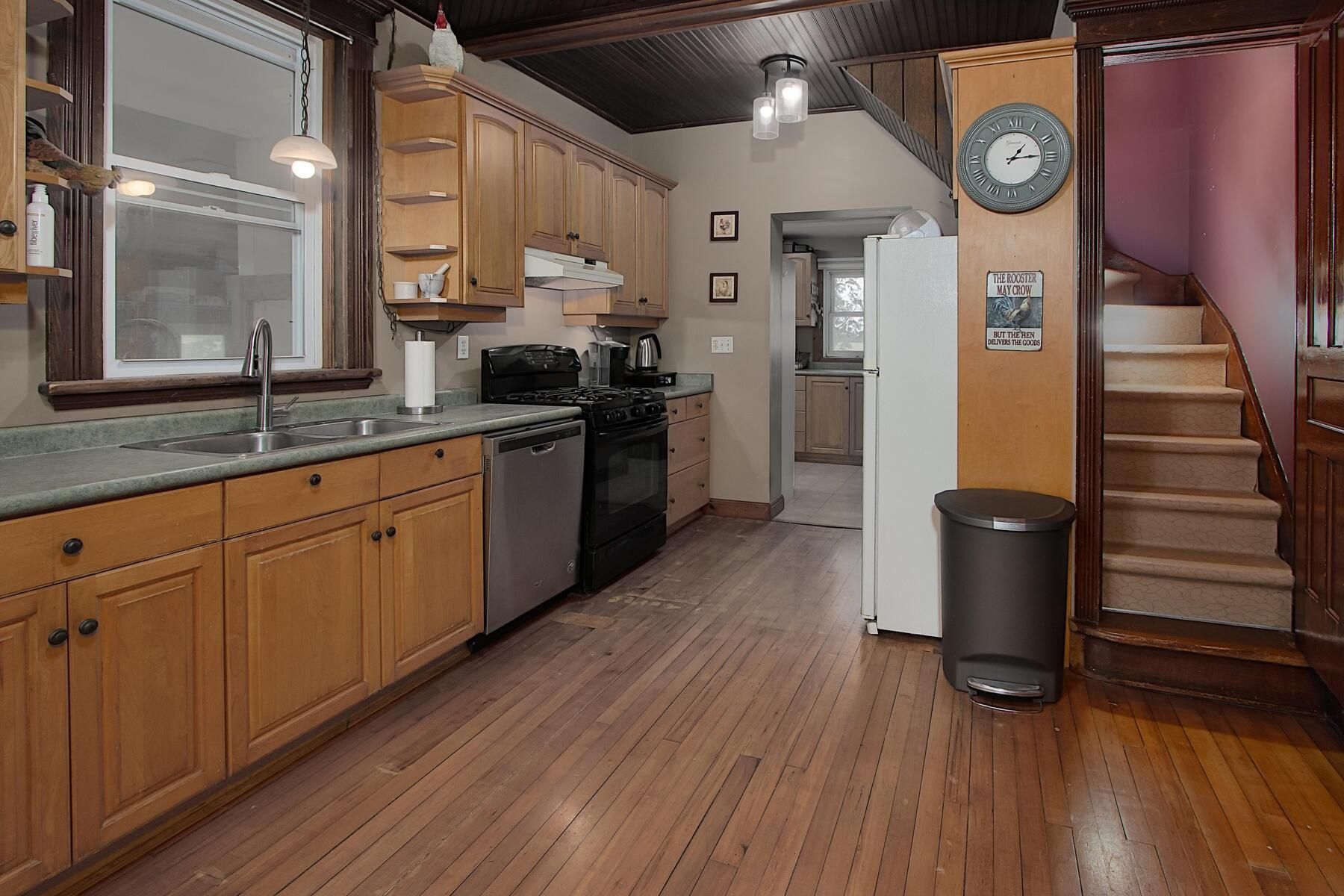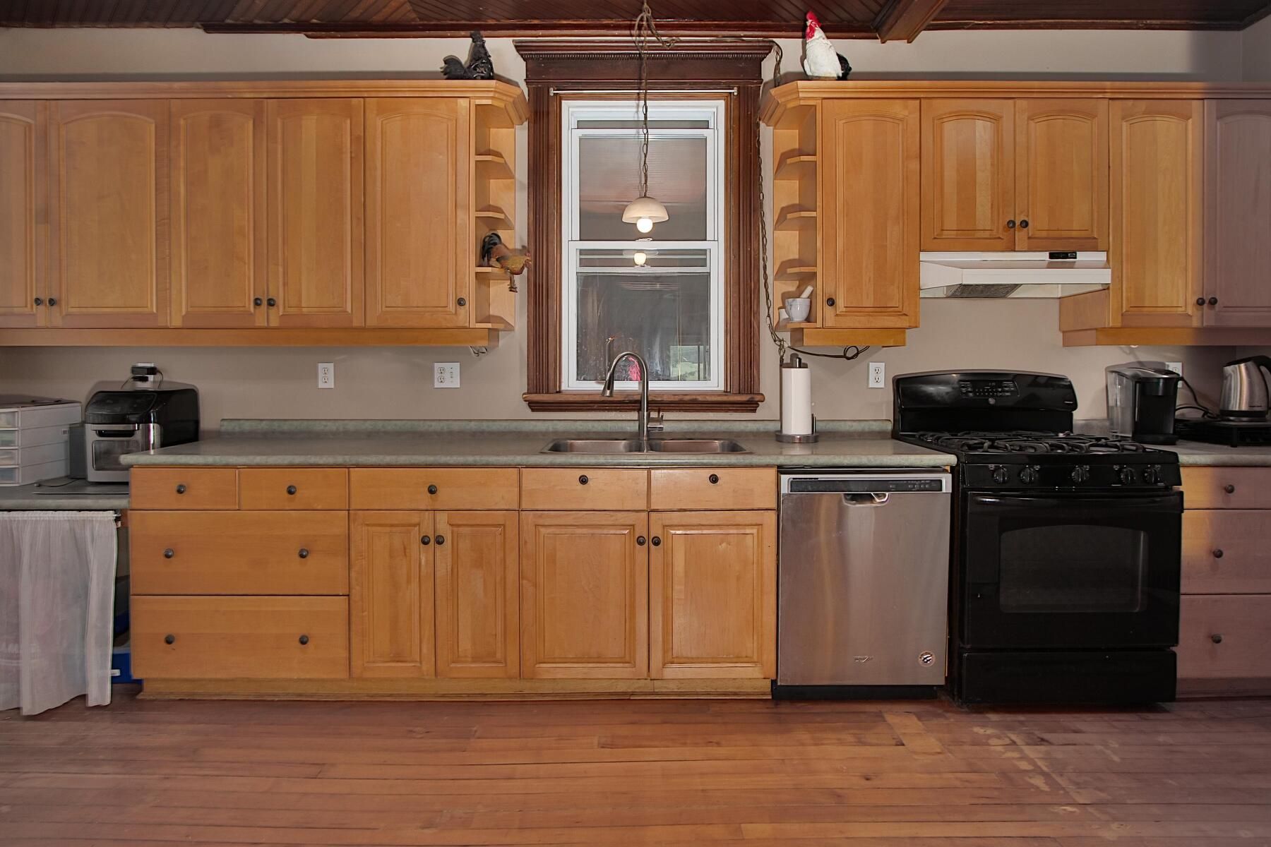 • Updated kitchen with maple cabinetry, gas stove, and included appliances.