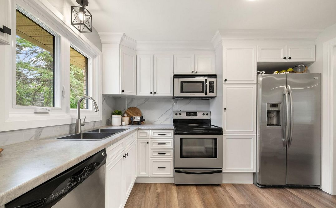 Welcome to your slice of serenity in the heart of the kawarthas! This beautifully updated 2-bedroom, 2-bath all brick bungalow sits on close to a half-acre lot just minutes from the charming town of bobcaygeon. With 1,226 sq ft of thoughtfully redesigned living space, this home blends modern upgrades with cottage-country warmth. Recent improvements include newer windows, front & garage doors, furnace and a/c. Now let's step inside where this inviting interior showcases stone fireplace at the heart of this home, seamless flooring, potlights, and decorated in neutral tones. Features a modern kitchen with stainless steel appliances, ample cabinetry, and open flow to dining room. The sunroom sanctuary overlooks a spacious, fully fenced, private garden; perfect for morning coffees and evening sunsets. Generous 2 bedrooms with the primary bedroom boasting it's own 3-piece ensuite. Plus a bonus loft with skylight which is an ideal nook for a studio, playroom, or home office. Other conveniences include main floor laundry, garage access and parking for 8. Nestled between three scenic islands and two of ontarios most beautiful lakes. So if you are seeking a peaceful year-round property that's turnkey ready to live, laugh, and play in one of ontarios most beloved cottage regions then this is the place you will love to call home.