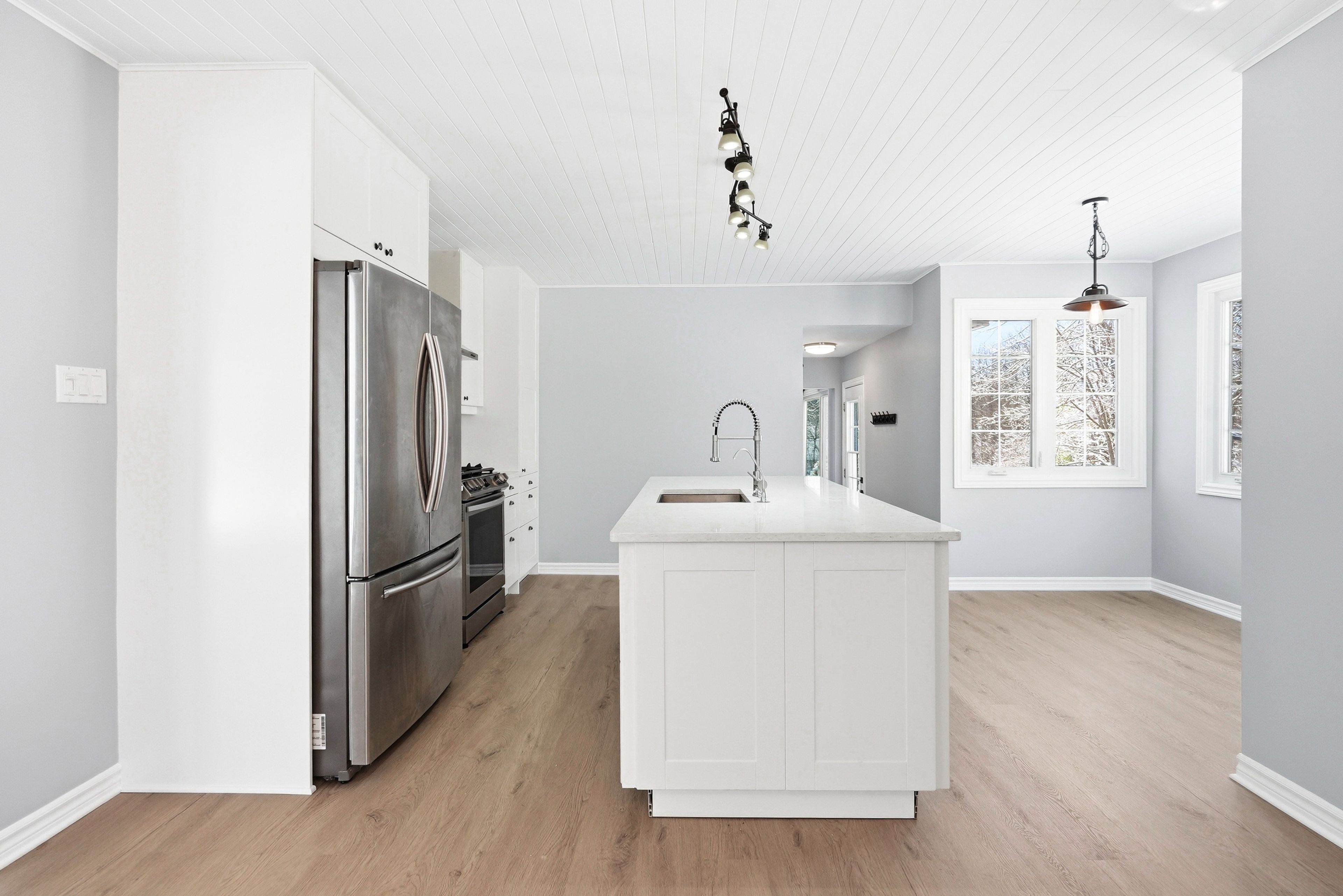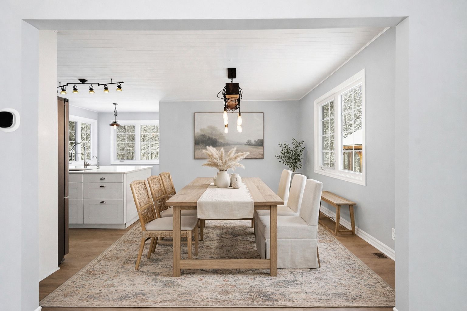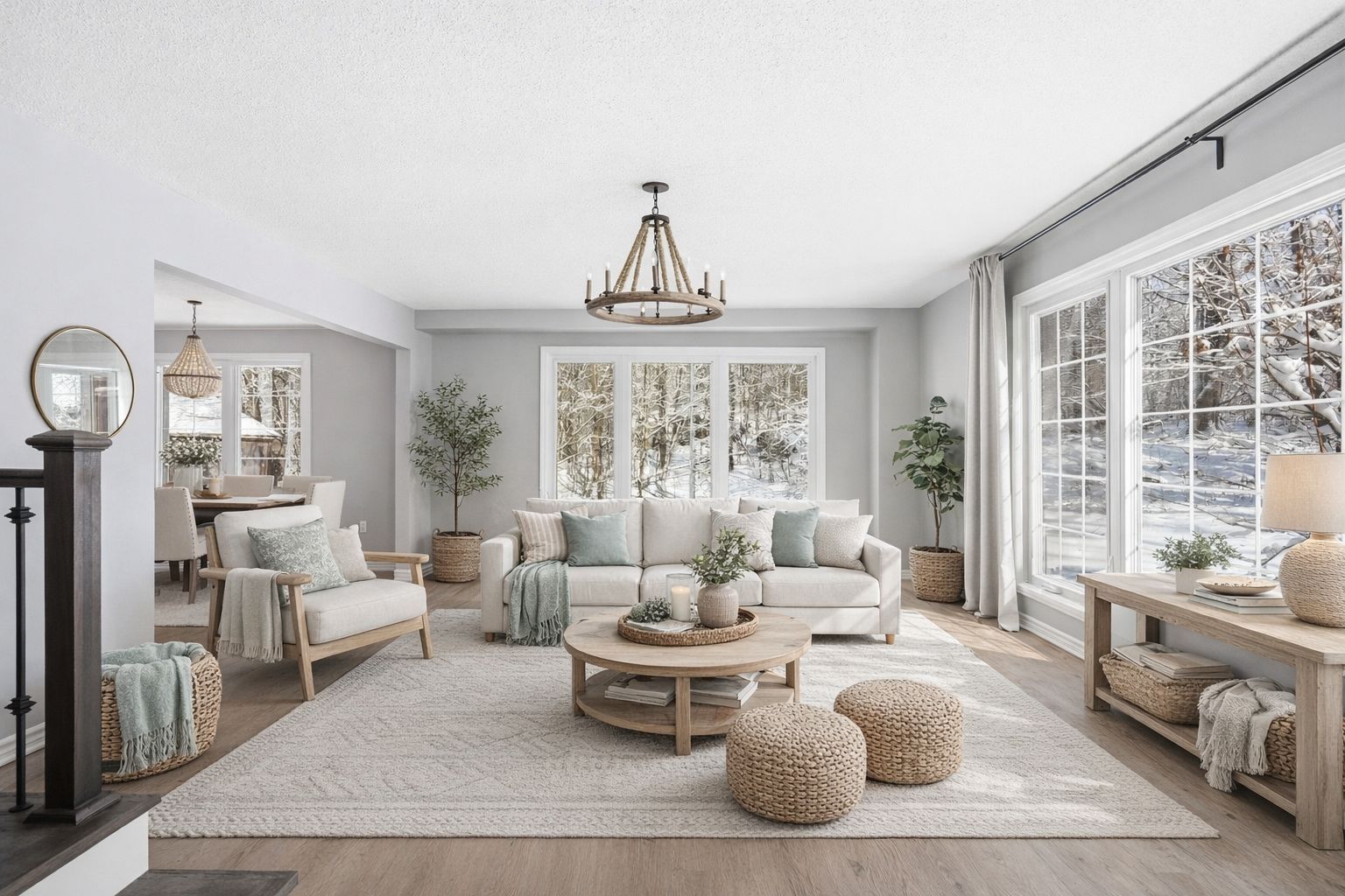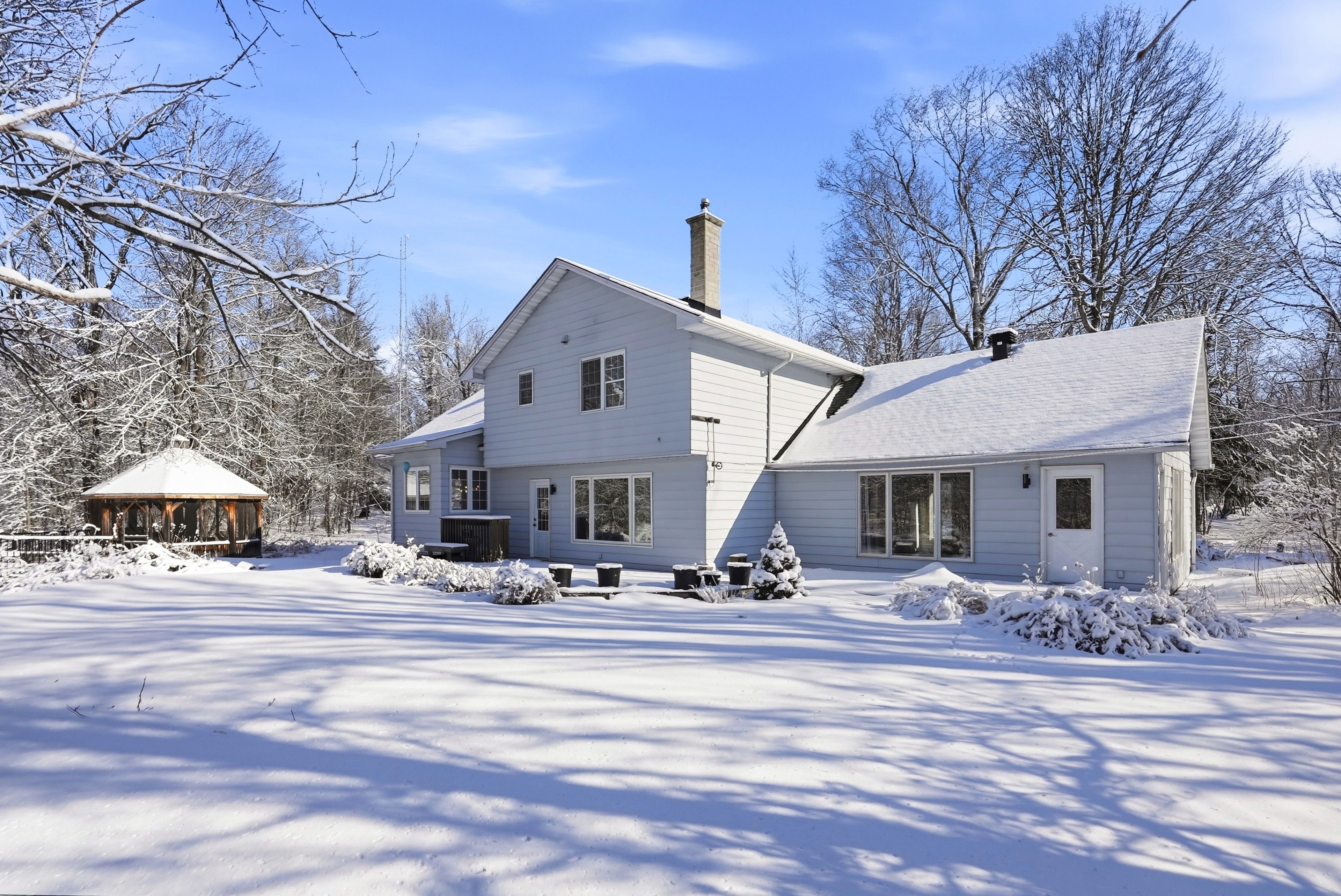 Set well back from an already quiet road, this 6-acre dunrobin property offers a rare kind of privacy, fully treed, with a creek running through the backyard and nothing but forest around you. It's the kind of setting that feels remote, but isn't, just 15 minutes to march road shopping, including the march rd mcdonald's and nearby retail. Country living, without the friction. The home has been thoughtfully updated and exceptionally well-maintained. Fresh paint and new flooring carry throughout, with natural light pouring into every level. A front office just off the entry offers a practical work-from-home setup. The main living space is warm and inviting, anchored by a wood-burning fireplace, exposed beams, and large windows that bring the outside in. The kitchen features quartz countertops and a unique eat-in pocket, perfect for a built-in diner-style booth or casual table setup. The layout is generous, with 4 bedrooms, 3 bathrooms, a recently updated ensuite, plus a massive dedicated gym space. Big-ticket items are handled, roof 4 years, furnace, a/c, and hot water tank 5 years, baseboard heating converted to central air, oil converted to propane and a reverse osmosis water system. The unfinished basement offers excellent storage now, with clear potential to be fully finished down the line. Outside is where this property really separates itself. A large deck spans the rear of the home, anchored by a substantial gazebo with a newly redone roof, ideal for entertaining or just slowing things down. Gardens, a chicken coop, and open usable land blend into the surrounding forest. Above the detached 3-car garage, the 1-bedroom loft with its own kitchen offers flexible space ideal for a teen retreat, guest suite, or creative use like a studio or woodworking space. Previously generating approximately $1,000 per month, it's there if you want the income or simply the added versatility.