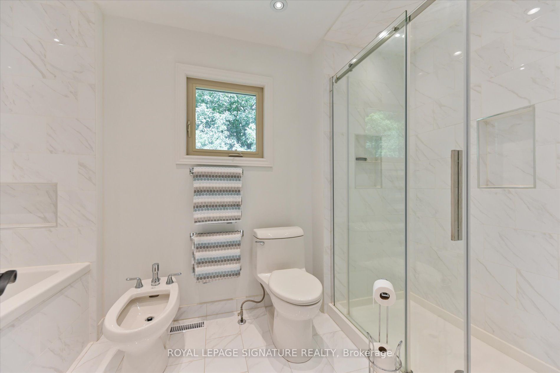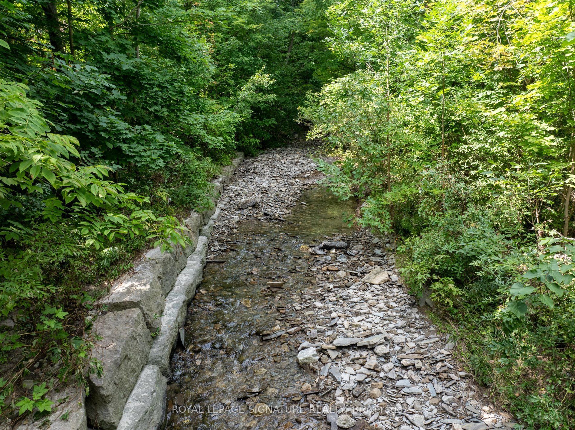 Backing on a meadering creek, soaring magestic trees and nature trails that seamlessly blend nature and urban living, there is something special about this home. Located in an exclusive enclave off coveted mississauga road and sawmill valley neighbourhood. Stepping into the foyer, you are greeted by the spectacular imported english oak staircase and the warm embrace of this beautiful home. From the luxurious hickory floors on the main and second floor, to the soaring ceilings, and beautiful chandelier, the attention to detail in this home is surpassed by few others. The main floor highlights versatility in living spaces. Hosting gatherings, enjoying family time, and work from home. The spacious main floor office can be adapted to a bedroom as the main floor also boasts a 4 piece full bath, and laundry with towel warmer . Step out to the elevated deck to bbq, off the kitchen or enjoy a cup of coffee and overlook the majestic trees , the serene meditation rock and hear the water gurgling along the creek backing onto to the property. The second floor boasts 3 large bedrooms, a renovated main bath and an exceptional primary suite with a fully renovated dressing area, 5 piece bath, walk in closet, sitting area, and studio ensuite overlooking the main floor. This ensuite space can be used as a reading area, yoga, office or homework space. The possibilites are yours to imagine and define when you make this home your own. The lower level features a second suite with a 6 piece ensuite again with bidet, walkout to the back garden deck, a play area, and a second 3 piece bath off the recreation room. 4 bedrooms plus full guest suite, main floor office, 4000 sq ft of living space, immaculately maintained home, backing onto sawmill creek and trail system. Roof (7 years), 200 amp service, hvac 2025 furnace, gentek regency windows 2013 (lifetime warranty), new eaves and downspouts, features too many to mention. Rarely offered home of this quality.