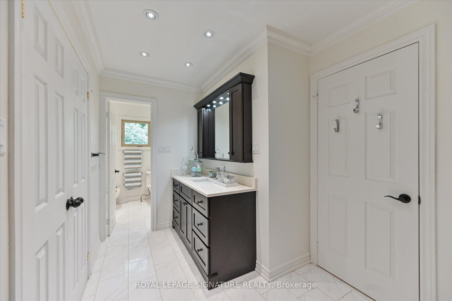Backing on a meandering creek, soaring majestic trees and nature trails that seamlessly blend nature and urban living, there is something special about this home. Located in an exclusive enclave off coveted mississauga road and sawmill valley neighbourhood. Stepping into the foyer, you are greeted by the spectacular imported english oak staircase and the warm embrace of this beautiful home. From the luxurious hickory floors on the main and second floor, to the soaring ceilings, and beautiful chandelier, the attention to detail in this home is surpassed by few others. The main floor highlights versatility in living spaces. Hosting gatherings, enjoying family time, and work from home. The spacious main floor office can be adapted to a bedroom as the main floor also boasts a 4 piece full bath, and laundry with towel warmer . Step out to the elevated deck to bbq, off the kitchen or enjoy a cup of coffee and overlook the majestic trees , the serene meditation rock and hear the water gurgling along the creek backing onto to the property. The second floor boasts 3 large bedrooms, a renovated main bath and an exceptional primary suite with a fully renovated dressing area, 5 piece bath, walk in closet, sitting area, and studio ensuite overlooking the main floor. This ensuite space can be used as a reading area, yoga, office or homework space. The possibilities are yours to imagine and define when you make this home your own. The lower level features a second suite with a 6 piece ensuite again with bidet, walkout to the back garden deck, a play area, and a second 3 piece bath off the recreation room. 4 bedrooms plus full guest suite, main floor office, 4000 sq ft of living space, immaculately maintained home, backing onto sawmill creek and trail system. Roof (7 years), 200 amp service, hvac 2025 furnace, gentek regency windows 2013 (lifetime warranty), new eaves and downspouts, features too many to mention. Rarely offered home of this quality.