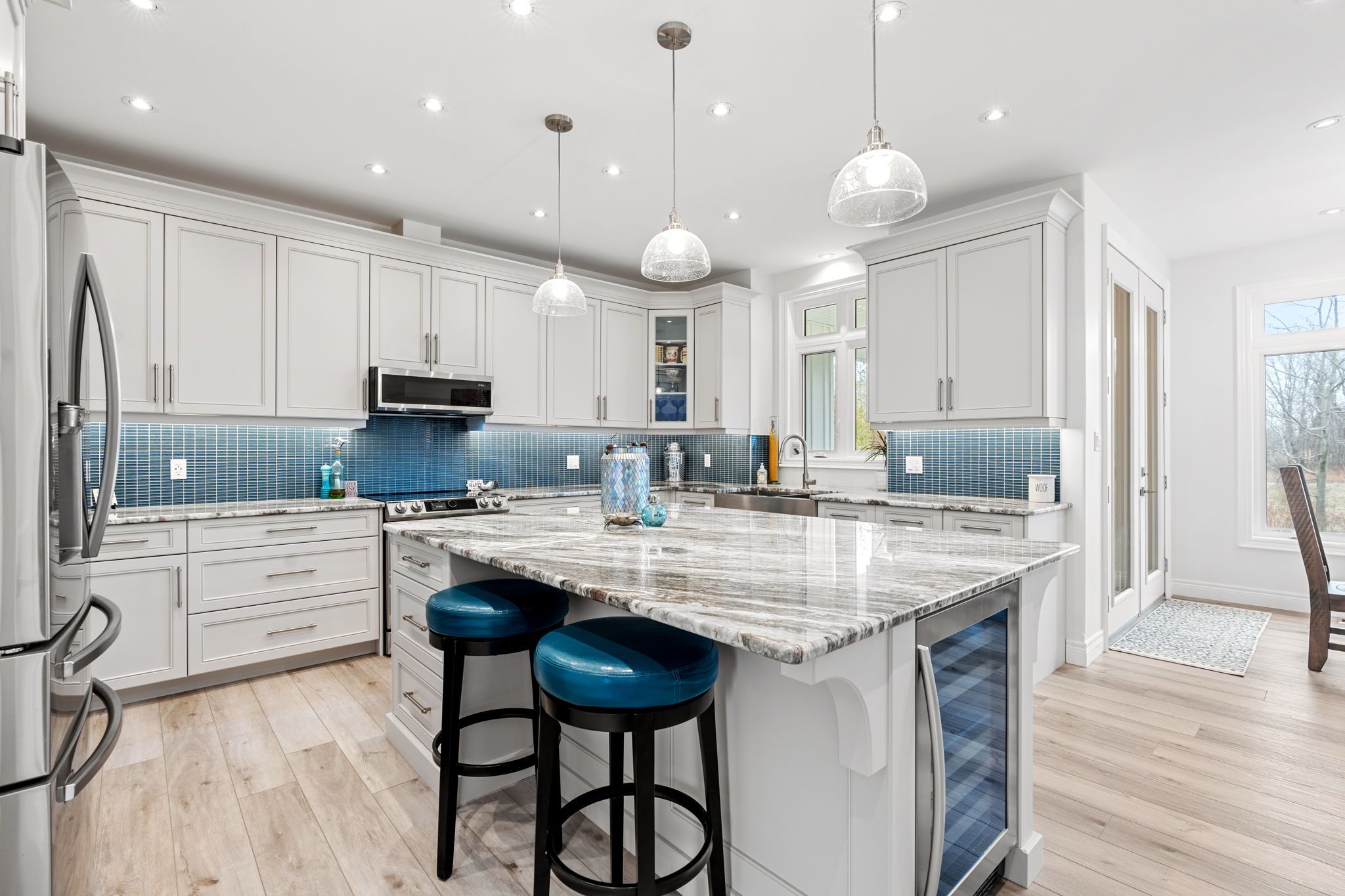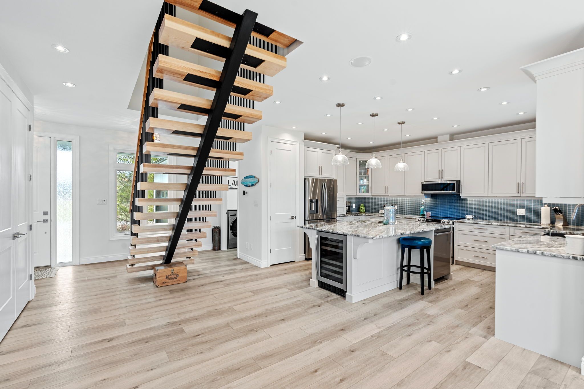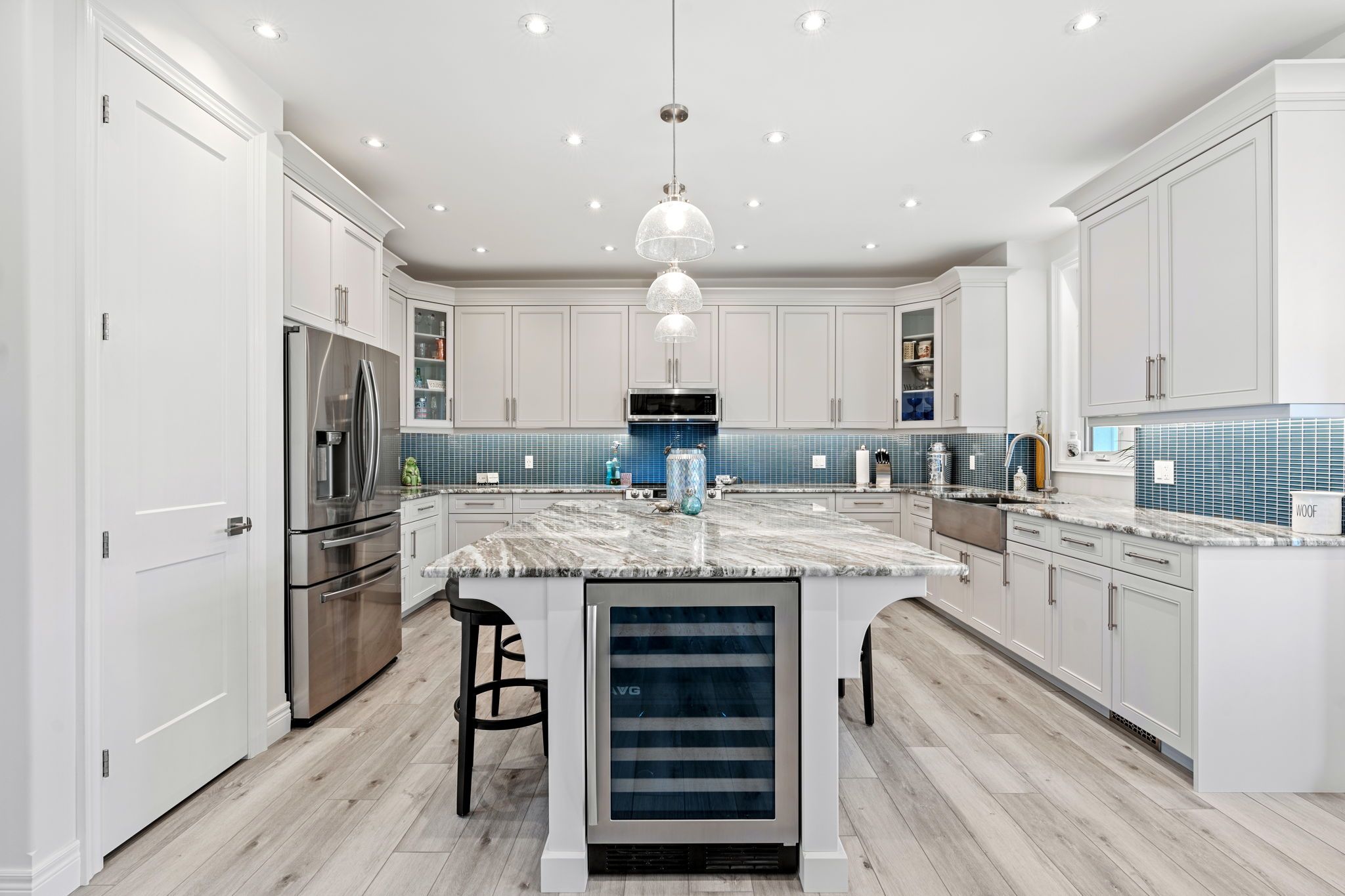 • Huge kitchen with ample counter and cupboard space, plus a wine fridge.