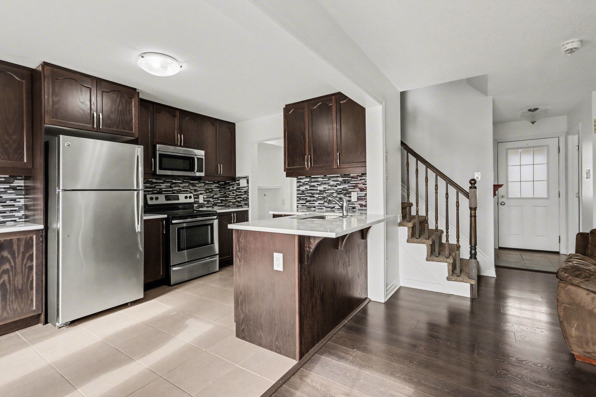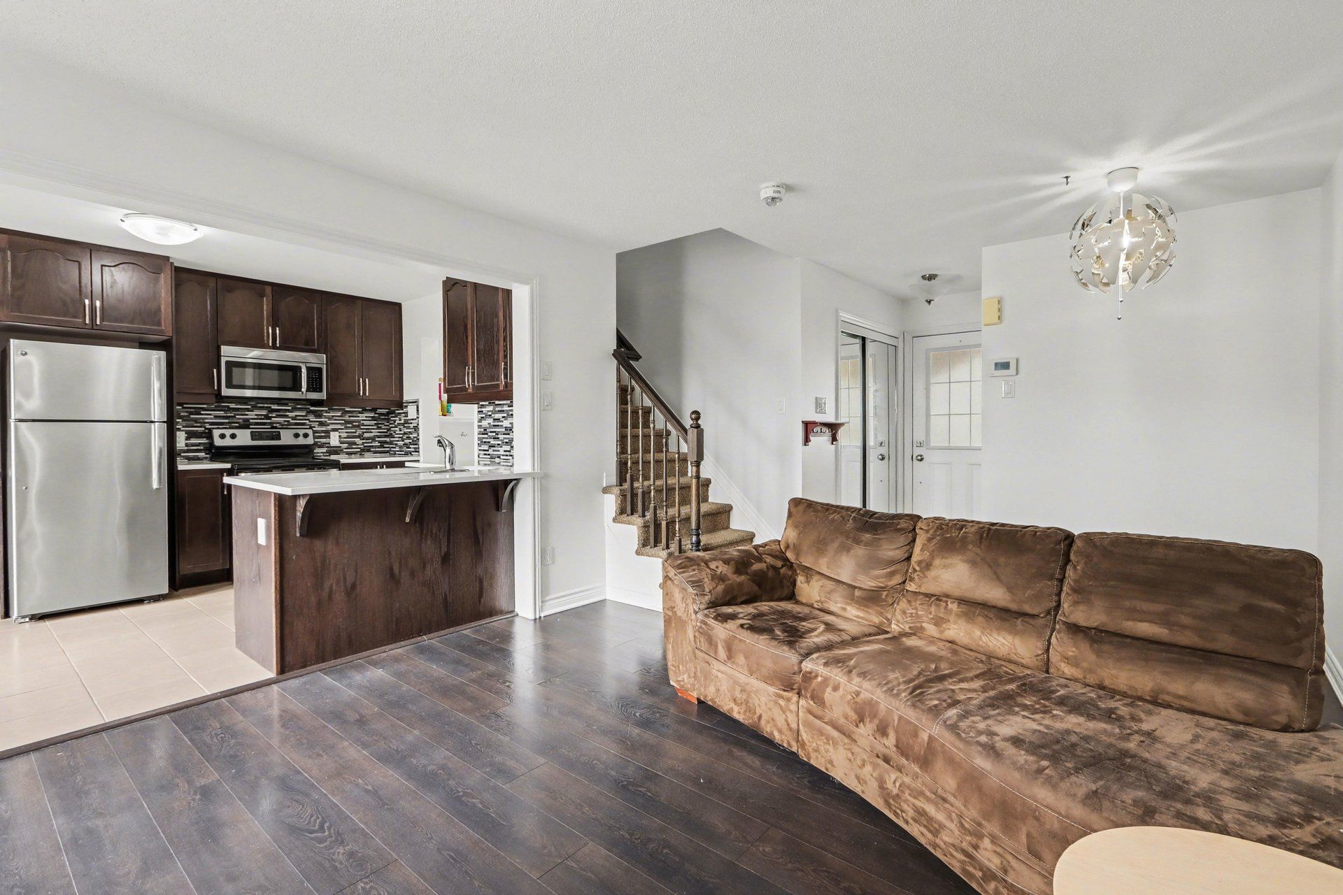 • Upgraded kitchen with quartz countertops and stainless steel appliances for modern living.