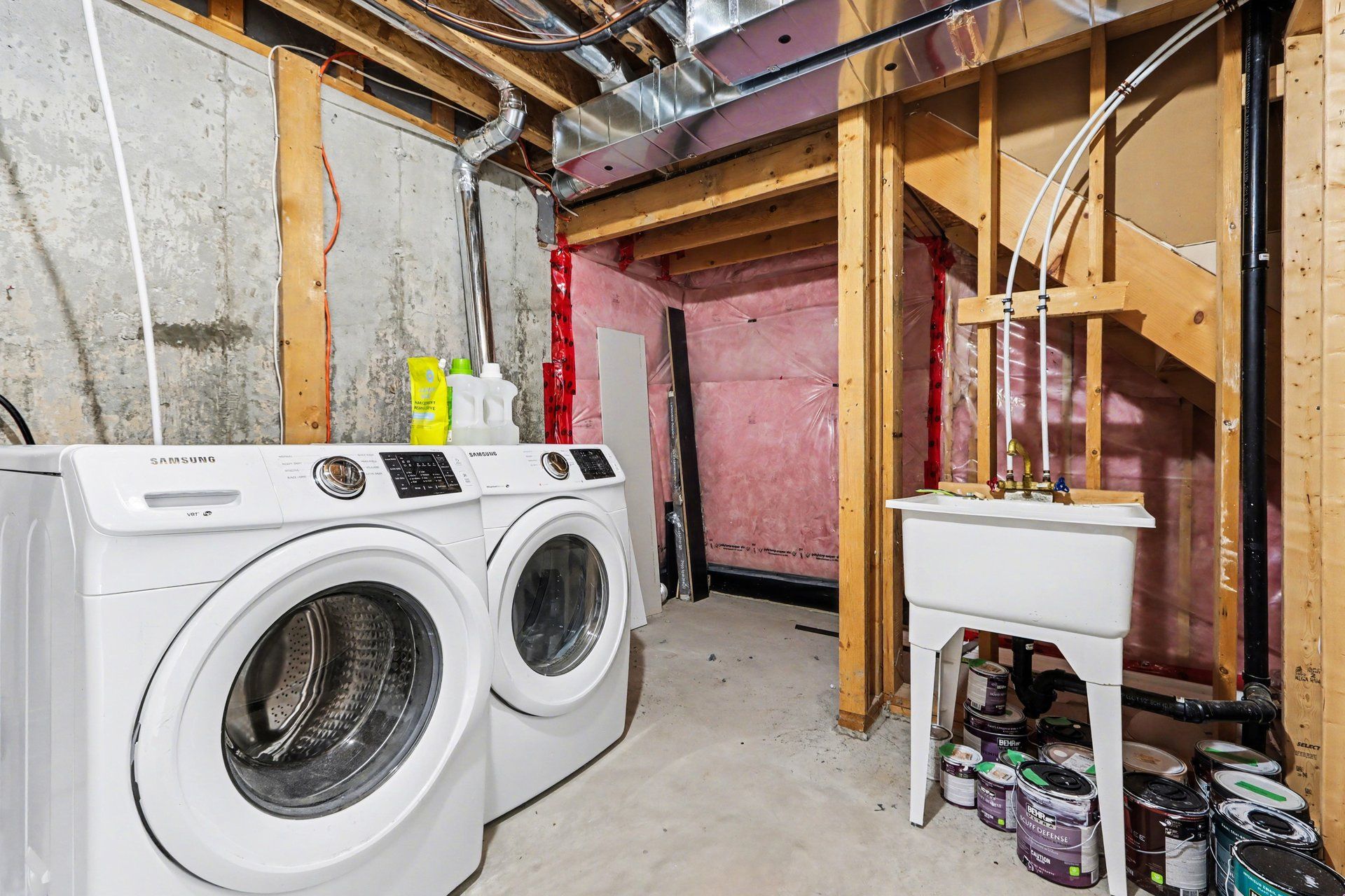 • Partially finished lower level with potential for customization and extra storage space.
