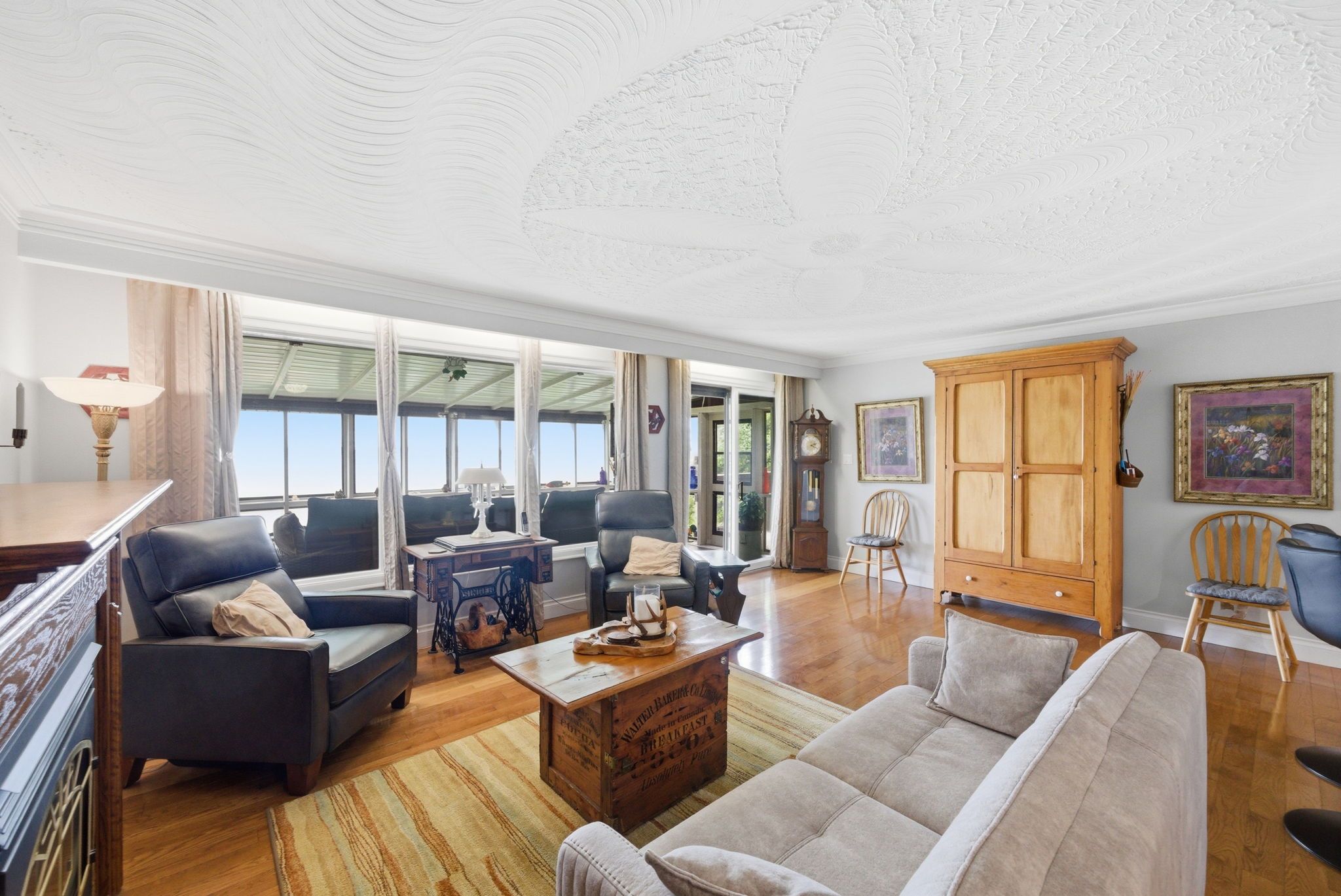 **open house may 2 from 1pm to 3pm ** rare lake scugog legacy waterfront offering with nearly 100 ft of unobstructed open water shoreline, coveted west-facing exposure, sandy-bottom swimmable shoreline and breathtaking sunsets nightly. Premium boating property with private dock, rare dry boathouse with marine rail and boating access to the trent-severn waterway - a true boater's dream on natural shoreline. Hand-picked by original scugog island developer ray fralick as his family cottage, this exceptional 4-season walkout bungalow offers over 2,800 sq ft of impeccably maintained living space with timeless coastal-inspired design and seamless flooring throughout. The main floor features an open-concept layout designed for lake views, including a spacious living room, sunroom and formal dining area oriented toward the water. The chef's kitchen showcases exquisite granite countertops, premium lg stainless appliances, double wall ovens, cooktop, breakfast bar seating and uninterrupted lake views. Main level also includes 2 bedrooms, full bath with soaker tub, and convenient laundry/pantry. The walkout lower level expands living space with 2 additional bedrooms, full bath, second laundry, wet bar/second kitchen, and a large recreation room with gas fireplace and walkout to covered lakeside patio. Exterior features on this nearly half acre lot include natural shoreline, interlock firepit area, aluminum dock, abundant parking, turnaround driveway and carport with bonus attic storage. Additional highlights include steel roof, water filtration system, high-speed internet, in-floor and in-ceiling radiant heating, plus heat pump for year-round comfort. Pre-inspected for buyer confidence. Municipally maintained year-round road access. Located minutes to port perry and great blue heron casino - offering rare lakefront privacy with urban convenience.