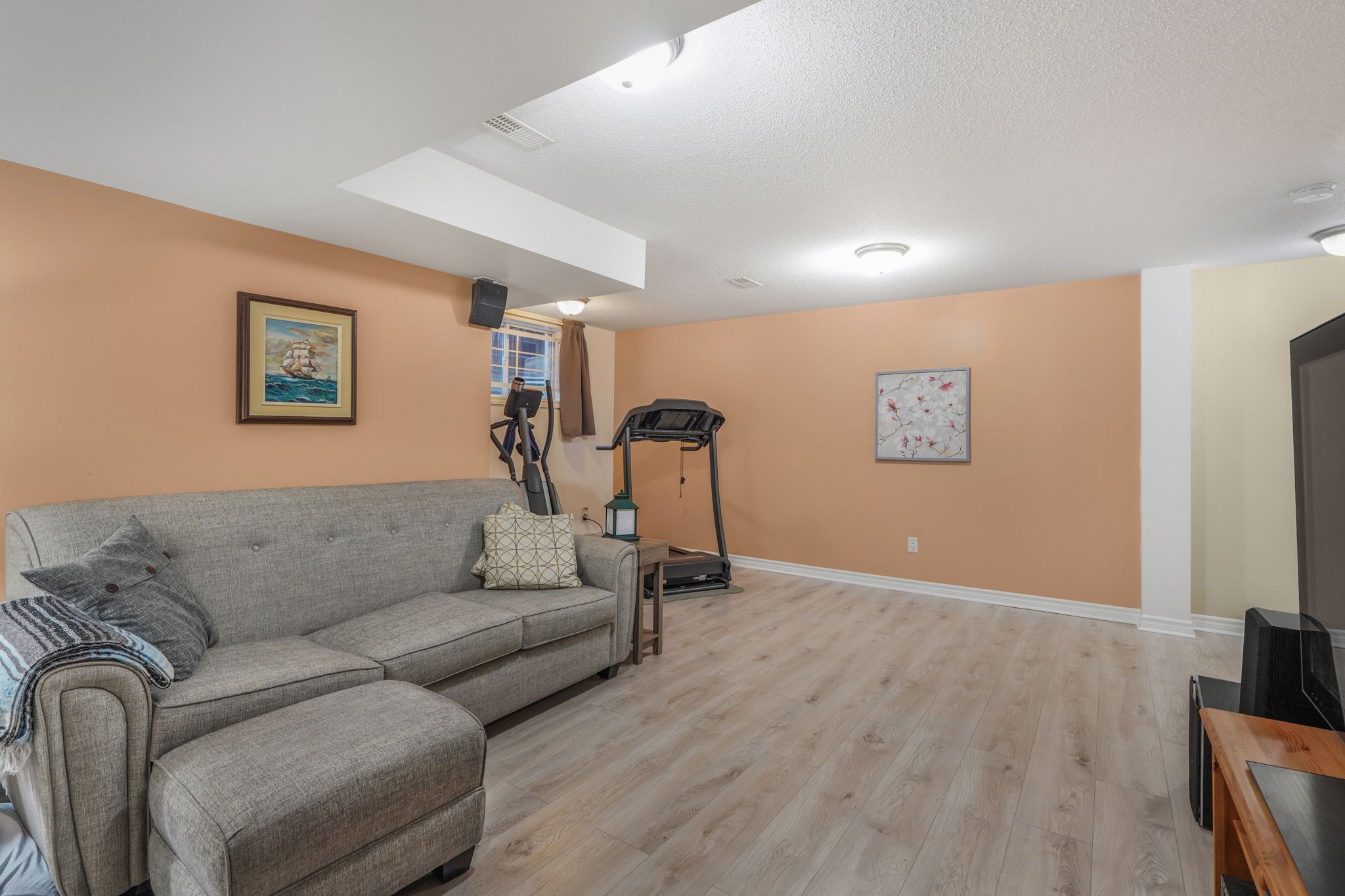 • Fully finished basement with large TV room and ample storage.