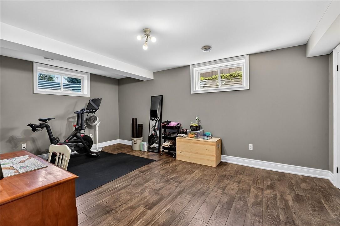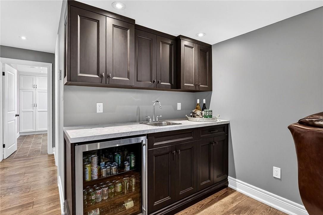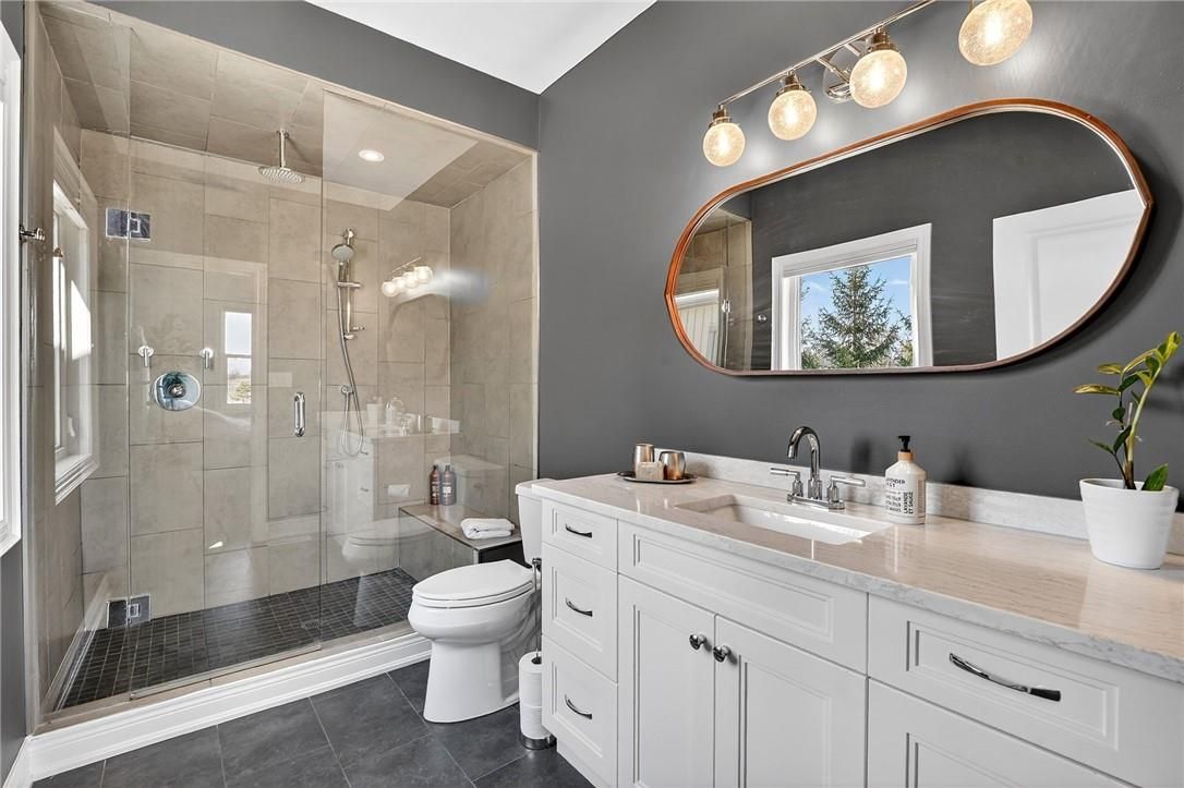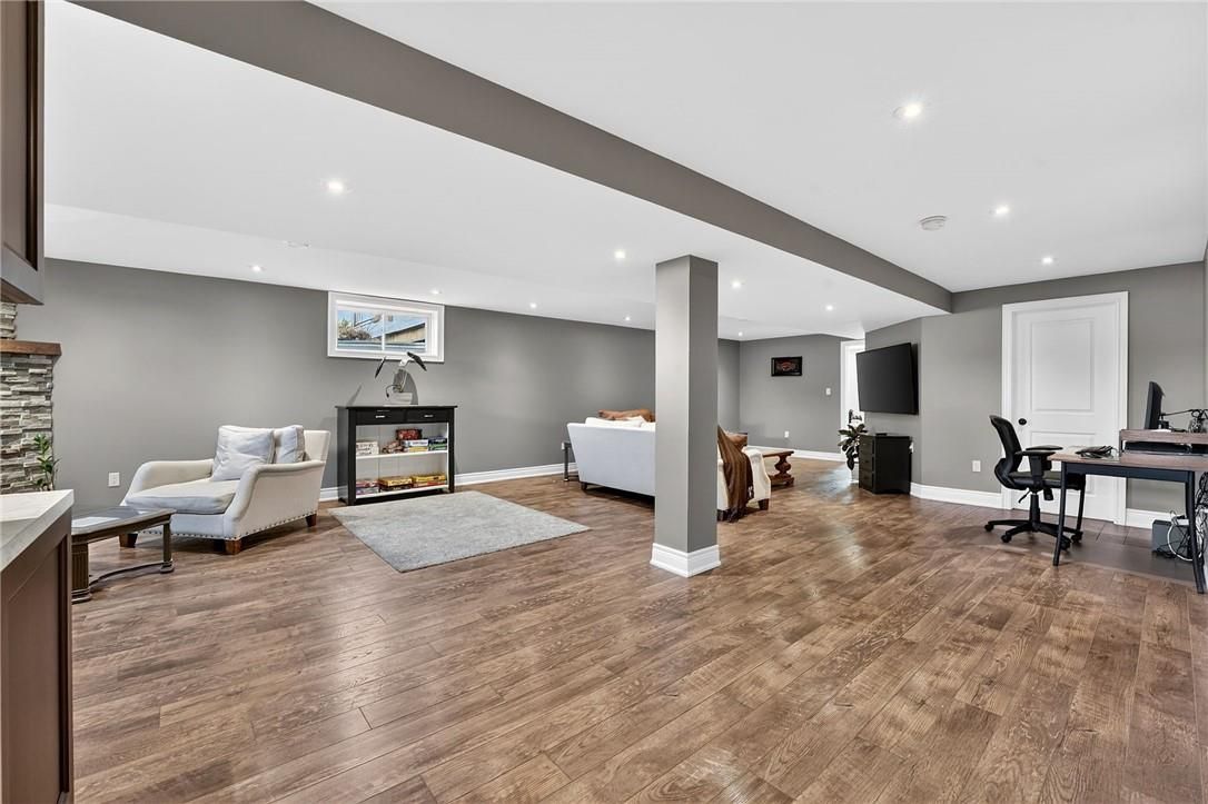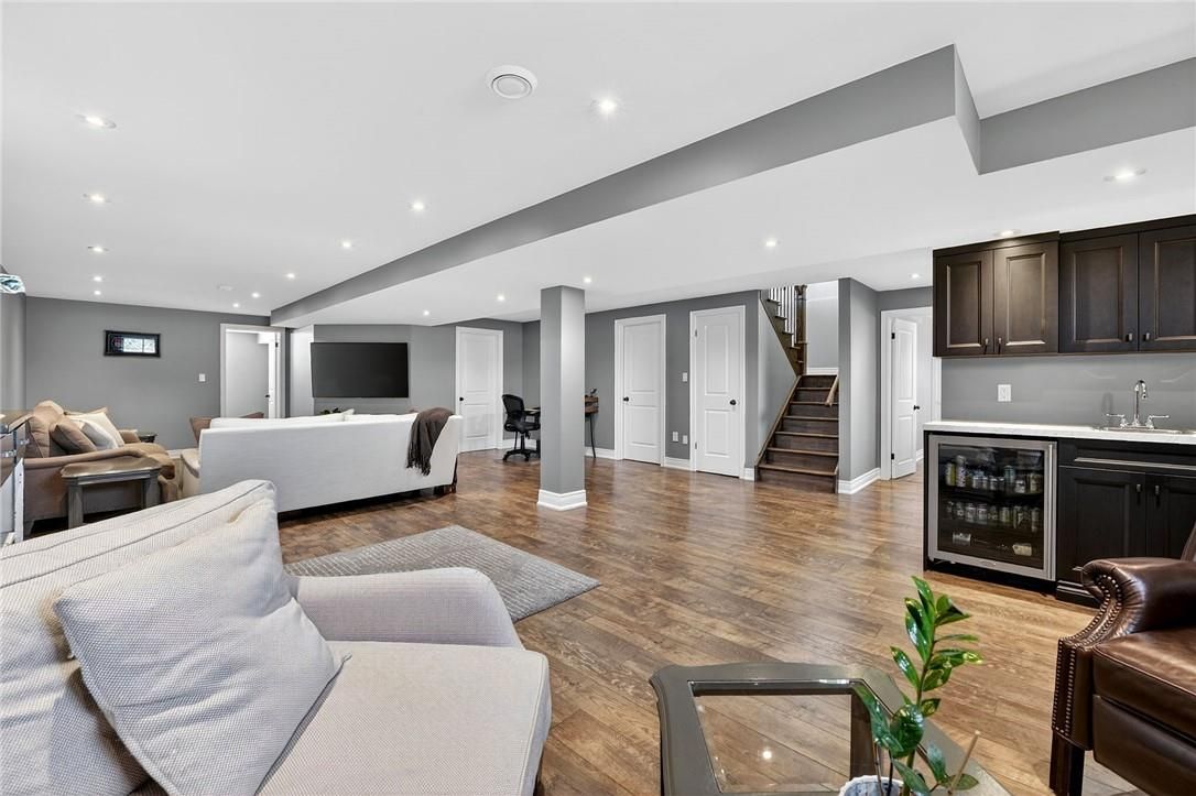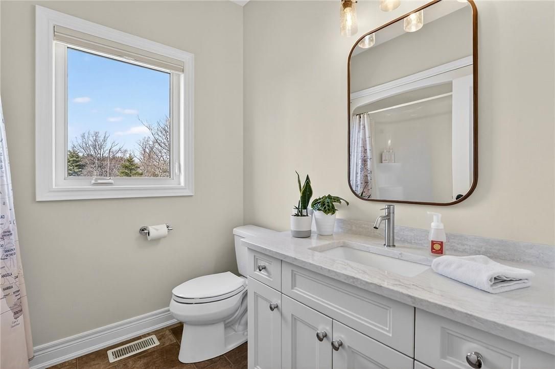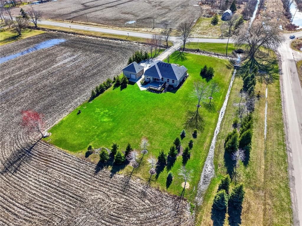 There are homes you walk into, and then there are properties that stop you before you even reach the front door. This 1,617 sqft bungalow showcases a timeless brick façade w/ over 3,000 sqft finished living space on a mature1. 5-acre country lot. A rare 24'x24' detached shop w/ spray foam insulation & in-floor heat delivers the bonus space buyers search years to find. Properties like this aren't easily replicated - everything is already here. Inside, hardwood flooring runs throughout the main level, anchored by a kitchen designed for those who love to cook & entertain. Featuring a gas cooktop, wall oven, granite countertops, ceiling-height white cabinetry w/ under-cabinet lighting, &a large island - this space is as functional as it is striking. The living room offers a gas fireplace & classic white mantel, complemented by a tray ceiling w/ crown moulding. The dining area leads to a covered composite deck w/sweeping views of open farmland. The primary suite is complete w/ a custom walk-in closet & a glass-enclosed ensuite featuring a rain head shower, spray bar, built-in bench, & quartz vanity. 2 additional bedrooms - including one w/ a vaulted ceiling & arched window - are served by a stylish 4-piece bath w/ quartz counters. A mudroom w/built-in storage & a 2-piece powder room adds everyday convenience. The lower level deserves its own spotlight. A sprawling rec room w/ pot lights & a fully equipped wet bar creates the ultimate entertaining space. A separate lounge w/ a stacked stone gas fireplace offers a cozy retreat. W/ a fourth bedroom, 3-piece bath w/ glass shower, spacious laundry room w/ custom cabinetry & oversized sink, & ample storage, this level functions as a complete second living space. Outdoors, the composite deck offers covered & open-air living, stepping down to interlock walkways & a beautifully maintained lot framed by mature trees & uninterrupted farmland views. This is a one-of-a-kind property that truly needs to be experienced in person.