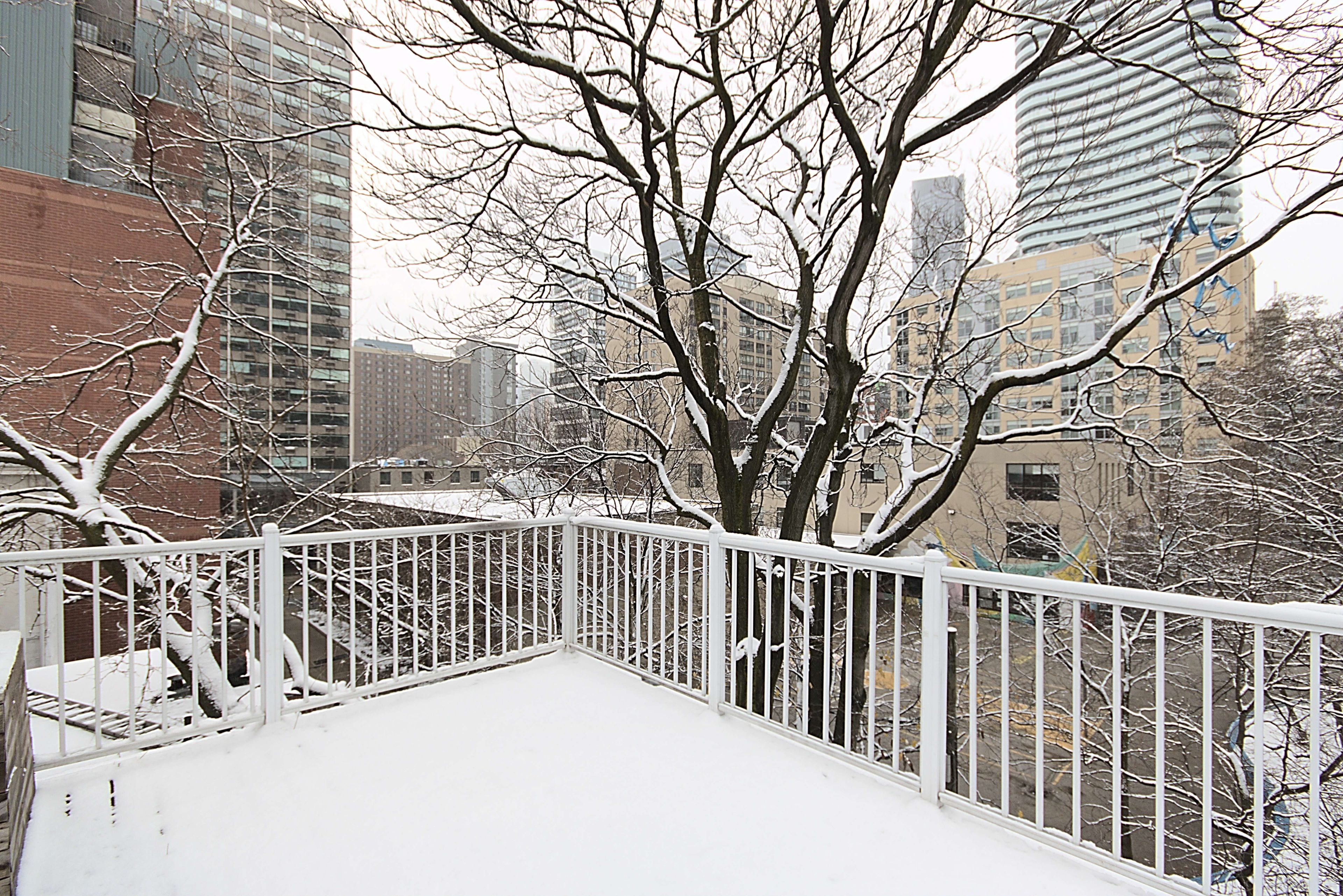 This bright and spacious top-floor 3-bedroom unit is located in one of downtown toronto's most desirable neighborhoods. It features laminate flooring and ceramic tiles, soaring ceilings, recessed lighting throughout, two skylights, and a large rooftop terrace off the living room. The renovated kitchen offers ample storage space. Residents have access to a shared backyard, perfect for relaxing or entertaining. Ideally situated just steps from the university of toronto, toronto metropolitan university, the financial district, allan gardens, loblaws, and excellent ttc transit options. Tenant pays hydro only. Street permit parking is available. An outstanding opportunity to live in the vibrant heart of the city. Tenant pays hydro. 1235 sq ft interior + 225 sq ft rooftop deck.