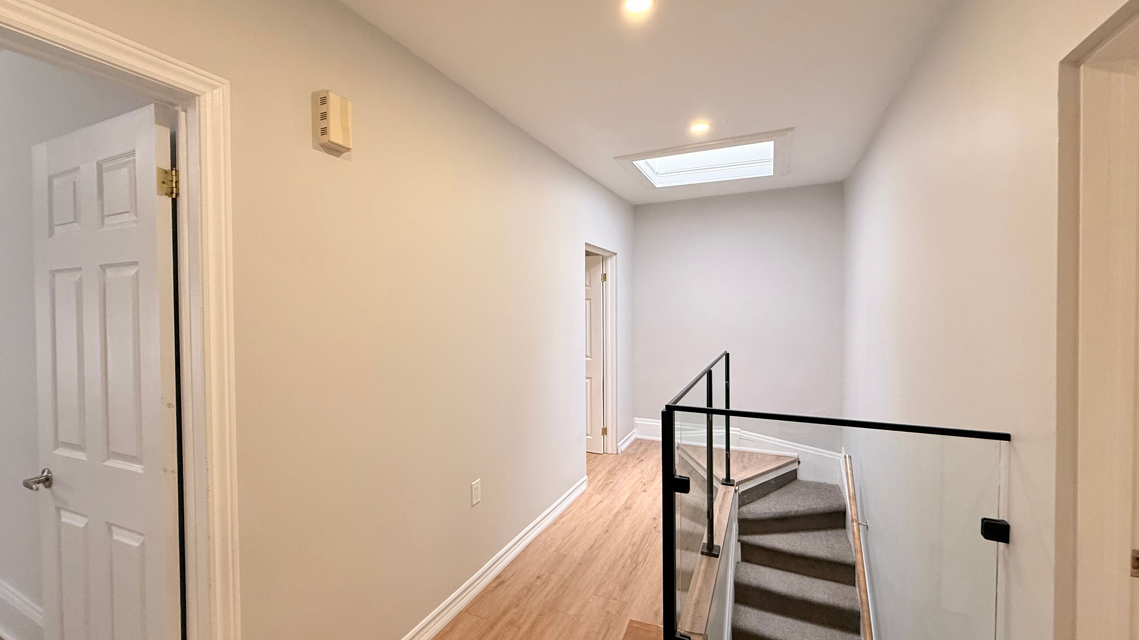 • Stylish laminate flooring, soaring ceilings, and two skylights.