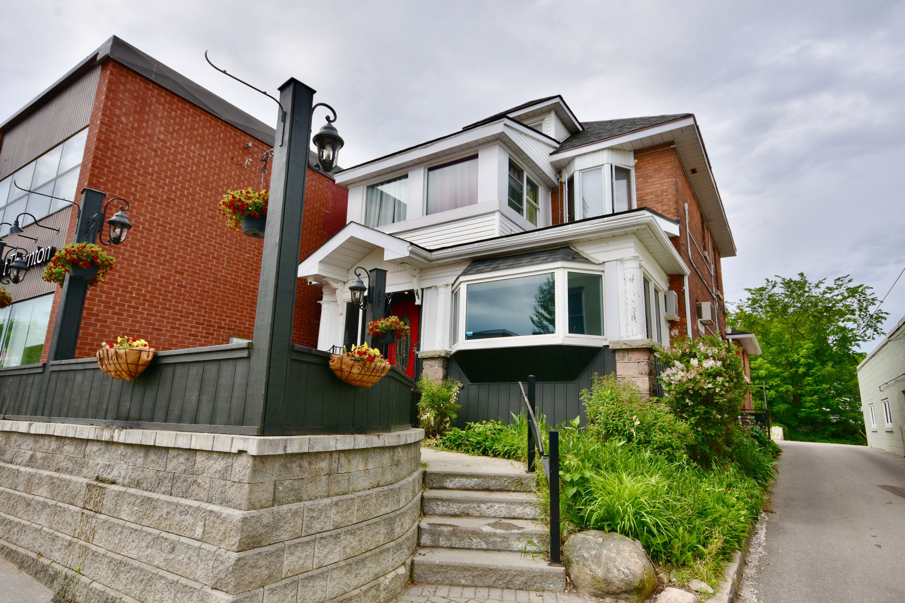 Welcome to your new investment opportunity! Nestled in the heart of midland, this stunning classic-century downtown building is a piece of midland's history and awaits your vision. Starting from a blank canvas, this property overflows with charm, promising an exciting venture for savvy investors. Commercial space is available and ready for your creative touch! Picture the possibilities: whether it's a boutique shop, a cozy café, a pho house, or a trendy gallery. The choice is yours! Upper floors: with a 3 bedroom 2 bath apt. Imagine waking up to the sun streaming through the windows. These upper levels can be transformed into your dream home, or even maybe a charming airbnb retreat. The views of the bay from select windows are simply breathtaking. As this town blossoms into a vibrant hub, you'll be at the epicentre of growth. Explore the downtown core, stroll along the town docks, and unwind in the nearby parks. The arena, curling club, ymca, and little lake park are all within reach. Main floor highlights: hardwood floors, gas fireplace, original trim & pocket doors, two public washrooms, convenience for patrons and a large front patio perfect for outdoor seating. **parking**: no worries! Ample parking awaits out back. **recent upgrades**: roof replaced (2020)**: peace of mind for years to come. - ** paved driveway** wall-hung boiler with glycol**: efficient heating. - **50-gallon hot water tank**: always ready for your needs. Don't miss out on this prime investment opportunity. This charming building is your gateway to a bright future!
