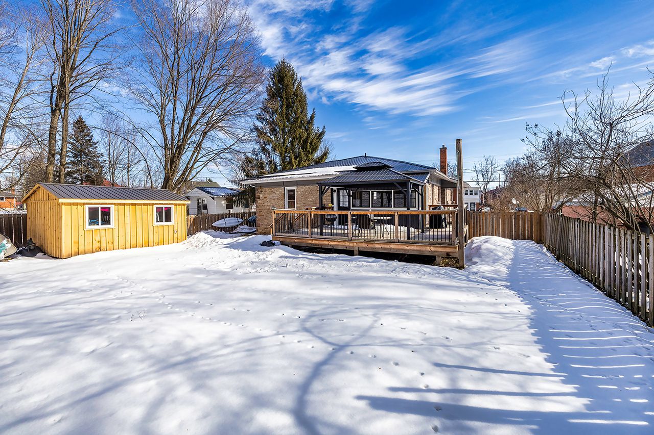 Rare in-town find in tweed. This large stone bungalow sits on an oversized lot and offers standout curb appeal with a massive covered front porch and impressive stone pillars. Inside, you'll find high ceilings, large bright windows, and original hardwood floors refinished in 2012, all adding to the home's warmth and character. Featuring 4 bedrooms, one bathroom, and a charming rear sunroom overlooking the backyard, the layout feels bright, spacious, and welcoming. Numerous upgrades and improvements have been completed, including a steel roof. The backyard offers plenty of usable space along with a new powered workshop, perfect for storage, hobbies, or projects. An ideal option for buyers looking for character, space, and a lot that truly sets this property apart.