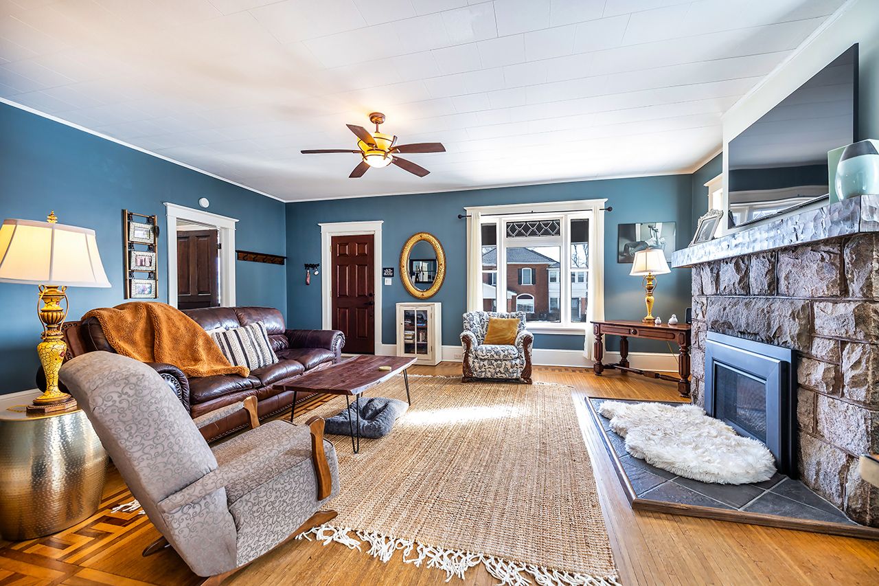 • Large stone bungalow with impressive curb appeal and a covered front porch.