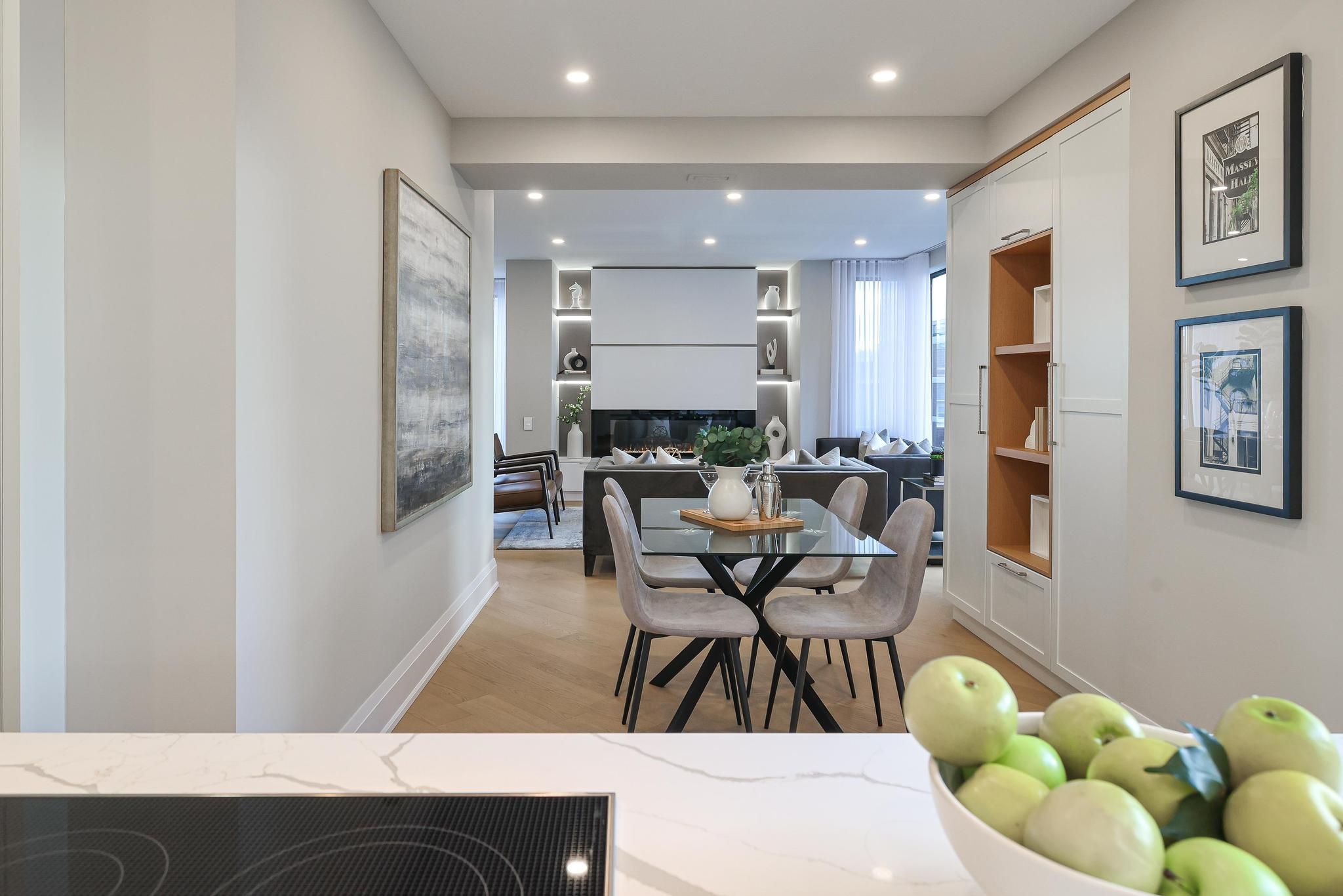 Nestled in a boutique residence of only 20 suites in prestigious forest hill village in this meticulously renovated 1,750 sf corner suite. This turnkey residence showcases 2 spacious bedrooms & 2 bathrooms, boasting bespoke finishes that elevate everyday living. Bathed in natural light, the suite features floor-to-ceiling glass creating a bright and airy atmosphere. The sumptuous light wood floors add a sophisticated touch to every room. A striking fireplace with custom built-ins & integrated lighting, serves as the anchor of the main living space. The thoughtfully designed split floor plan offers a seamless flow ideal for entertaining. The chef's kitchen is equipped with high-end miele appliances, a stunning quartz center island with overhead hood fan & ample cabinetry. Breathtaking views of the surrounding tree canopy. Retreat to the gracious primary suite, featuring custom built-in cabinetry & a spa-like ensuite, complete with double sinks, a spacious walk-in shower with bench, heated floors & heated towel rack & exquisite finishes that exude opulence. The generous second bedroom is the epitome of comfort & style, while the additional bathroom boasts a luxurious soaker tub, heated floors & towel rack. This impressive suite also includes a full laundry room with sink and extra storage. Completing the package are 2 parking spaces & large locker. Situated just steps away from the village, loblaws, boutique shops & fine dining options, as well as winston churchill park & scenic ravines. Public transit is conveniently around the corner. This exceptional residence harmonizes exquisite design with an unbeatable location, setting the stage for an enviable lifestyle in one of toronto's most sought-after neighbourhoods.