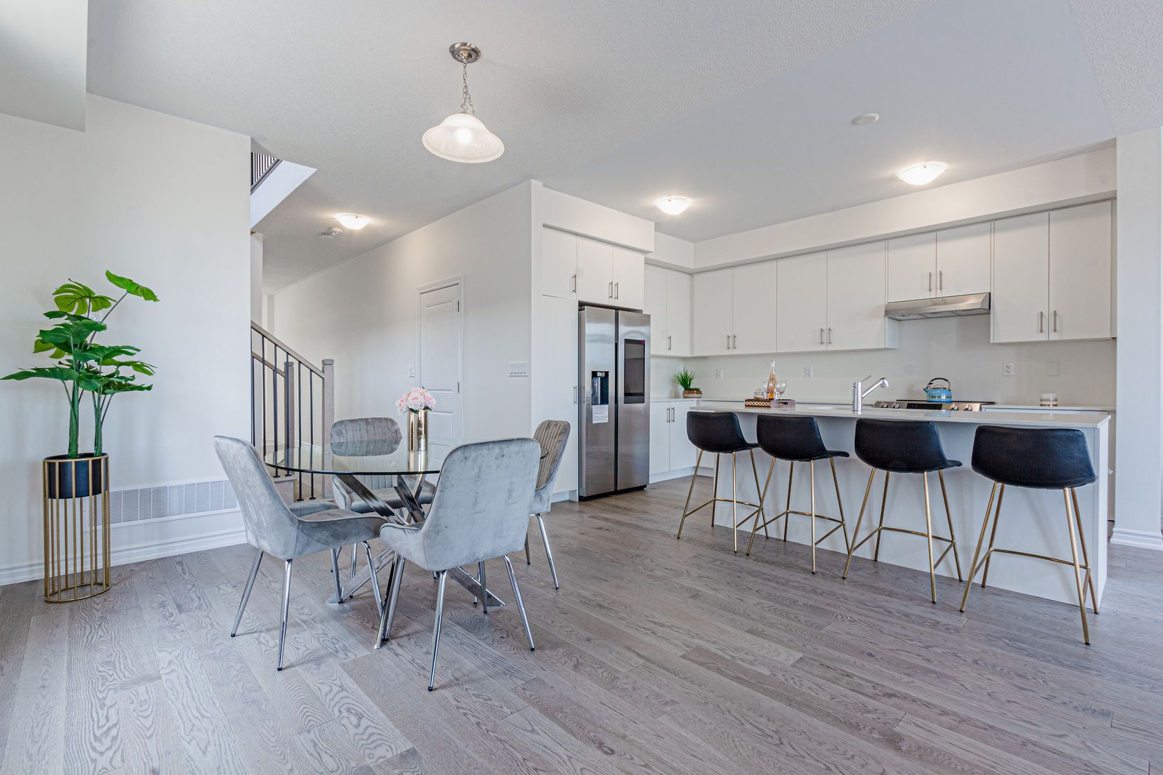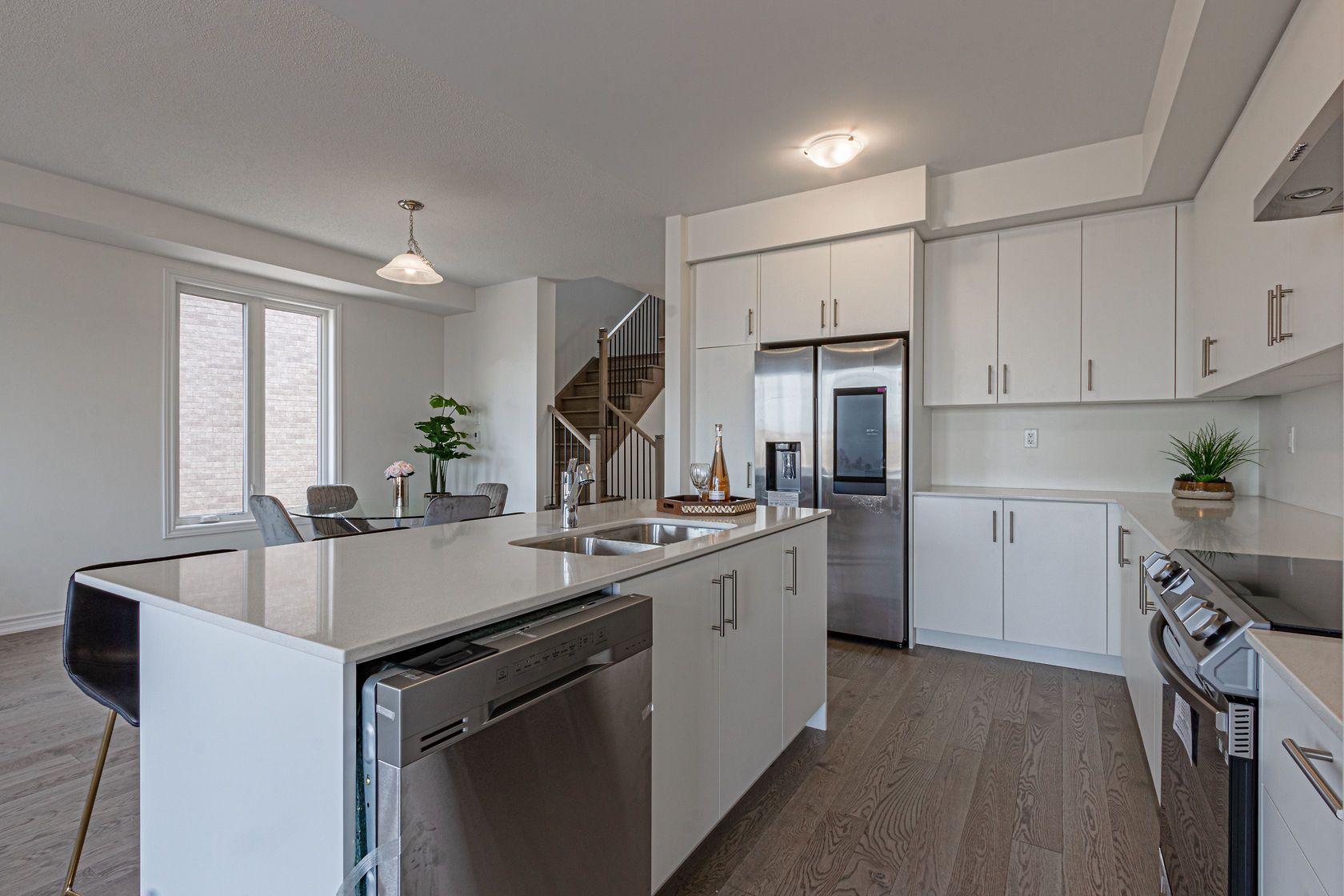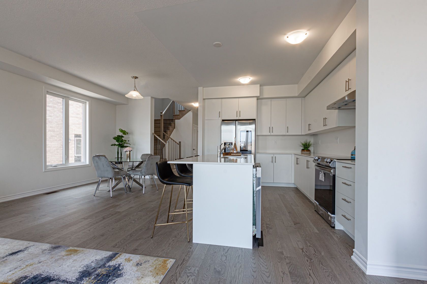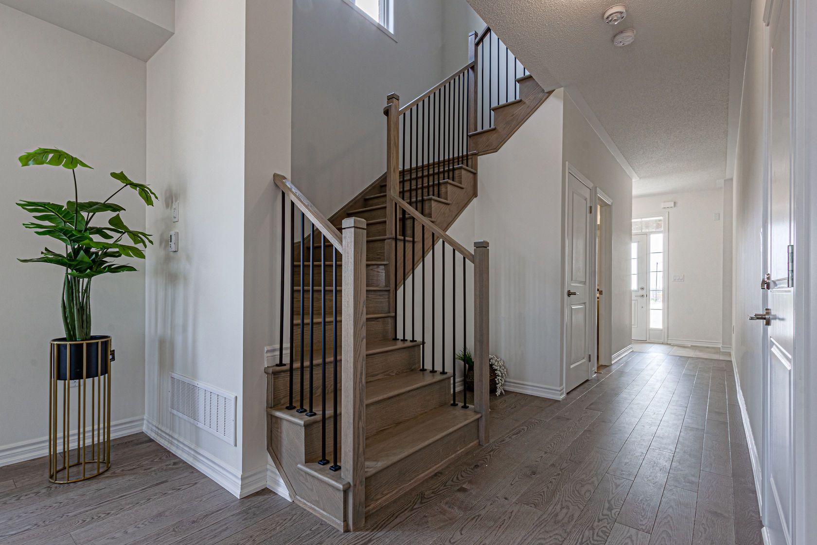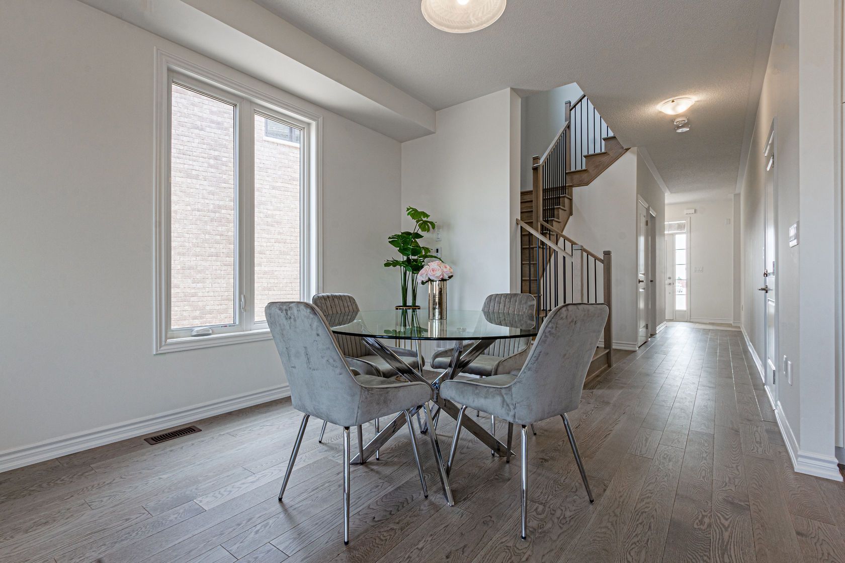 Welcome to 342 thimbleweed crescent, a spacious great gulf-built home offering over 2,000 sq. Ft. Above grade. Featuring 4 bedrooms and 4 bathrooms, this home sits on a premium pie-shaped lot and combines modern upgrades with a functional, family-friendly layout. The property also offers a double driveway with no sidewalk and an extended parking area, providing a total of three parking spaces. The main and upper level showcases upgraded hardwood flooring throughout, complemented by elegant matching hardwood stairs that extend to the basement. The open-concept layout is ideal for both everyday living and entertaining, anchored by a modern kitchen equipped with brand-new, high-end appliances, all covered under warranty. Upstairs, you'll find four generously sized bedrooms along with the convenience of second-floor laundry. The primary suite features a beautifully upgraded ensuite, offering a comfortable and private retreat. This home includes several valuable upgrades, including the installation of a central a/c unit, a fully fenced backyard, and high end appliances. A separate side entrance-an upgrade from the builder-leads to the basement, where a bathroom has already been completed. With the existing side entrance, walkout access, and completed bathroom, the basement offers excellent potential to be finished as a full legal rental suite with a relatively small additional investment. Located in a growing and family-friendly community close to parks, schools, shopping, and everyday amenities, this property presents an exceptional opportunity for families and investors alike.
