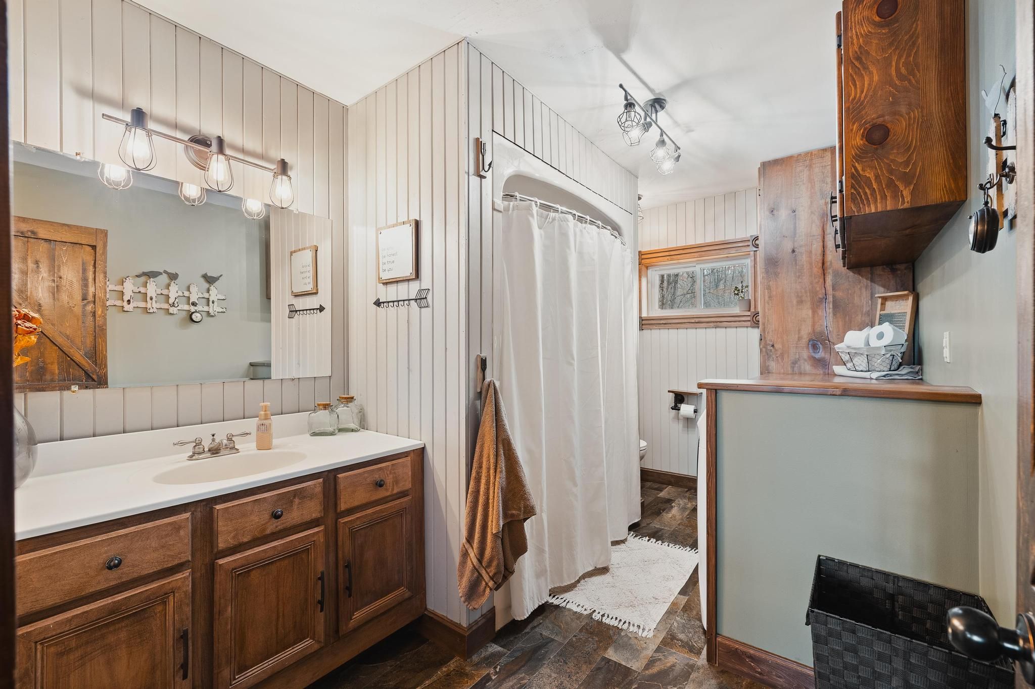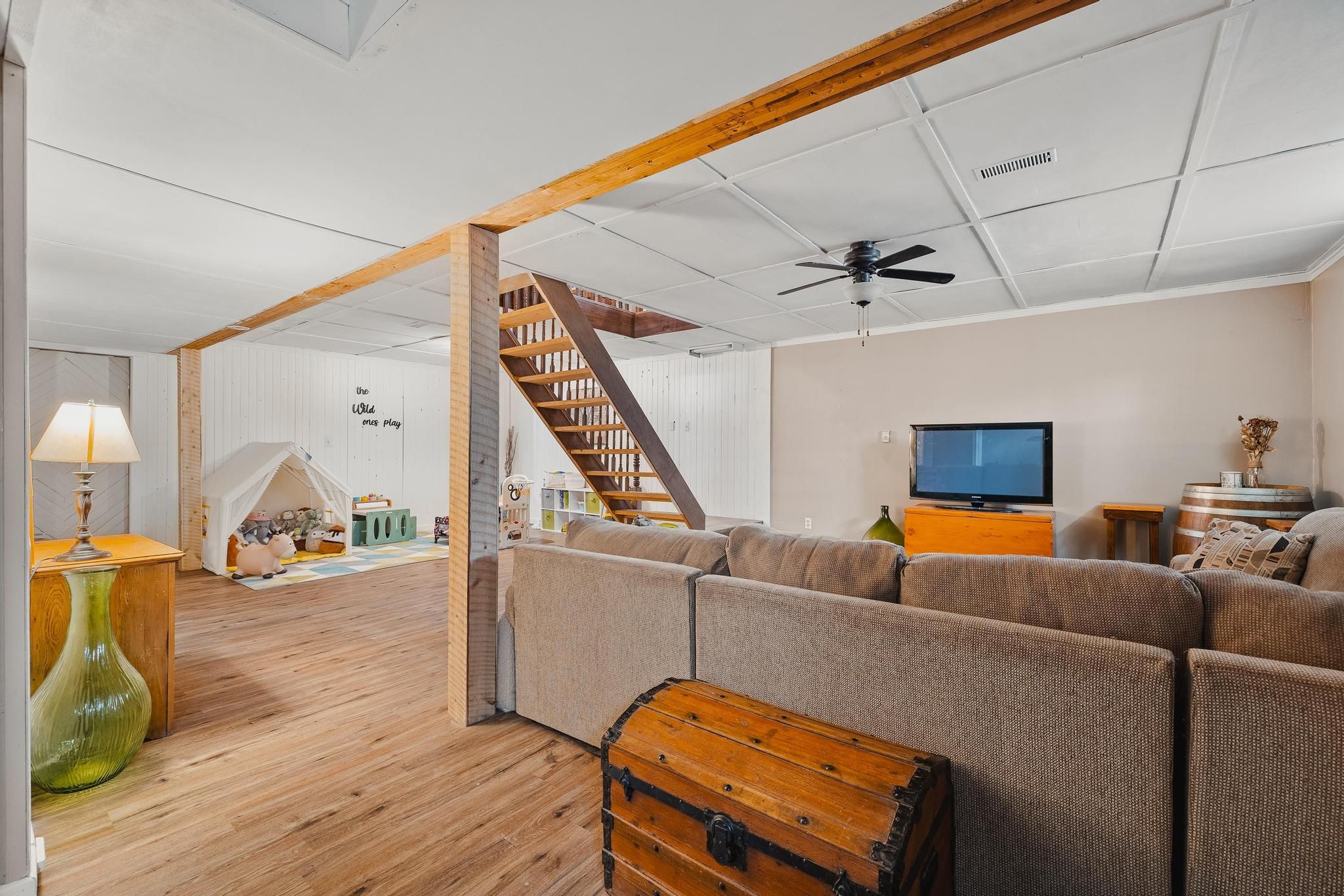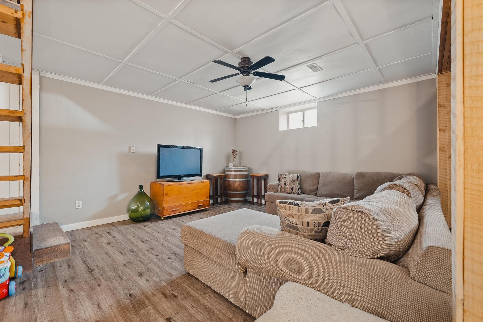 • Finished lower level with a cozy fireplace and flexible spaces.
