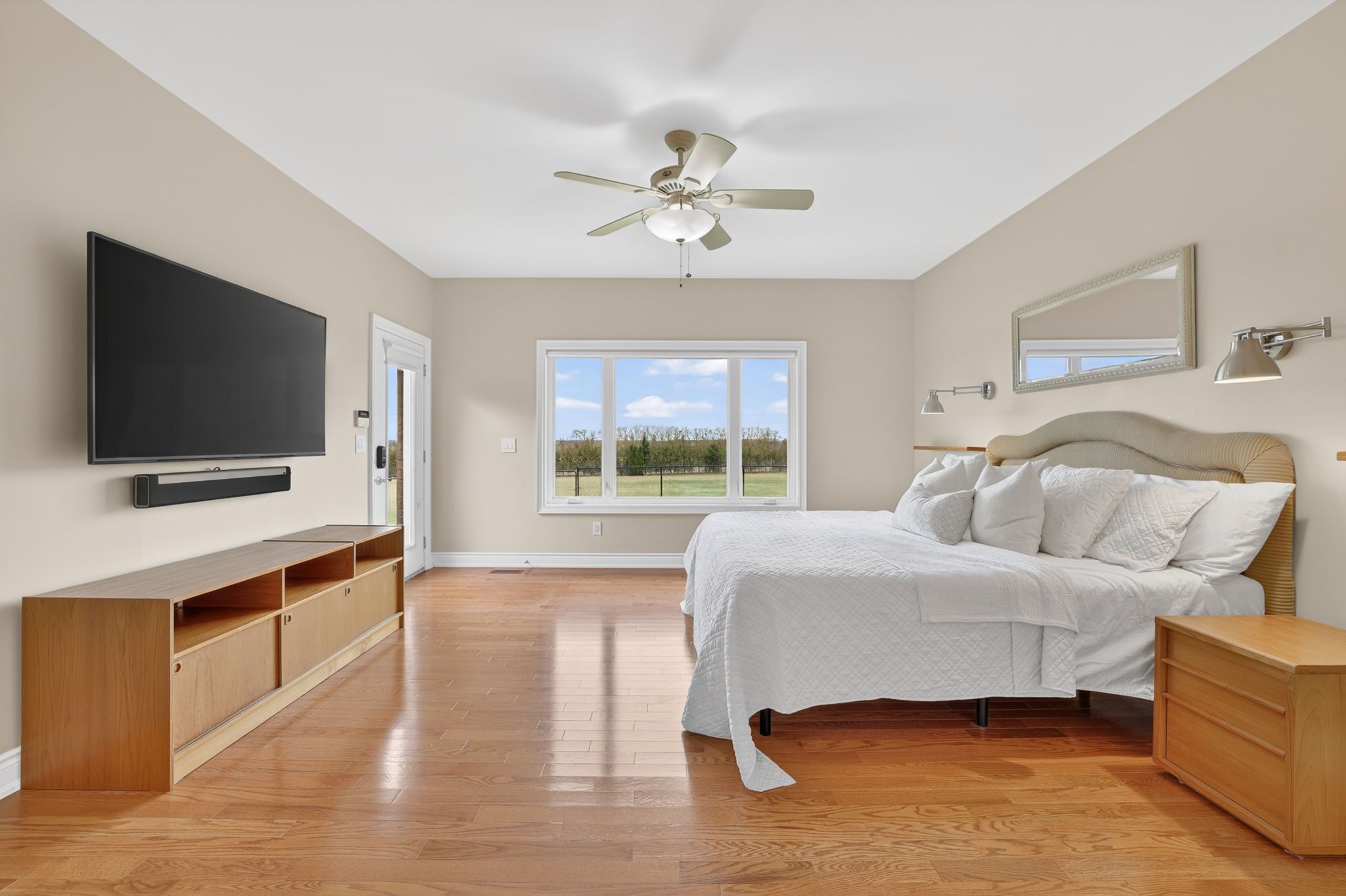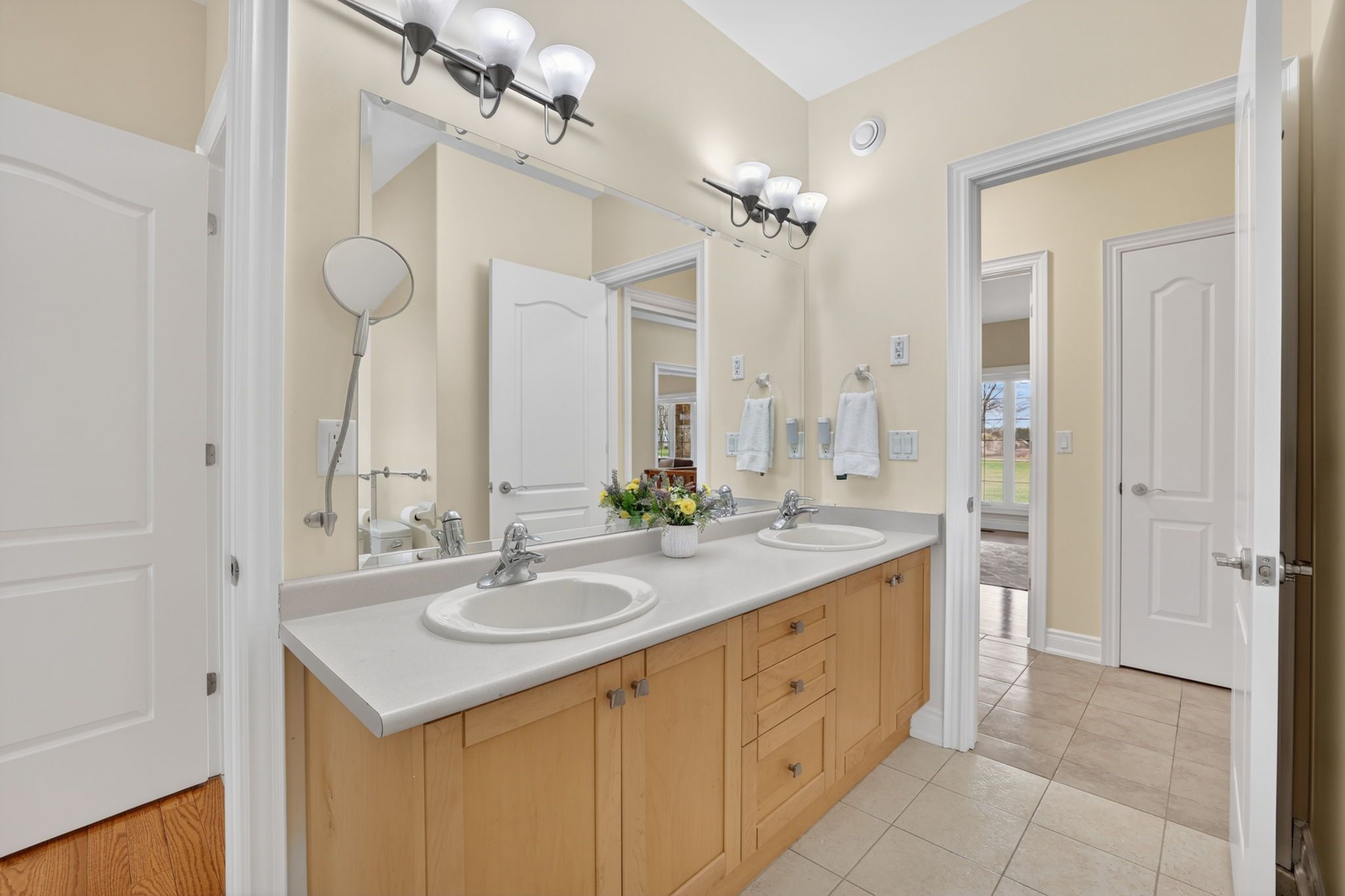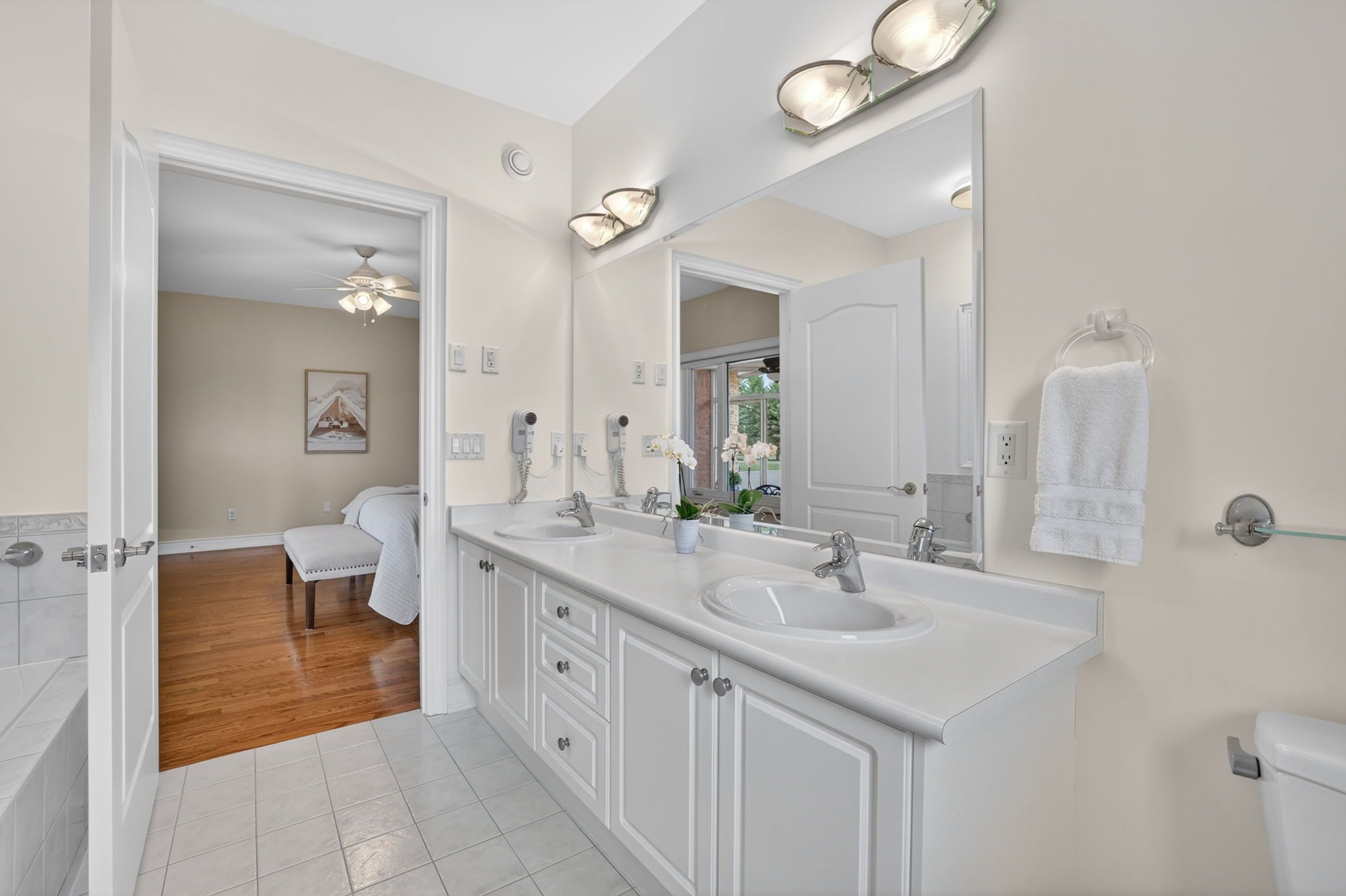 • Main level includes two primary bedrooms with en-suites and open-concept design.