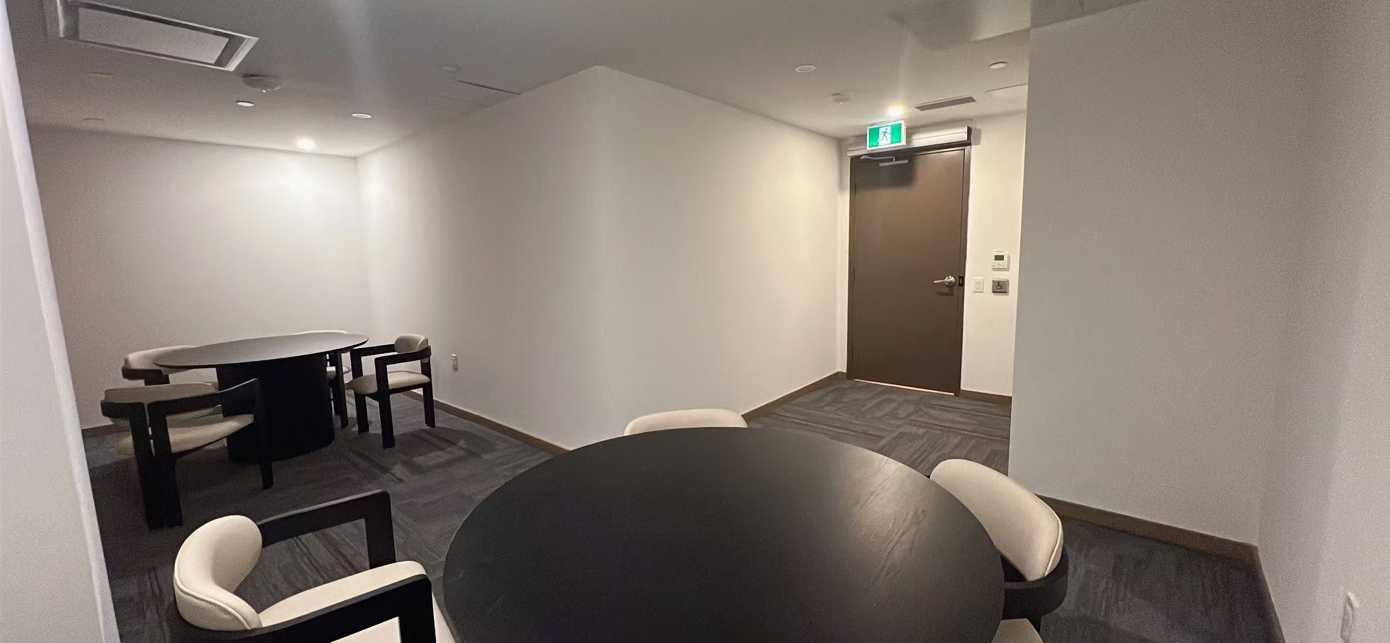 • Floor-to-ceiling windows and hardwood floors enhance elegance.