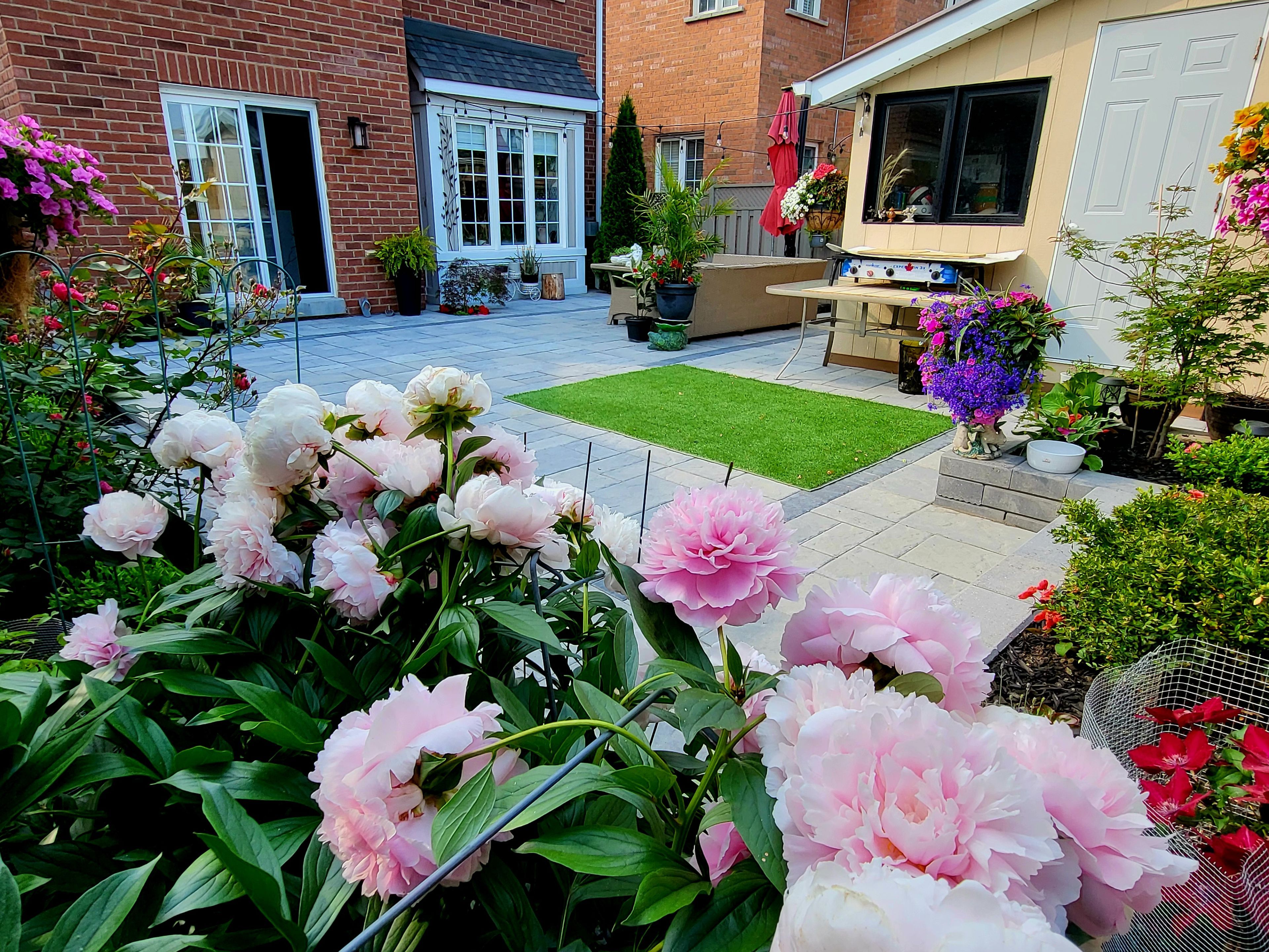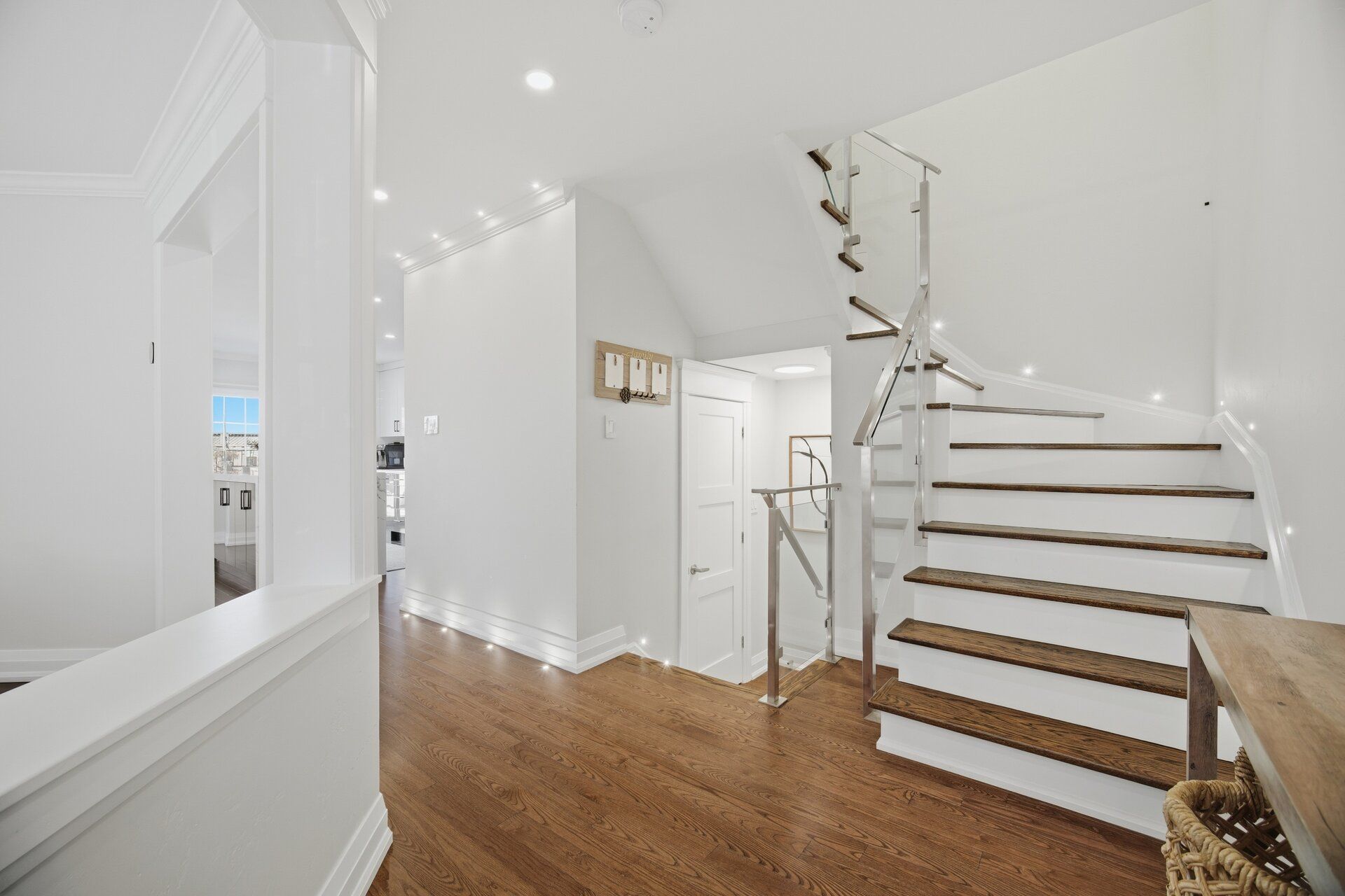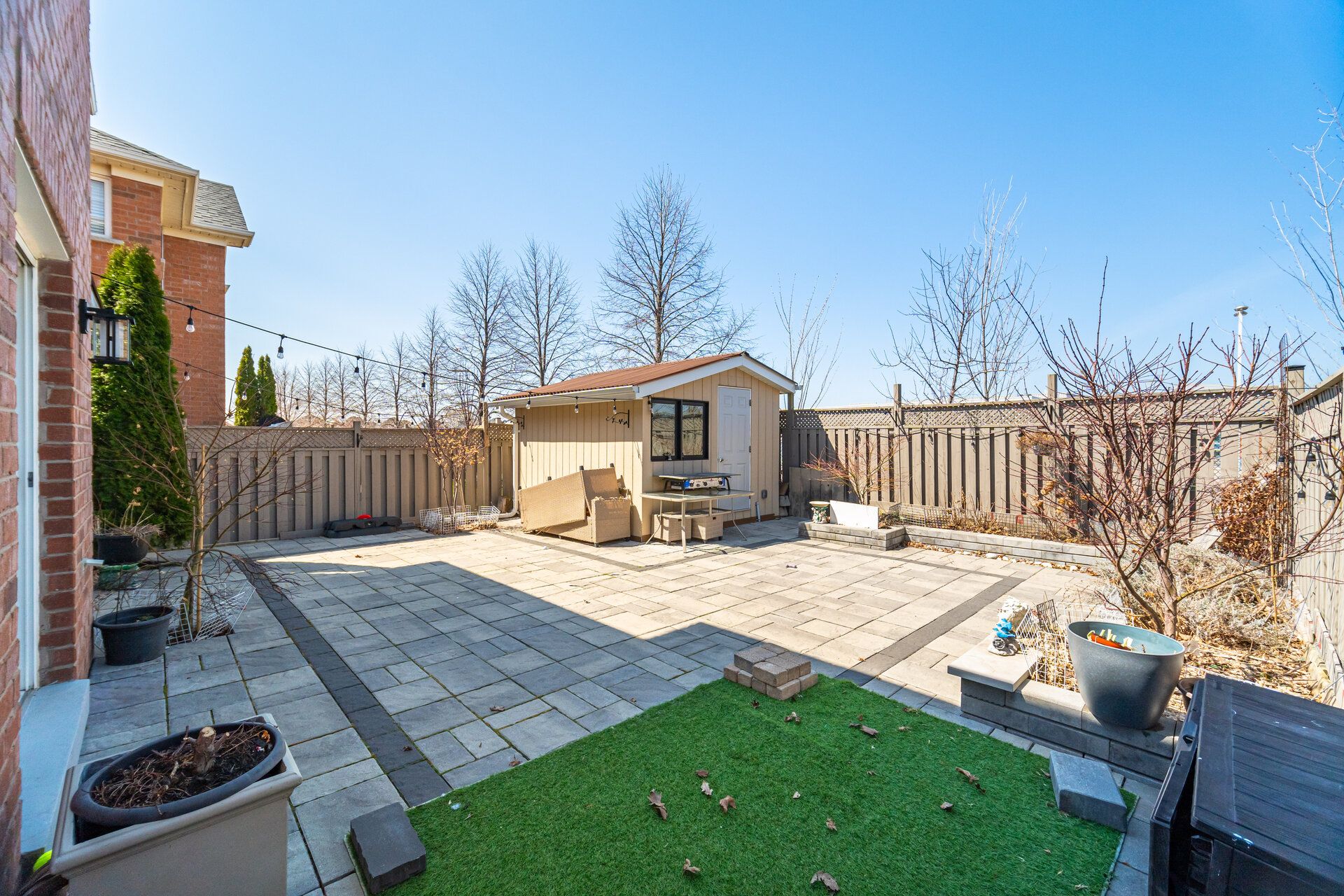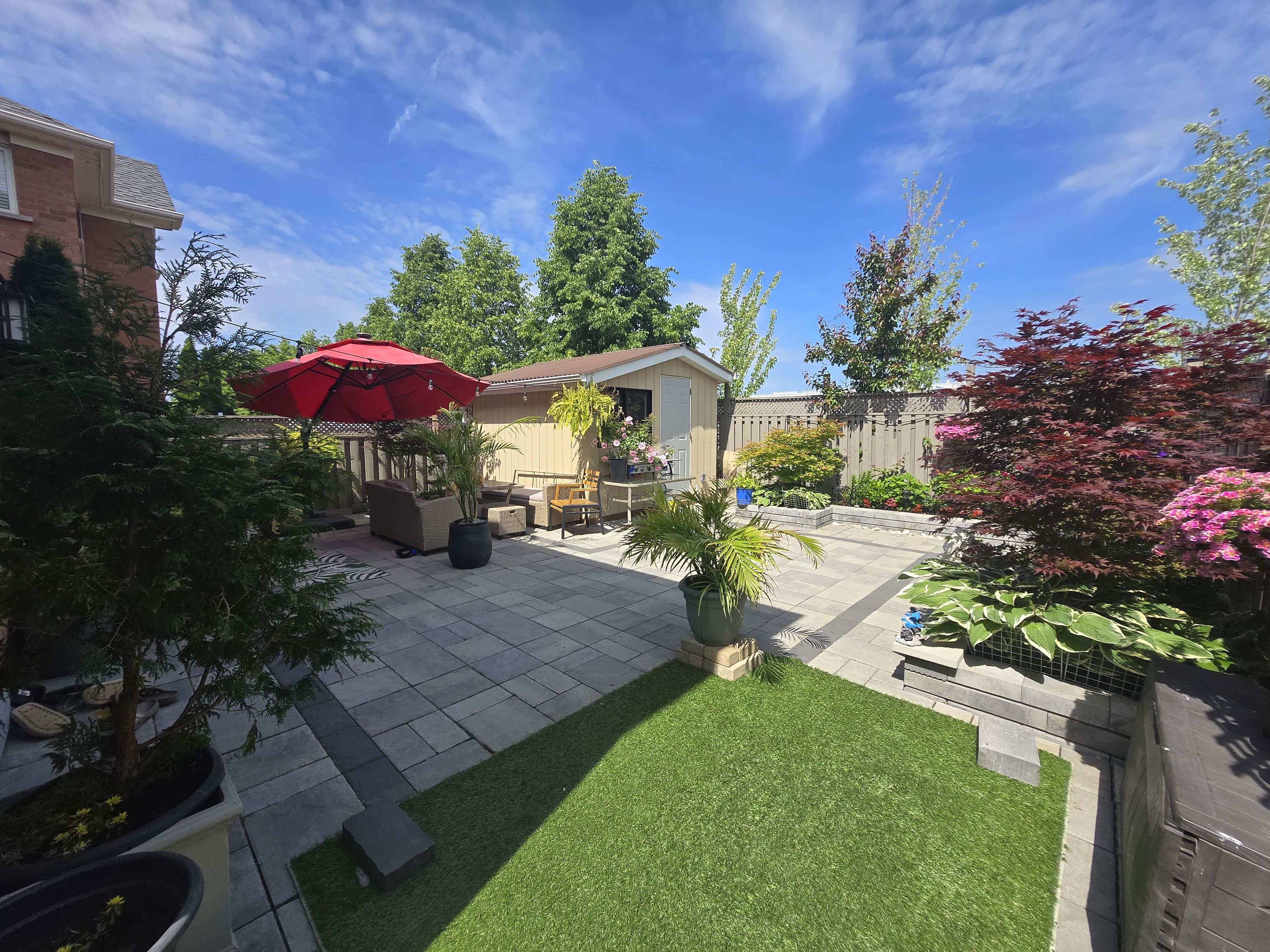 • Stylish kitchen features quartz island and walkout to landscaped backyard.