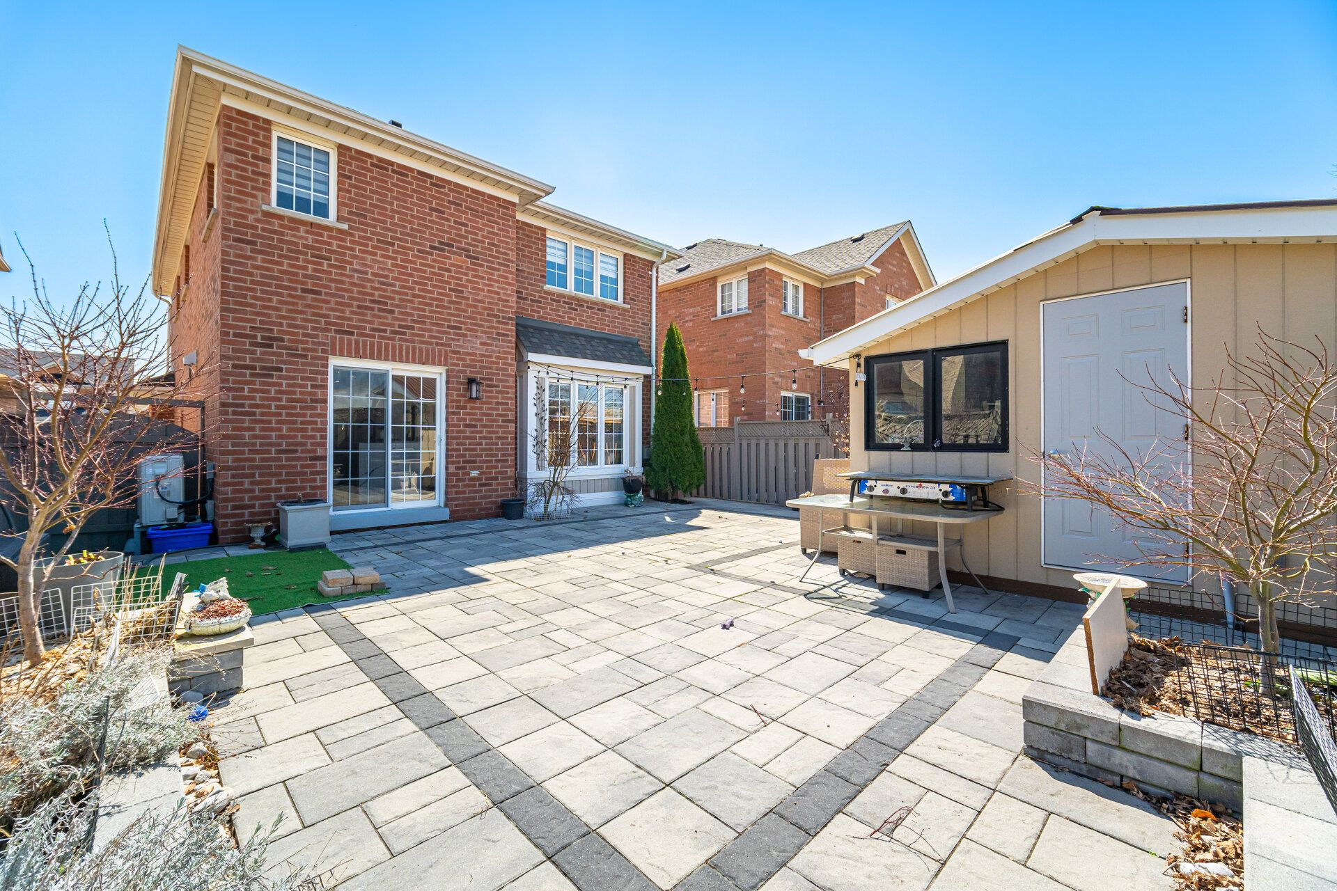 Set on a quiet, family-friendly street in sought-after churchill meadows, this beautifully upgraded home offers a bright, refined atmosphere and the warmth guests feel the moment they walk in. Large windows fill the home with natural light, while hardwood floors, crown moulding, extensive trim work, and a modern staircase accented by soft lighting add a polished feel. The separate dining room is perfect for hosting family dinners and gatherings, while the living room invites you to settle in with its paneled feature wall, corner gas fireplace, and large window with built-in window seat overlooking the backyard. At the heart of the home, the kitchen blends everyday function with standout style, featuring a quartz waterfall island, pantry cabinetry, glass display details, and a walkout to the large interlock patio and beautifully landscaped backyard with perennials, built-in garden beds, and a spacious shed. Upstairs, the sense of comfort and quality continues. The primary suite feels like a private retreat with its paneled feature wall, electric fireplace, walk-in closet with built-in organizers, and a spa-inspired ensuite with soaker tub, floating vanity, curbless glass shower, smart lit mirror, and heated towel rack. The second bedroom makes a strong impression with its palladium window, walk-in closet, and dramatic feature wall with electric fireplace and tv niche, while the third bedroom is equally stylish with hardwood floors and paneled walls. The main bath is beautifully finished with a smart lit mirror, heated towel rack, and a curbless glass-enclosed shower with bench, niche, and rainfall shower head. An upper laundry room with built-in cabinetry, separate basement entrance, and high-efficiency improvements add comfort, flexibility, and value. All set close to top-rated schools, erin mills town centre, churchill meadows community centre, skatepark, meadowvale tennis club, credit valley hospital, major highways, and streetsville and meadowvale go stations.