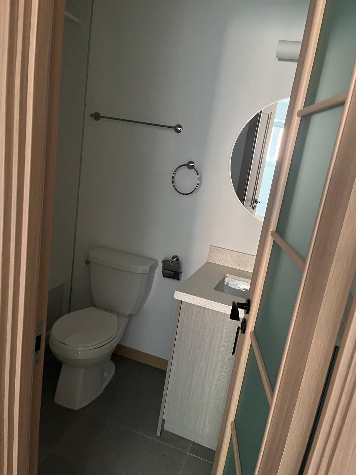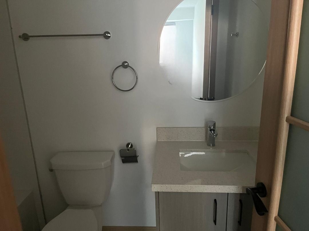 • Large windows and engineered hardwood flooring for a bright feel.