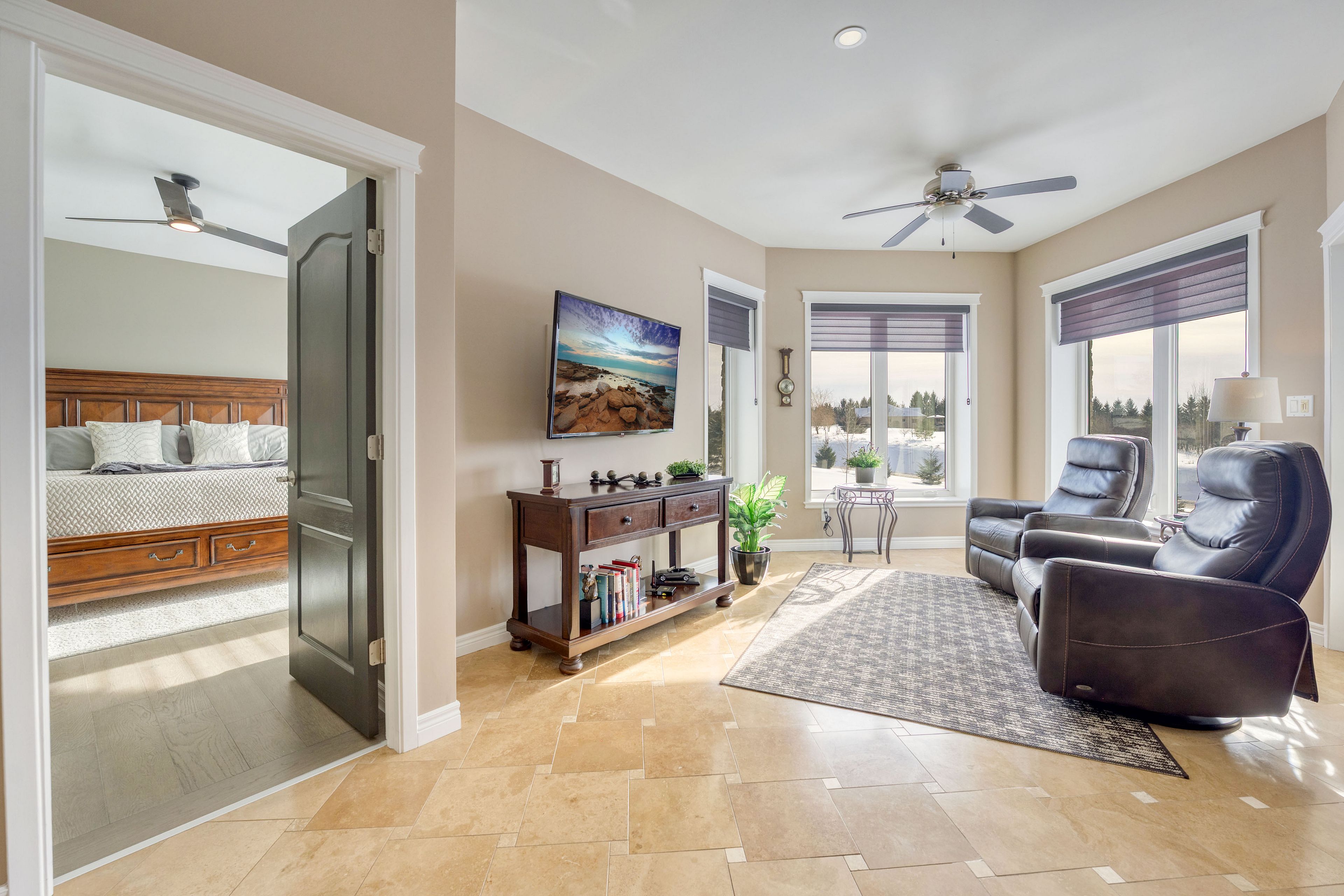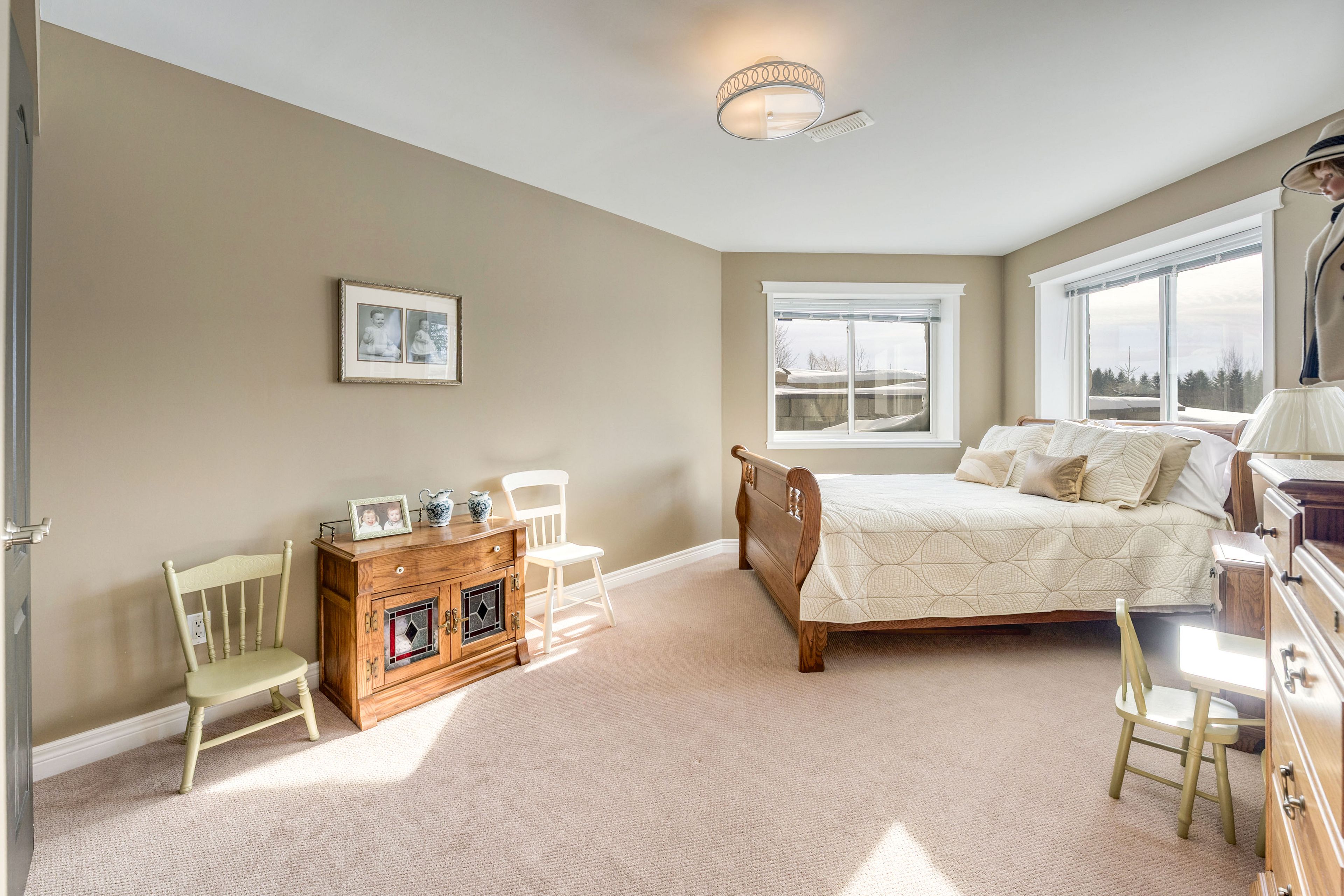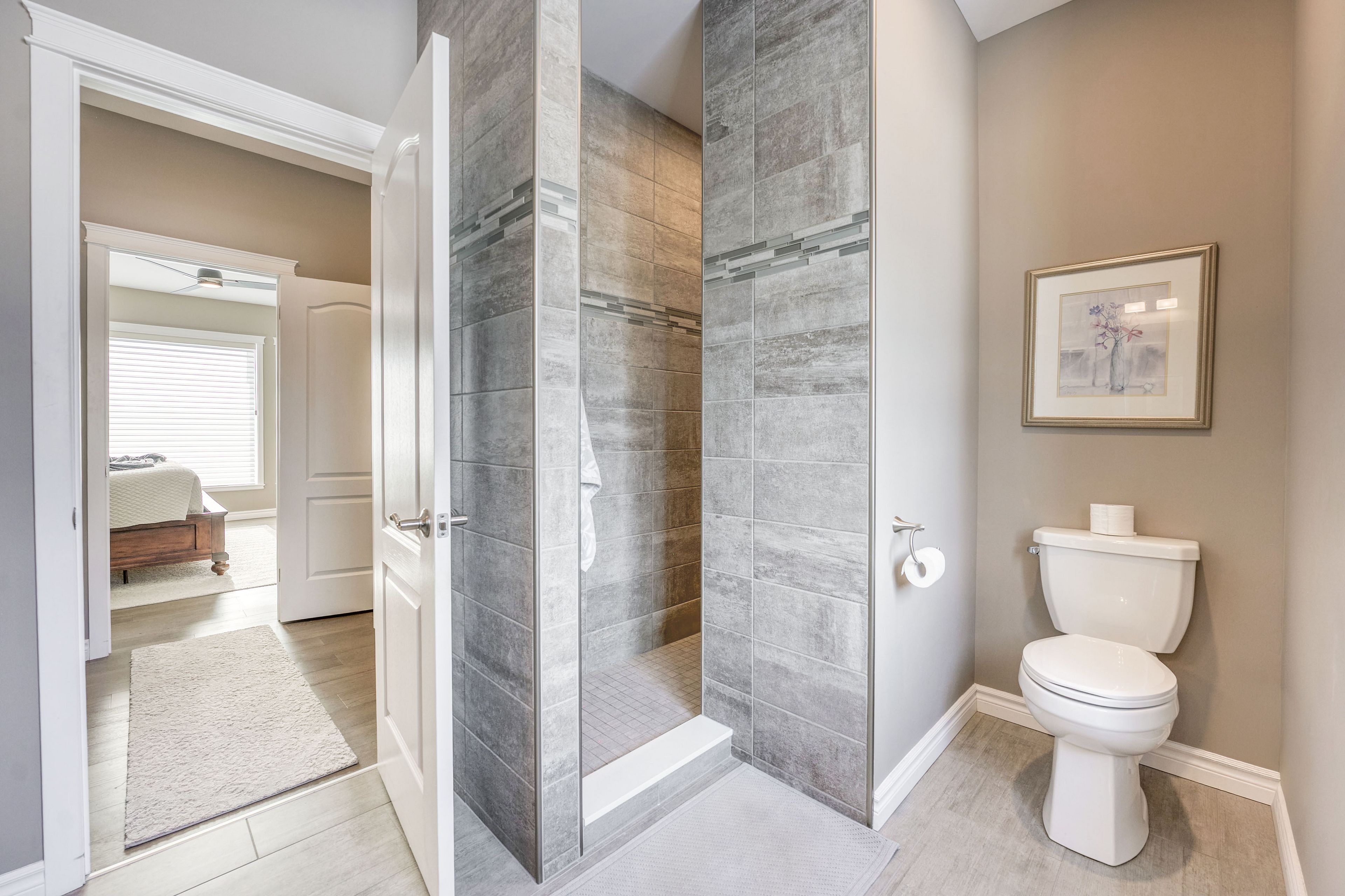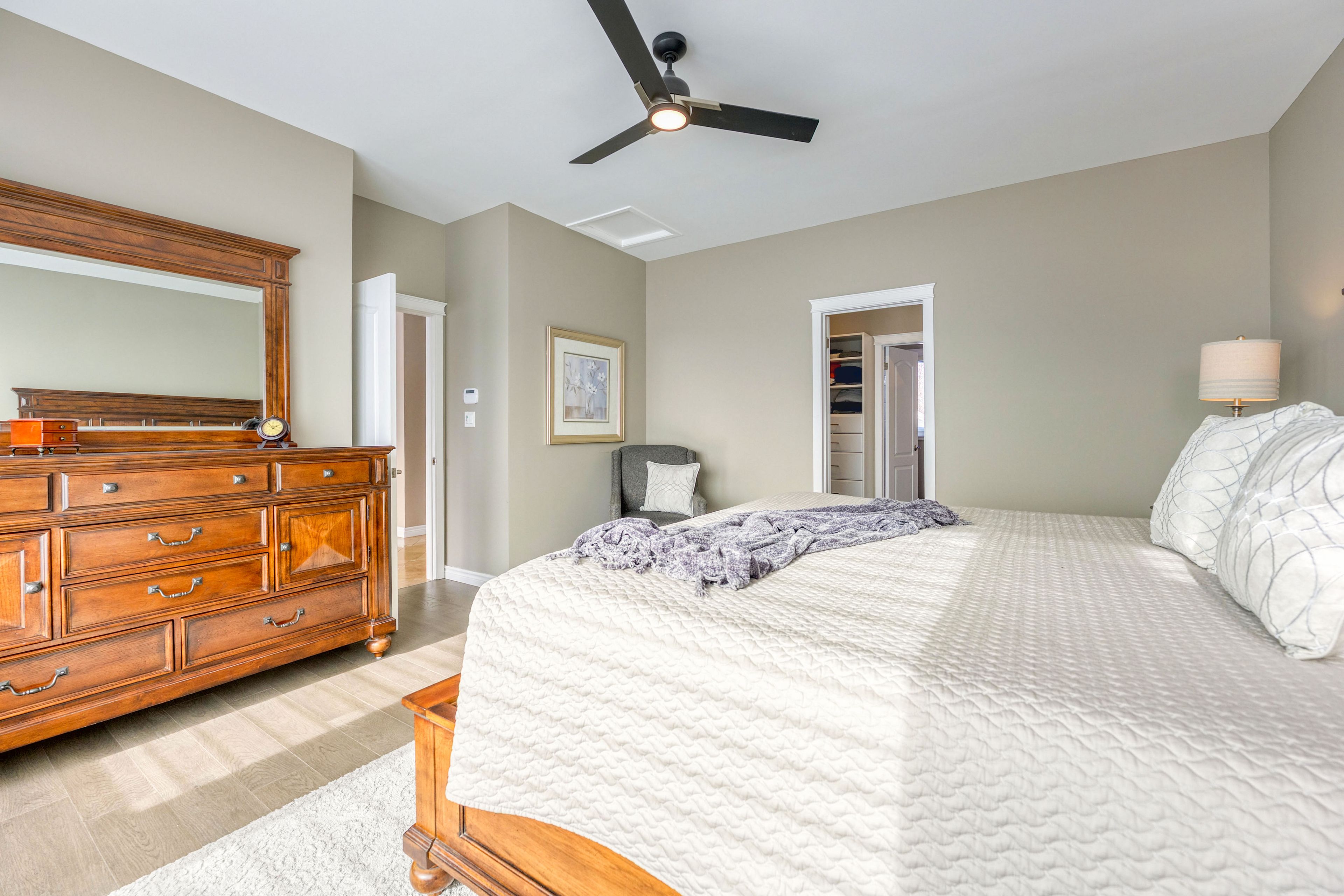 • Updated primary suite with a modern ensuite and walk-in closet.