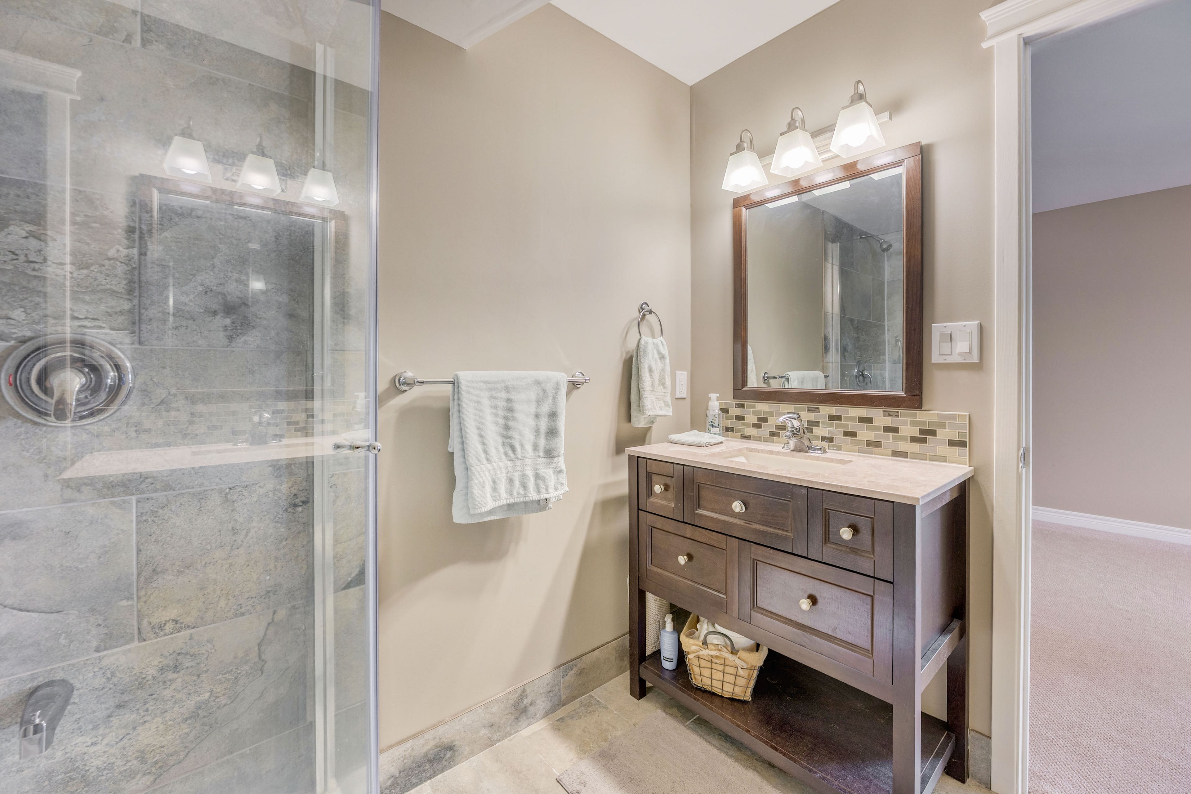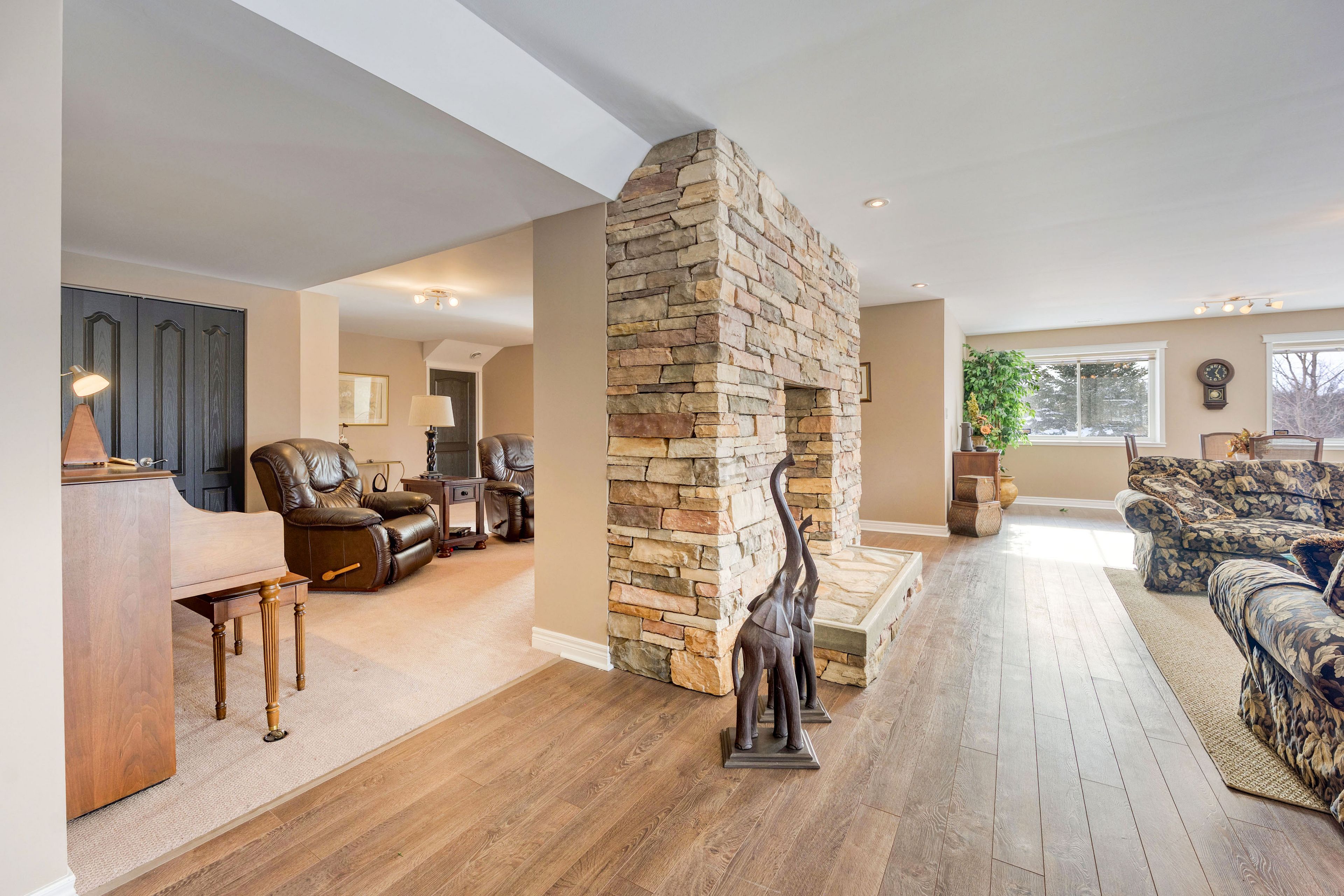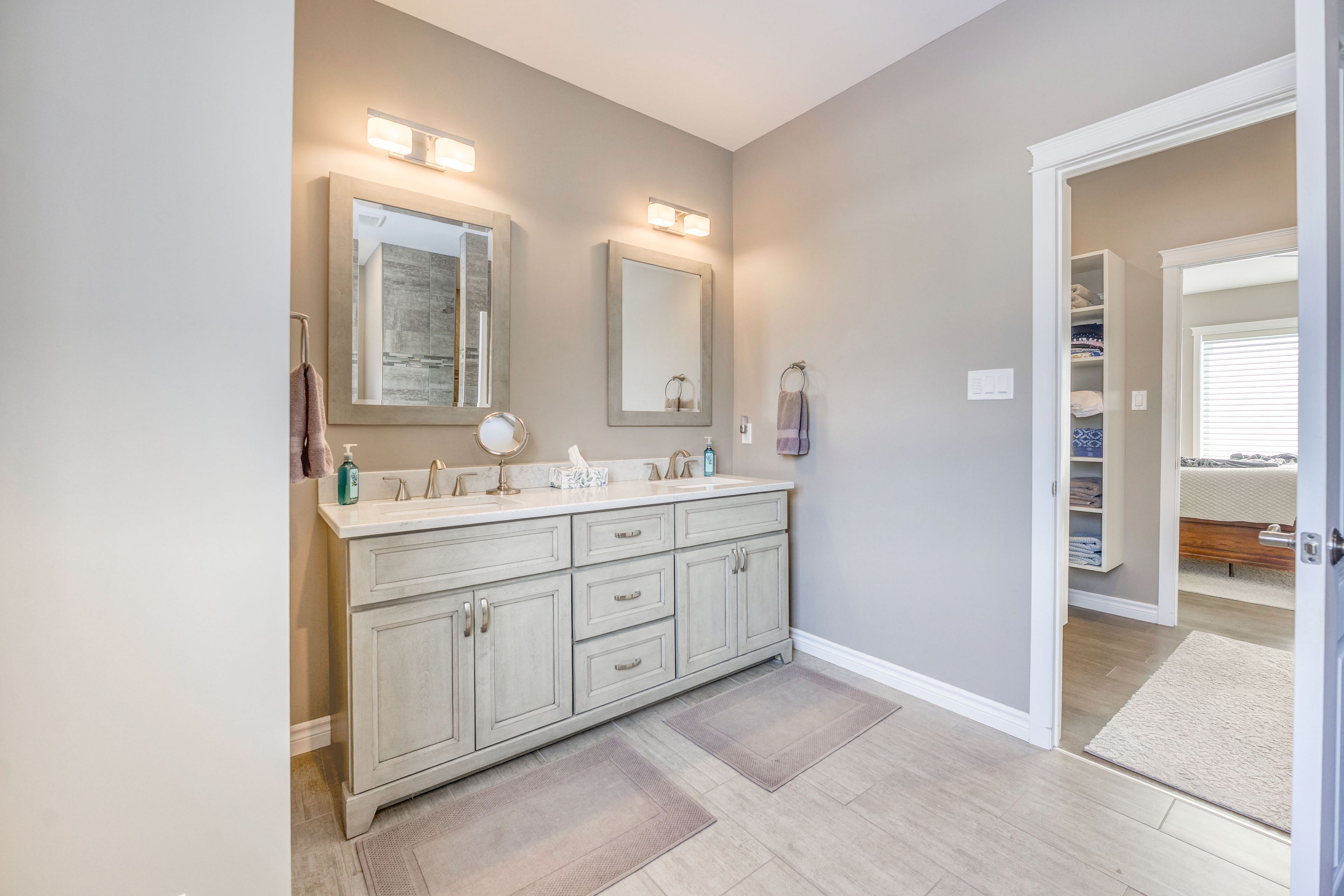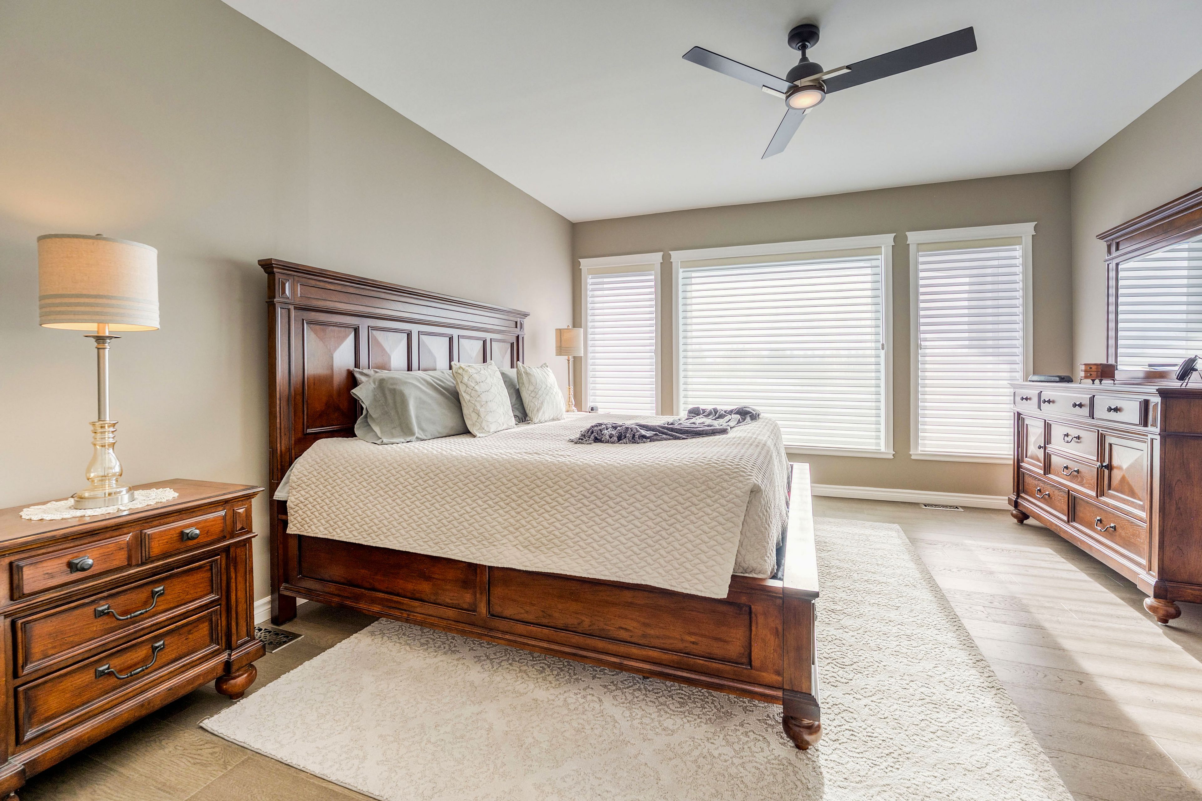 • Updated primary suite with a modern ensuite and walk-in closet.
