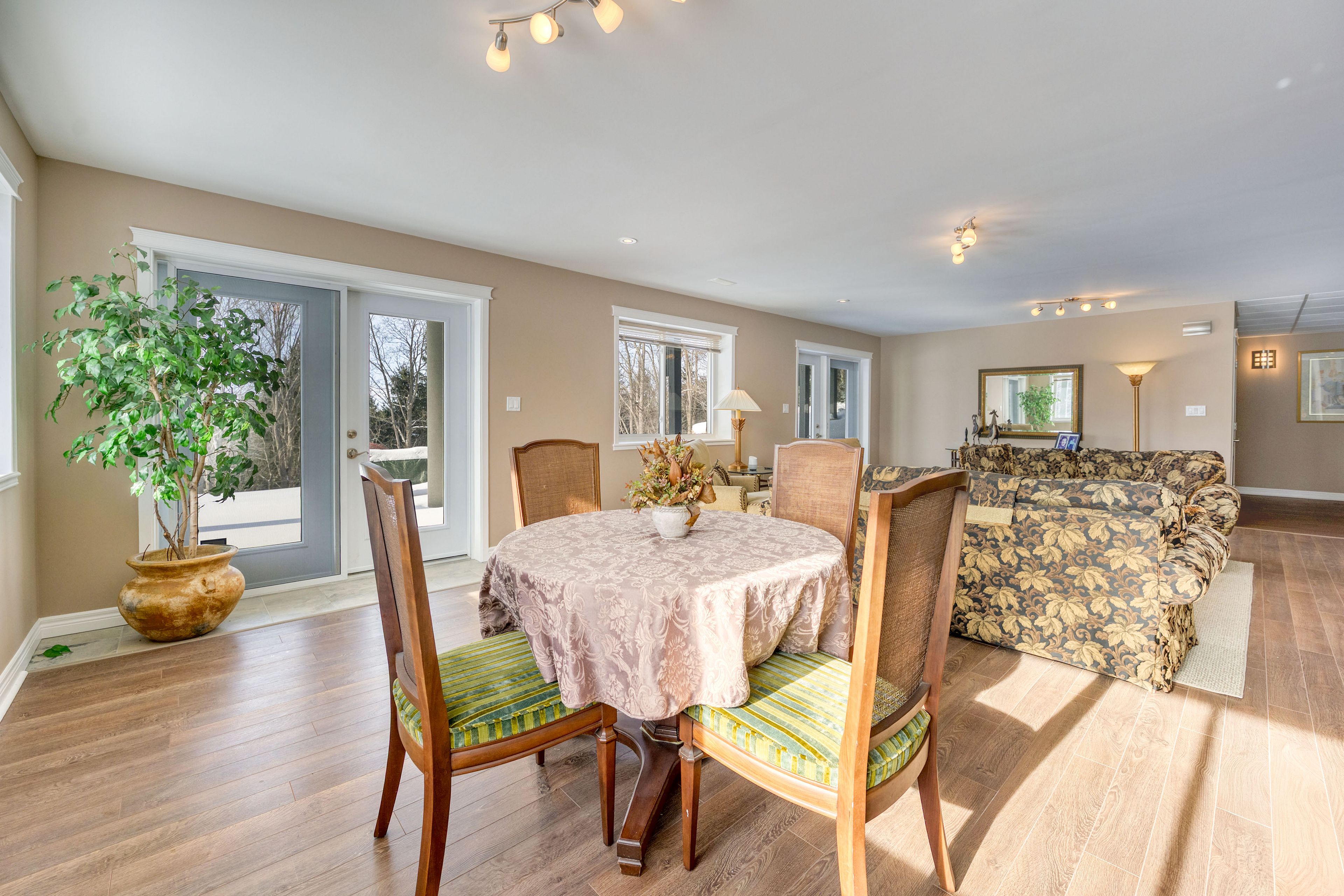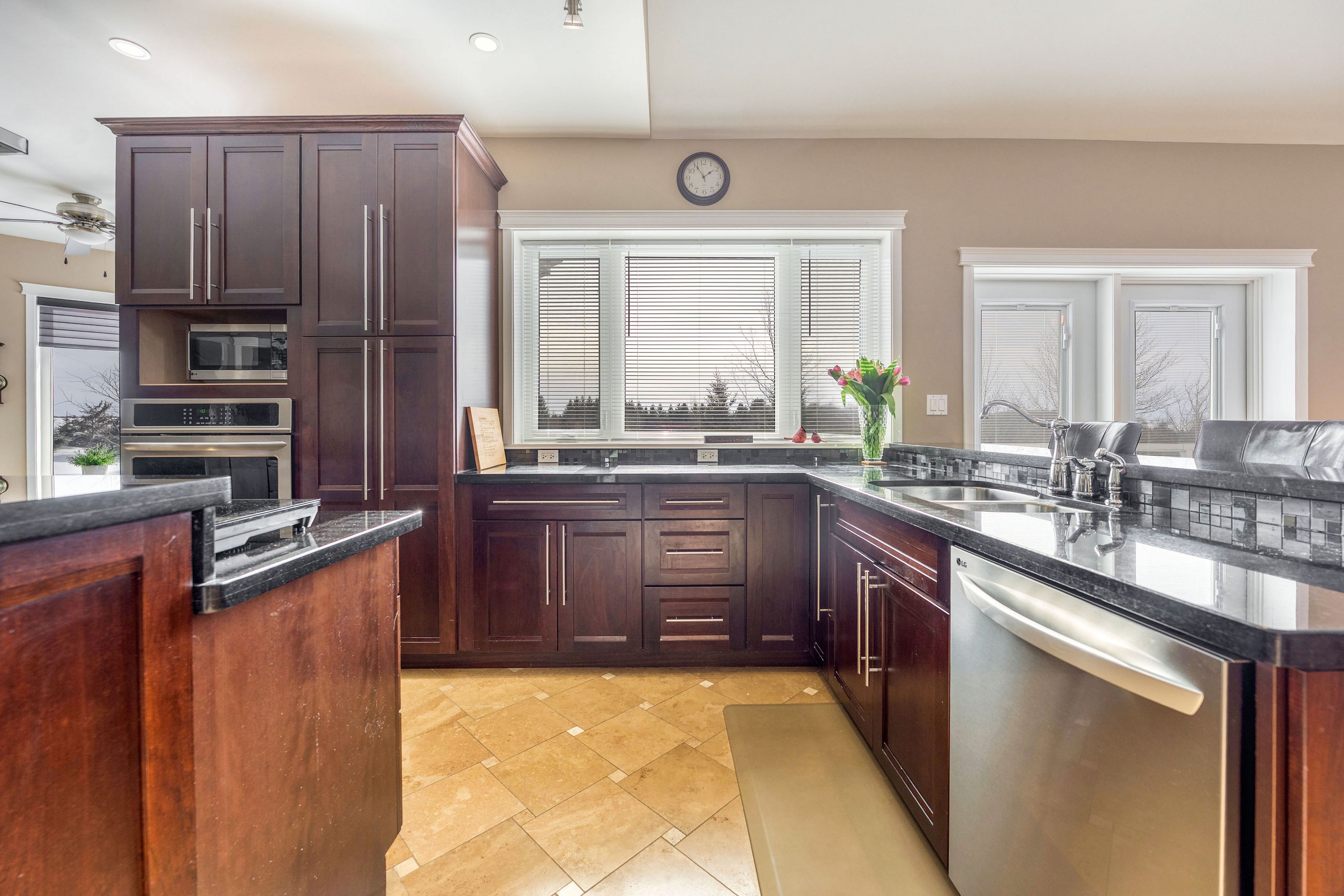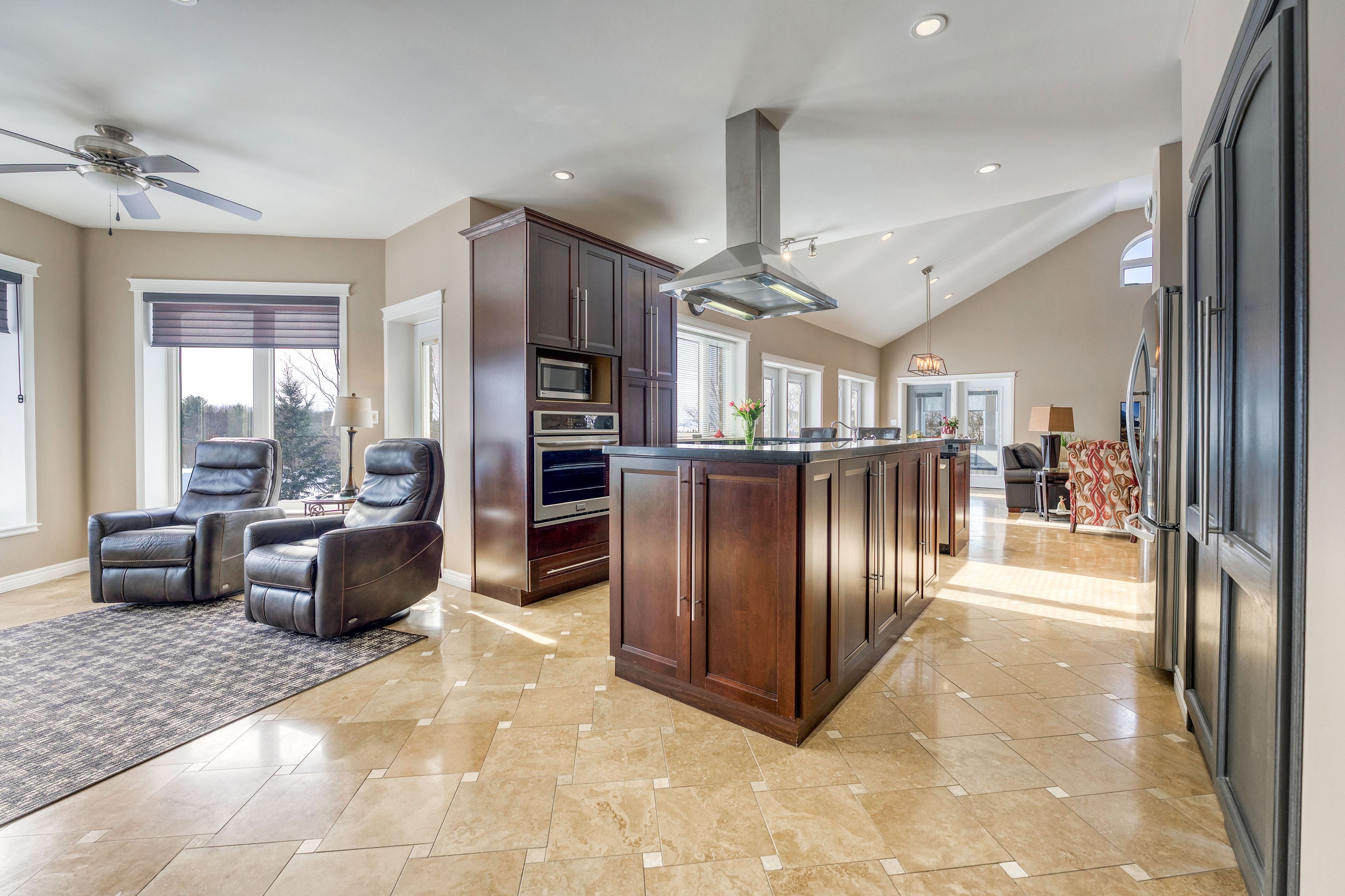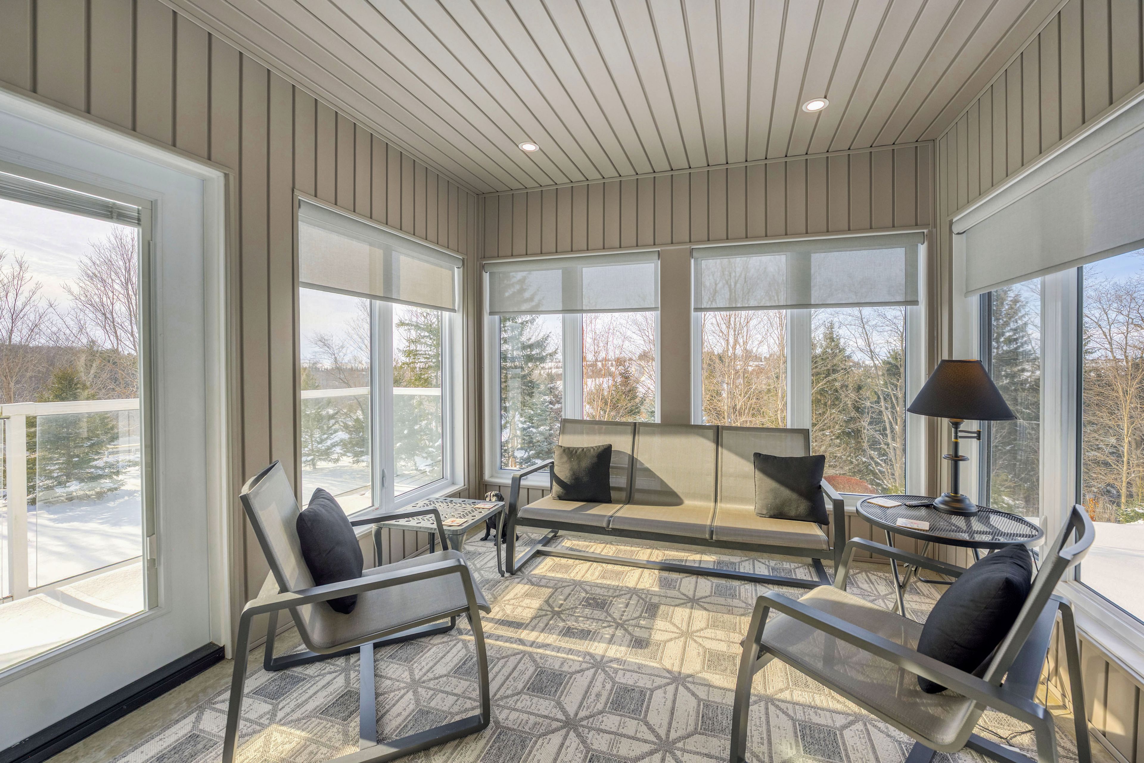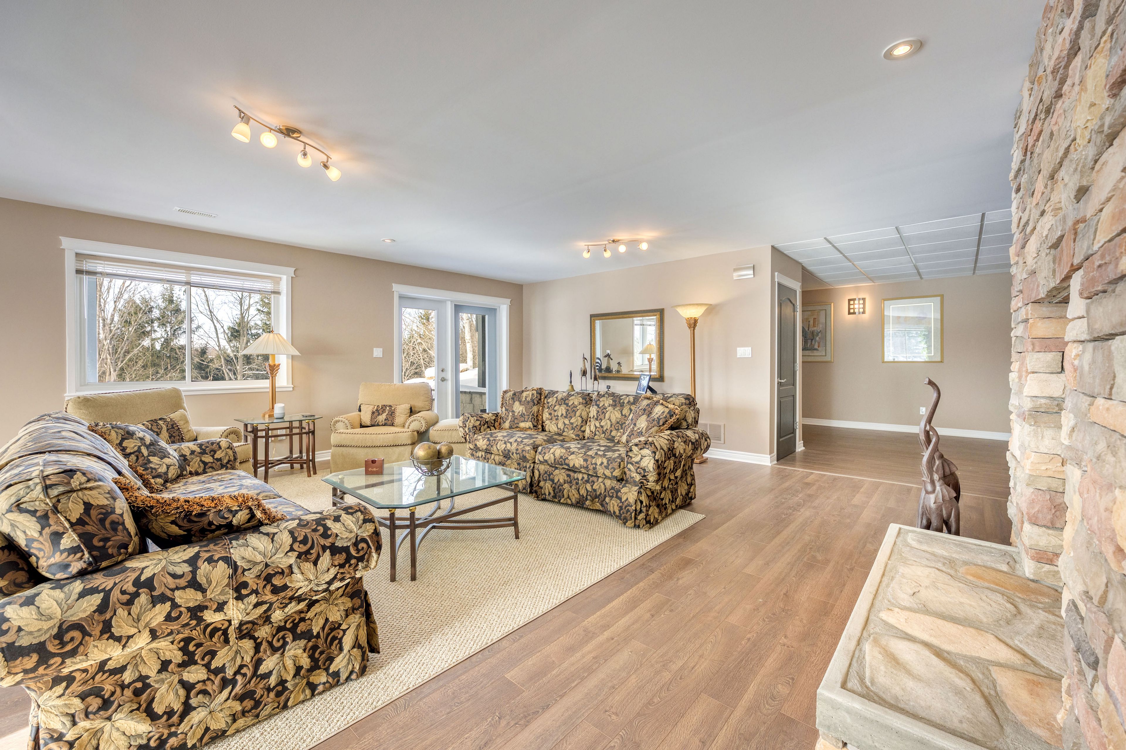 • Spacious outdoor areas including a sunroom and stamped concrete patio.