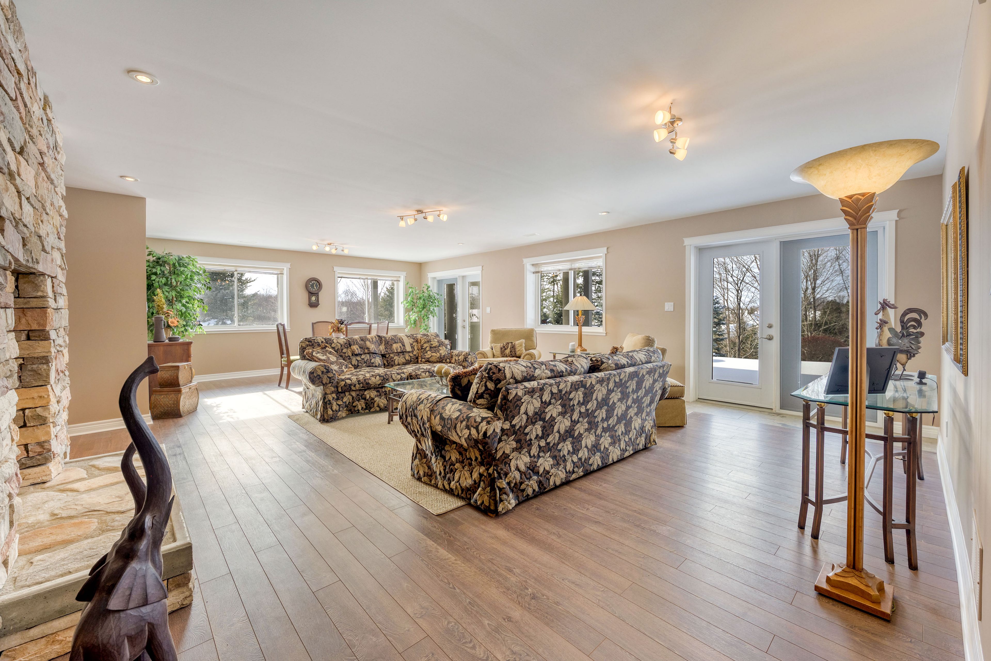 Welcome to 34241 coursey line! A custom-built stone bungalow (2008) constructed with icf for exceptional efficiency, comfort, and durability. This 2+2 bedroom, 3. 5 bathroom home offers a functional layout with quality finishes throughout. The primary suite was updated in 2019 with a renovated ensuite and walk-in closet. Enjoy geothermal heating & cooling (serviced annually), hrv, water softener, uv water treatment, sewage pump, 200 amp service to the home plus 200 amp to the shop. Outside, you'll love the 3 season sunroom, the spacious concrete driveway, beautifully landscaped grounds, tiered gardens, and a stamped concrete patio accessible from the lower level, perfect for entertaining or quiet evenings. Car enthusiasts and hobbyists will appreciate the double attached garage (garage chair lift included) plus a triple detached heated, insulated shop with concrete floor. A rare opportunity to own a turn-key country property with premium extras, 2 minutes north of lucan and 20 minutes into london. Book your showing today!