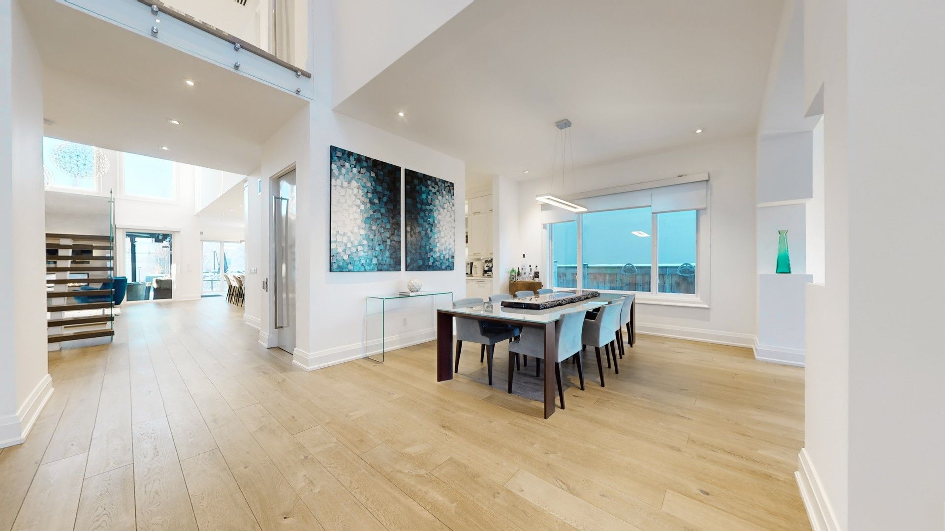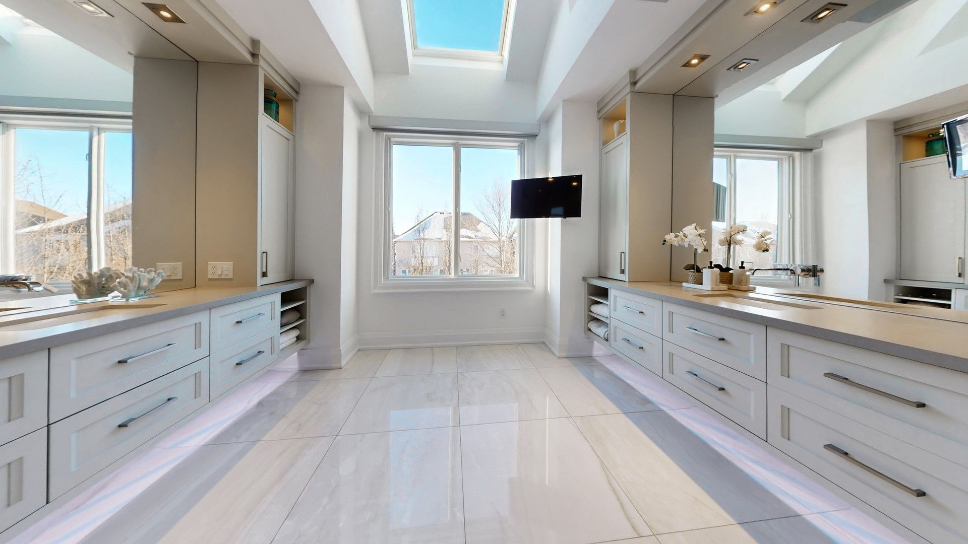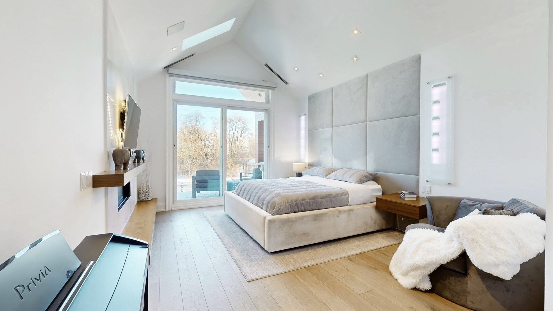 • Natural daylight enhanced by skylights and large sliding doors.
