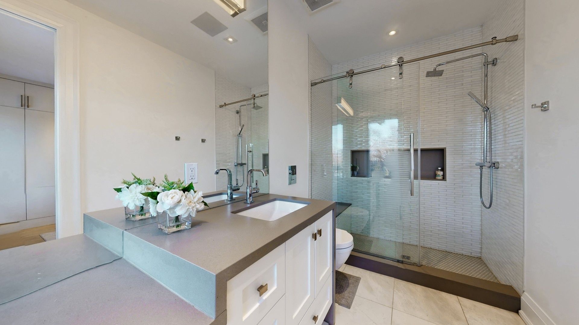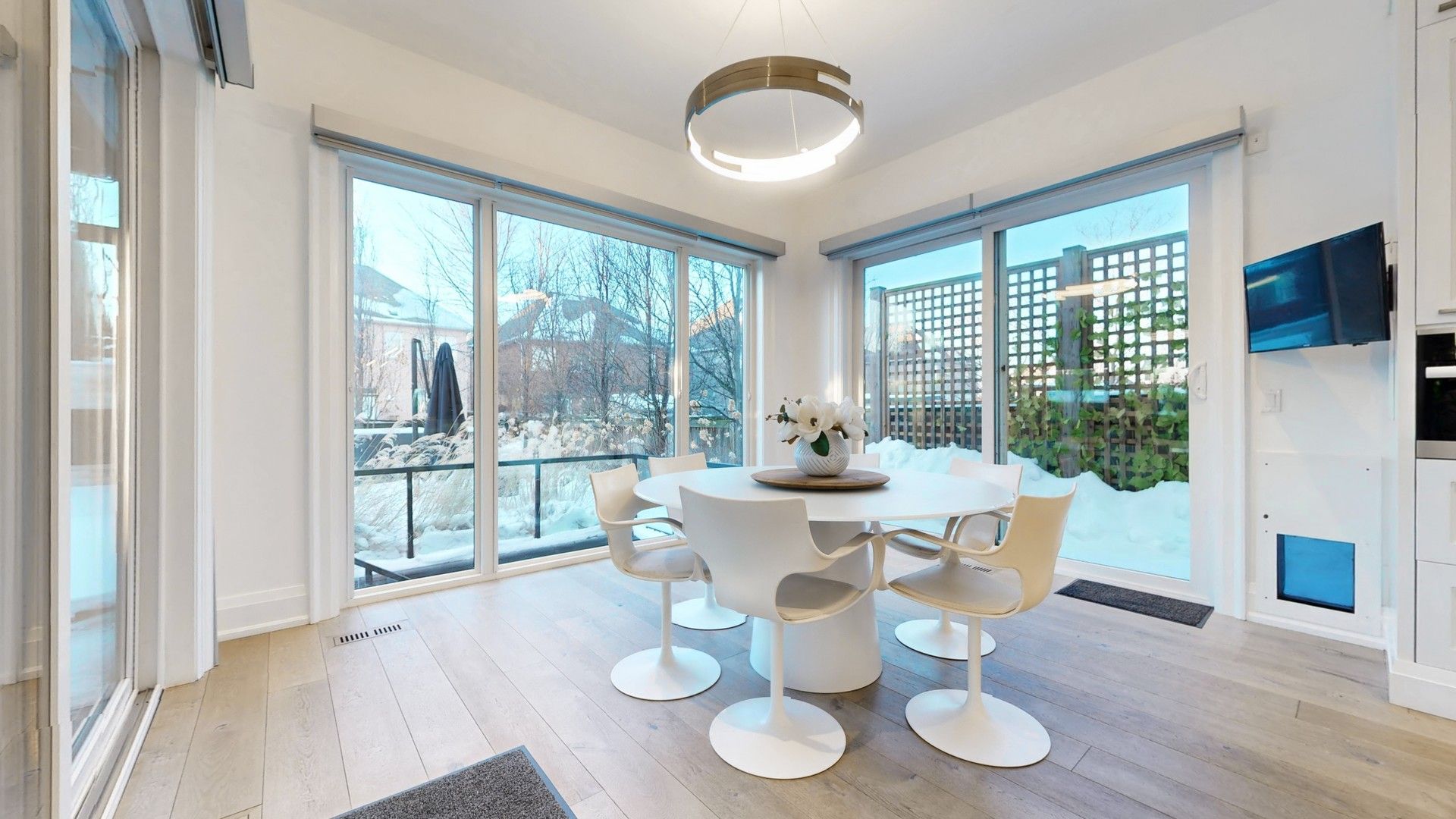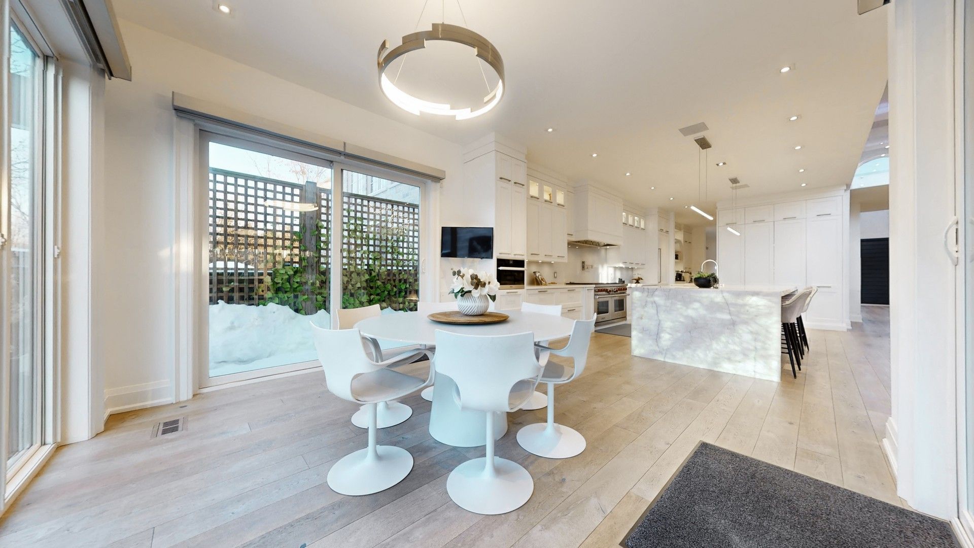 • Natural daylight enhanced by skylights and large sliding doors.