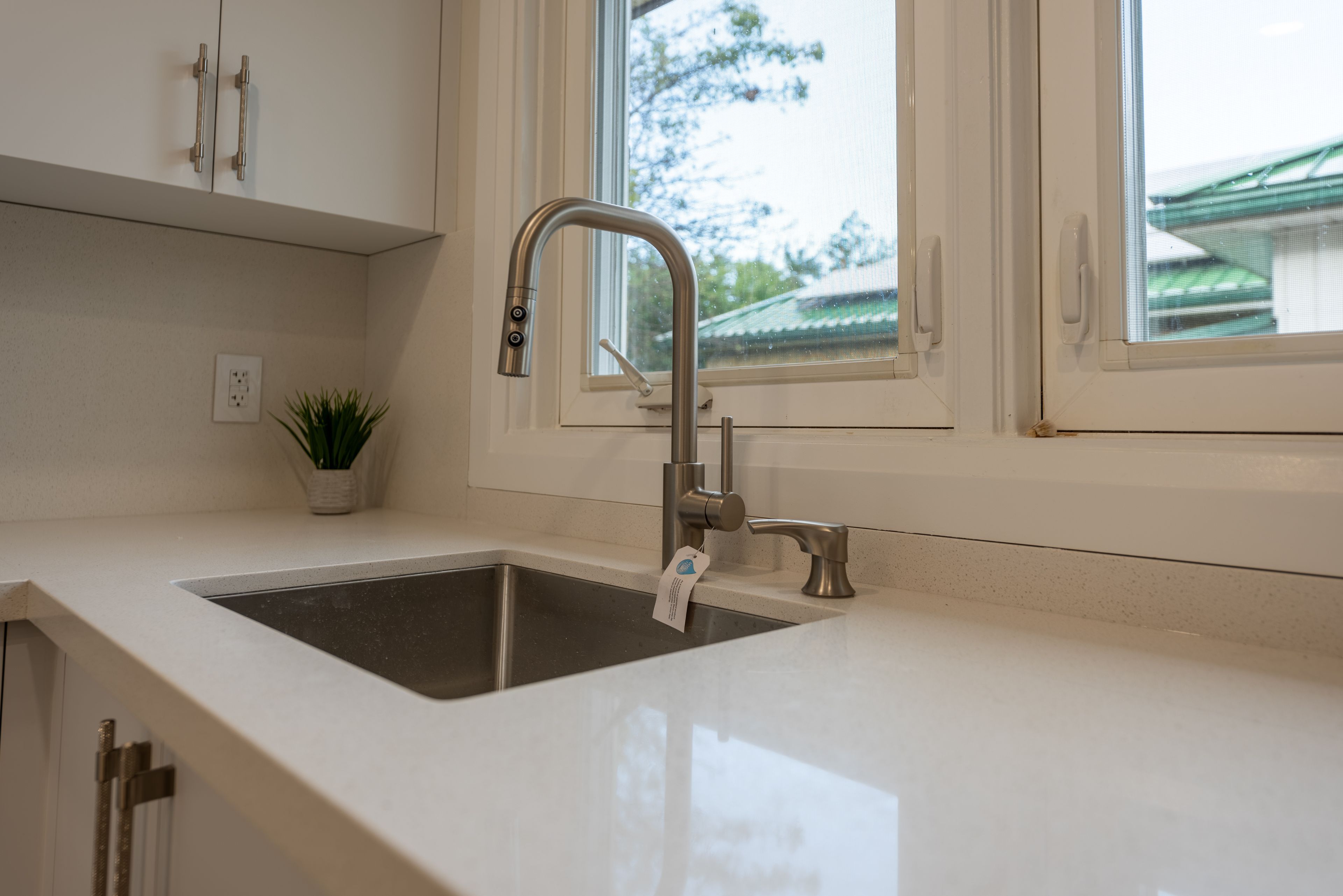 • New kitchen with quartz countertops and modern appliances.