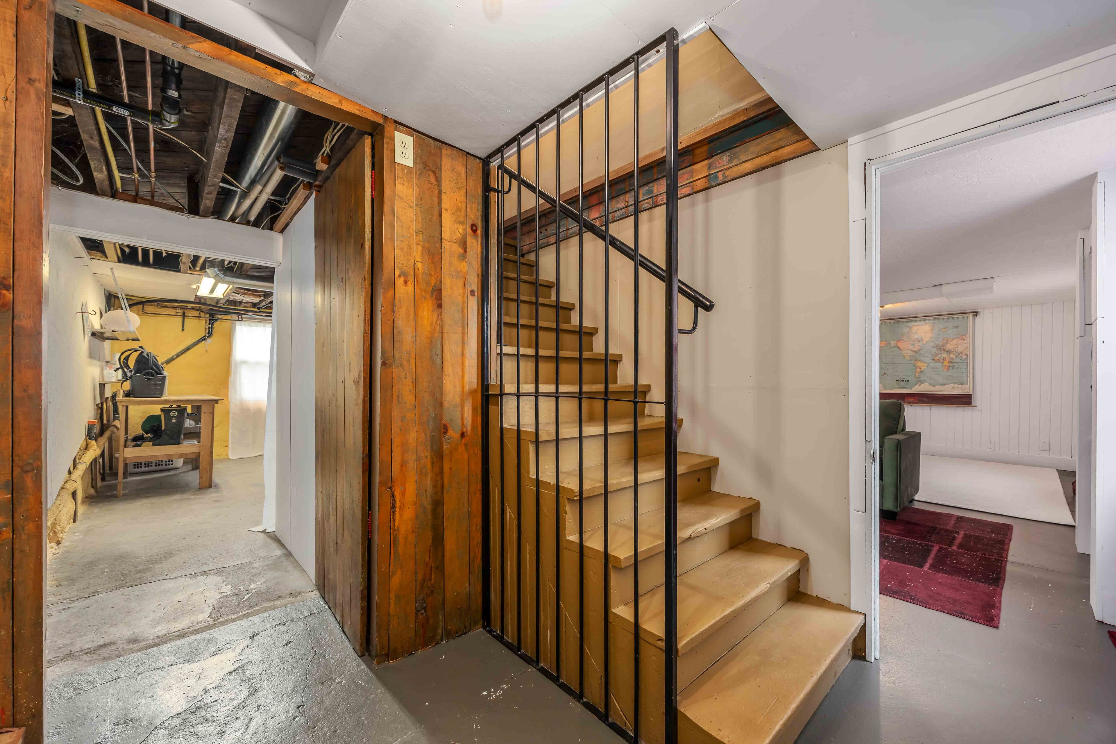 • Lower level with walk-out entrance, family room, and workshop.