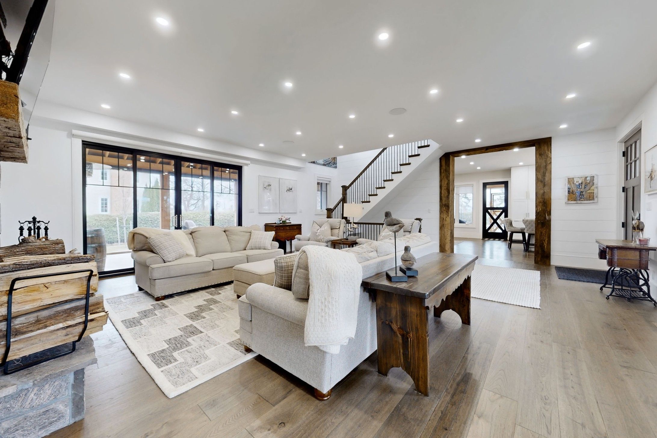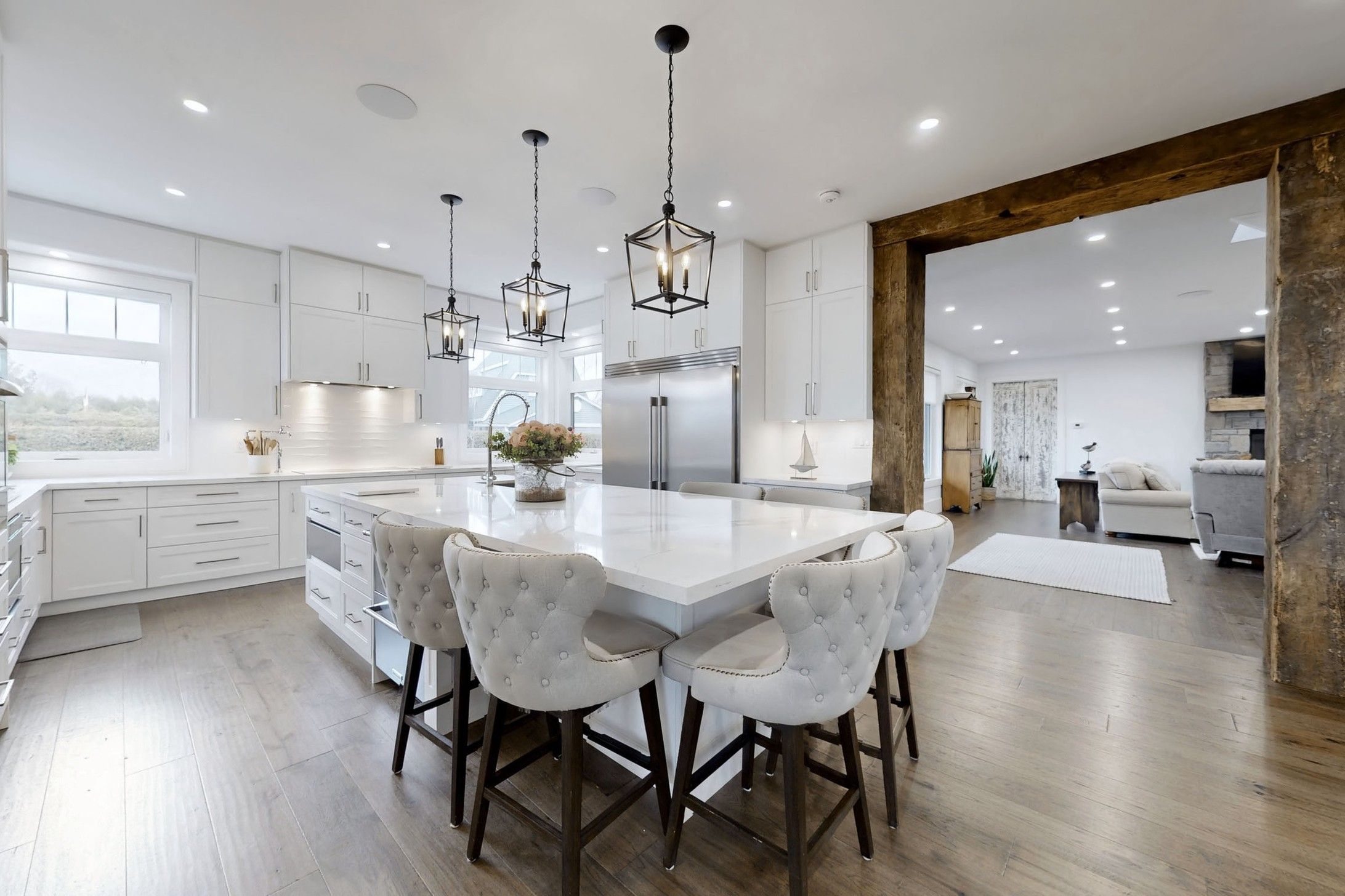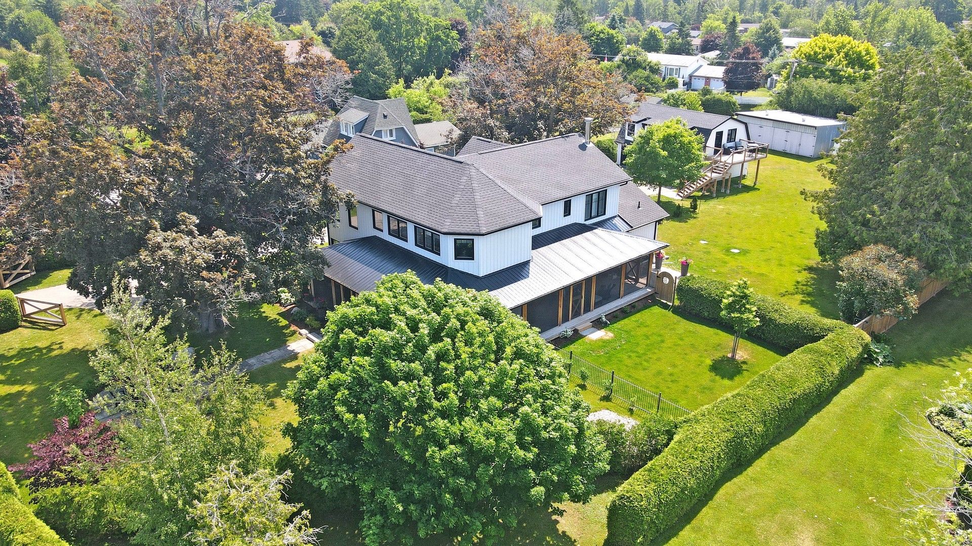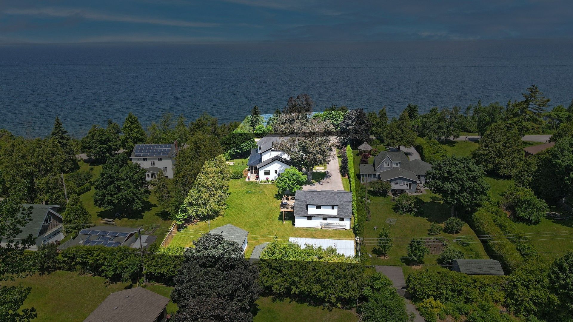 Discover unparalleled lakeside living in this custom-built (2021) board and batten (cape cod) farmhouse, boasting approx. 100' +/- of deeded private access to lake simcoe. Situated on a sprawling 3/4 acre, this exceptional property features multiple outbuildings, including an oversized (23' x 33') 3-car garage with loft (approx. 850 sqft) and an oversized deck, workshop (12' x 35') , garden shed (12' x 20'), and pole barn (approx. 20' x 35'), all accessed by a private, paved driveway. Inside, experience the pride of ownership with attention to detail. Hickory hardwood flooring flows throughout the 4-bedroom, 3. 5 bathroom home. Bedrooms with custom mill-work closets. Upstairs bathrooms with curb-less showers and in-floor heating. Enjoy soaring 9'6" ceilings on the main floor with in-ceiling speakers, 8' ceilings in the full basement, and distinctive 8' tray and pitched ceilings on the second floor. The gourmet kitchen is a chef's dream, featuring an oversized island with seating for 6 and multiple pantries. Electric blinds with remotes in family room and kitchen. Professionally landscaped grounds showcase credit valley flagstone walkways, with landscape lighting and a cozy fire pit area. A private dock with a change room-storage shed provides direct access to the lake, multiple sitting areas to soak in the breathtaking unobstructed lake view and sunsets. Relax and unwind on the screened-in wrap-around porch, complete with pet-friendly screening. This property is truly one-of-a-kind, with too many special features to list. Experience the epitome of lakeside luxury.