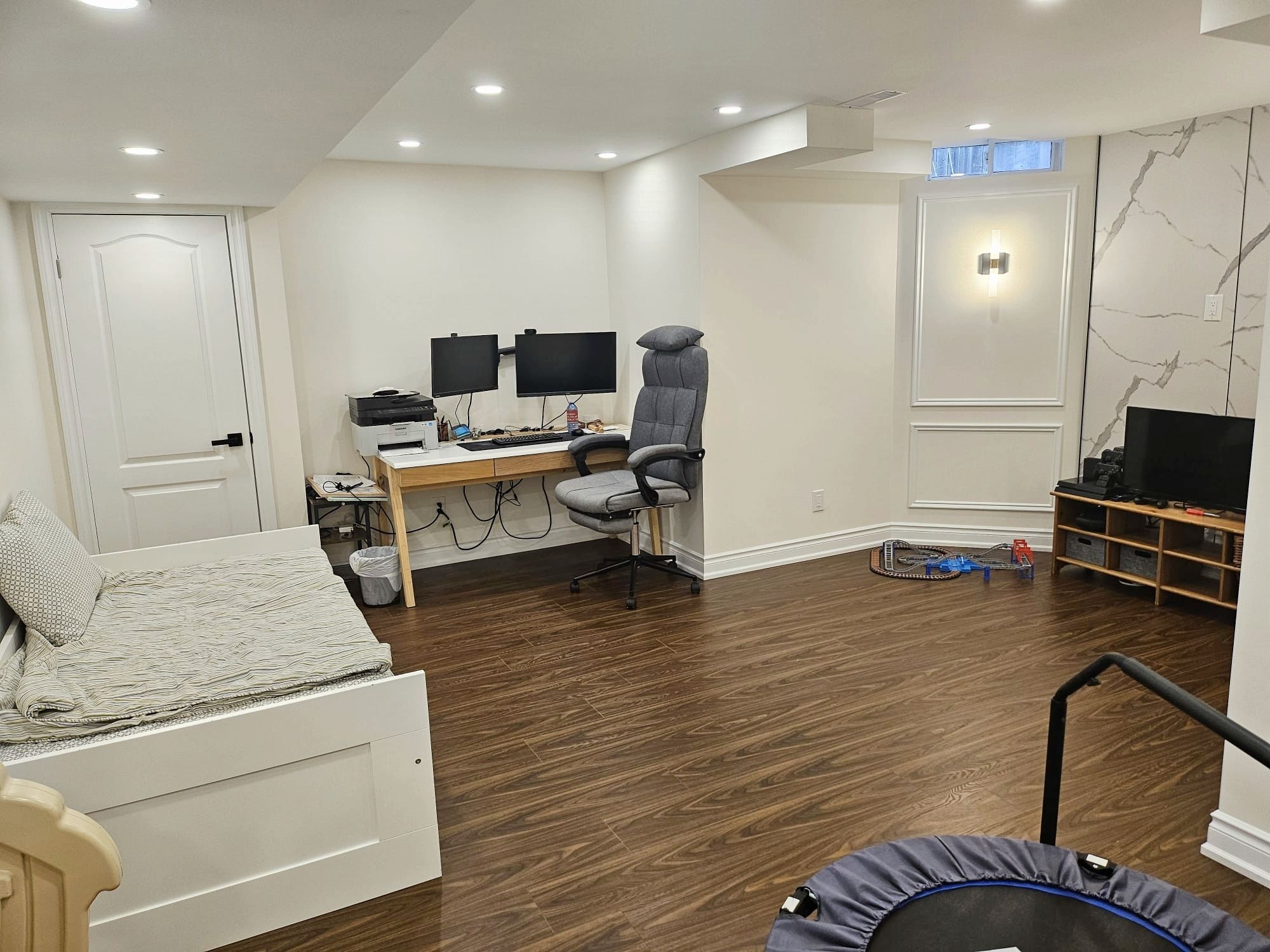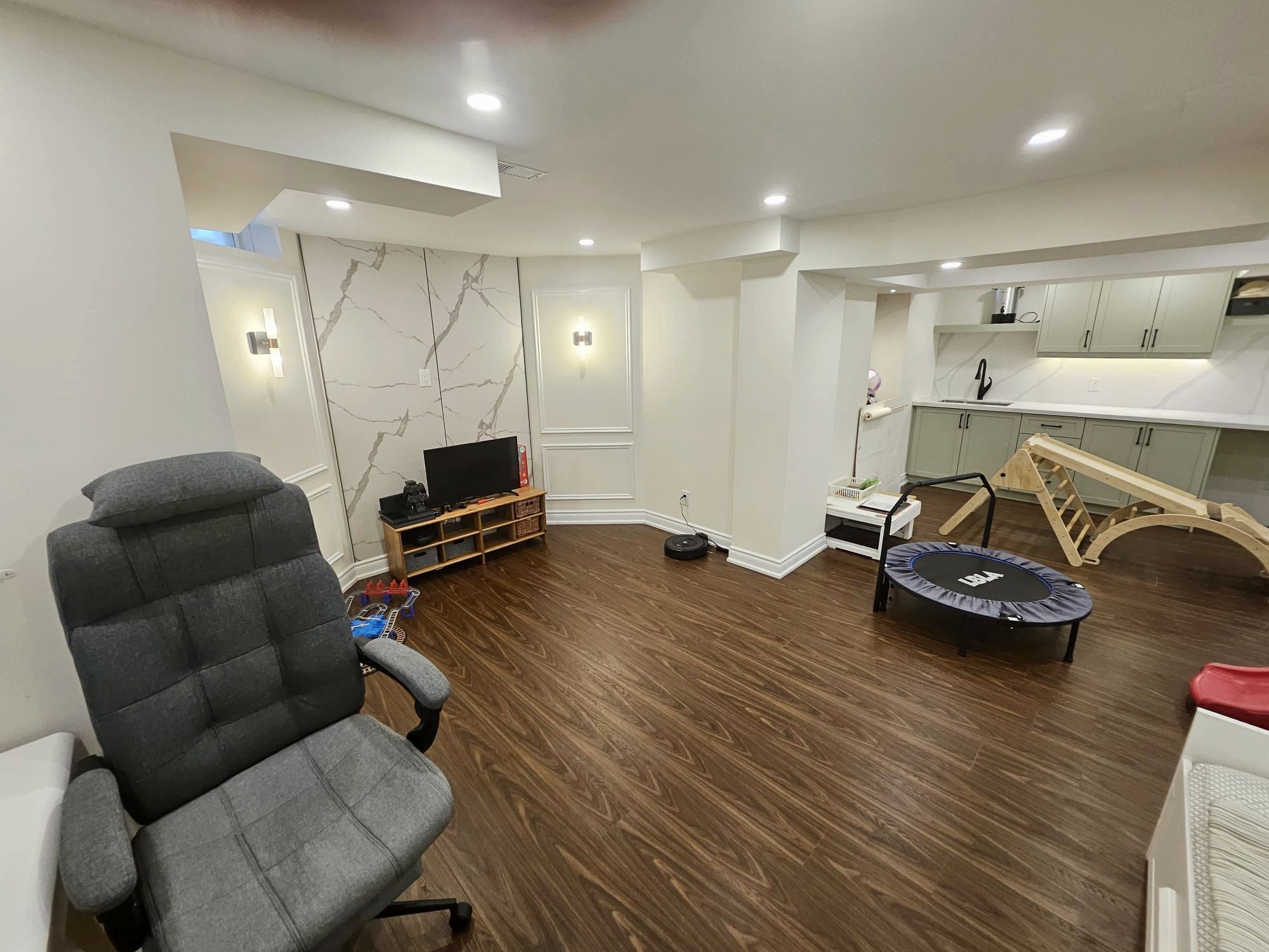 • Fully finished basement with recreation area and additional living space.