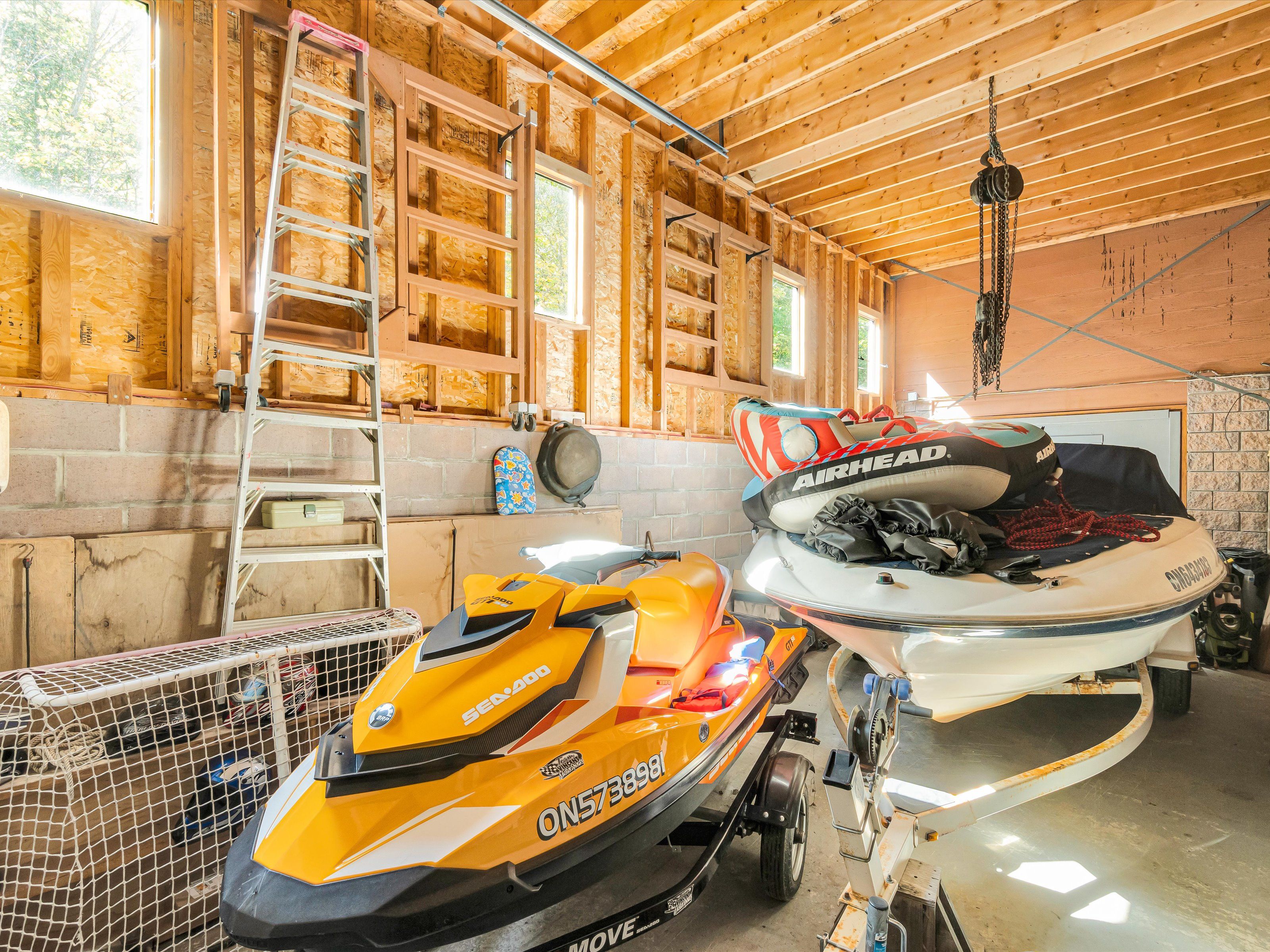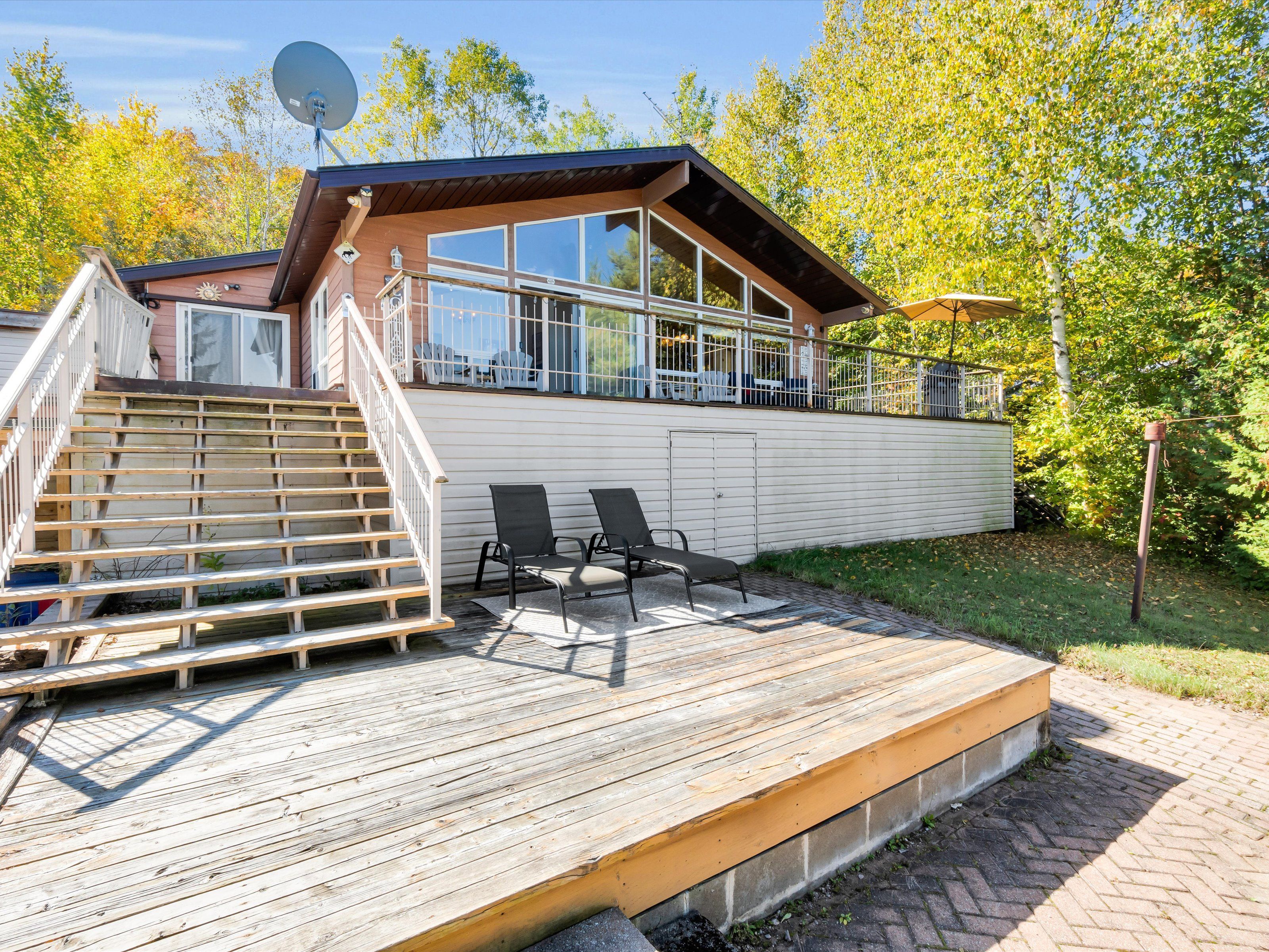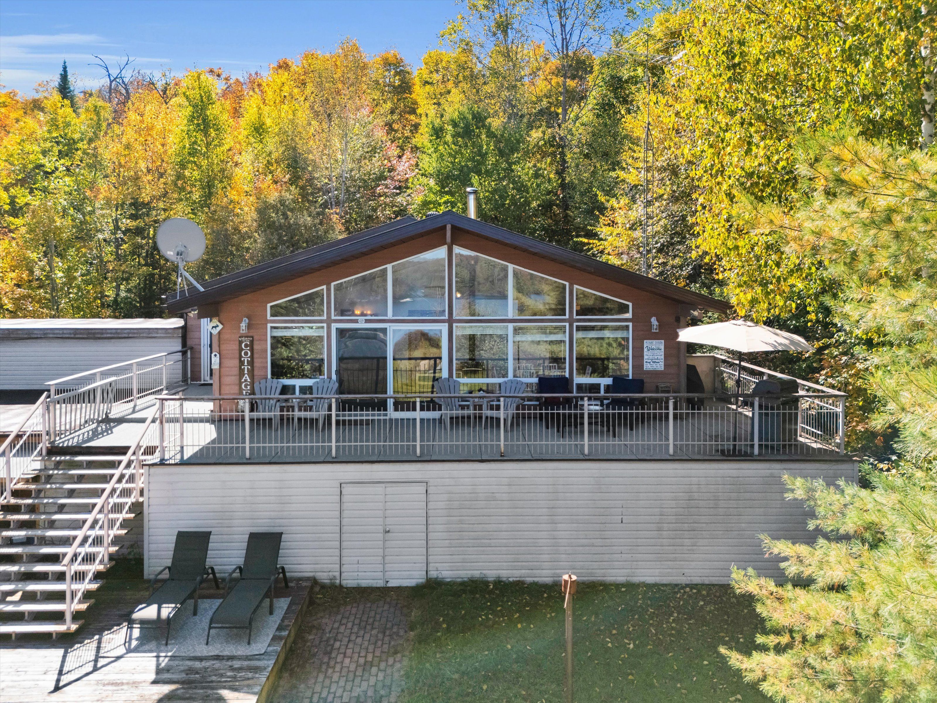Foote lake cottage in novar, offers a generous 105 by192-foot lakefront lot, featuring 3+2 bedrooms, 2 full bathrooms, with two garages to store a boat or can be used as a work station lower level is completely renovated, this home is ideal for year-round living or peaceful getaway providing flexible space for family gatherings or a year-round retreat. The clear waters of foote lake invite boating, swimming, and fishing for northern pike, rock bass, and smallmouth bass, while abundant shoreline wildlife and private walking trails enhance the tranquil, nature-filled experience. Inside, the home features welcoming living spaces, a functional kitchen, and adaptable bedrooms that can serve as guest rooms, a home office, or hobby areas. This property combines classic cottage charm with modern potential, making it ideal for seasonal escapes, rental opportunities, or full-time lake living. Welcome to your private waterfront retreat on beautiful foot lake in perry! This stunning detached raised bungalow offers the perfect blend of modern comfort and serene cottage living. Enjoy breathtaking lake views from your spacious deck, relax on your private sandy beach, or spend the afternoon on your private dock with direct water access. Complete with a garage, ample parking, and surrounded by nature, this property offers the ultimate muskoka lifestyle - just move in and tart making memories by the water.