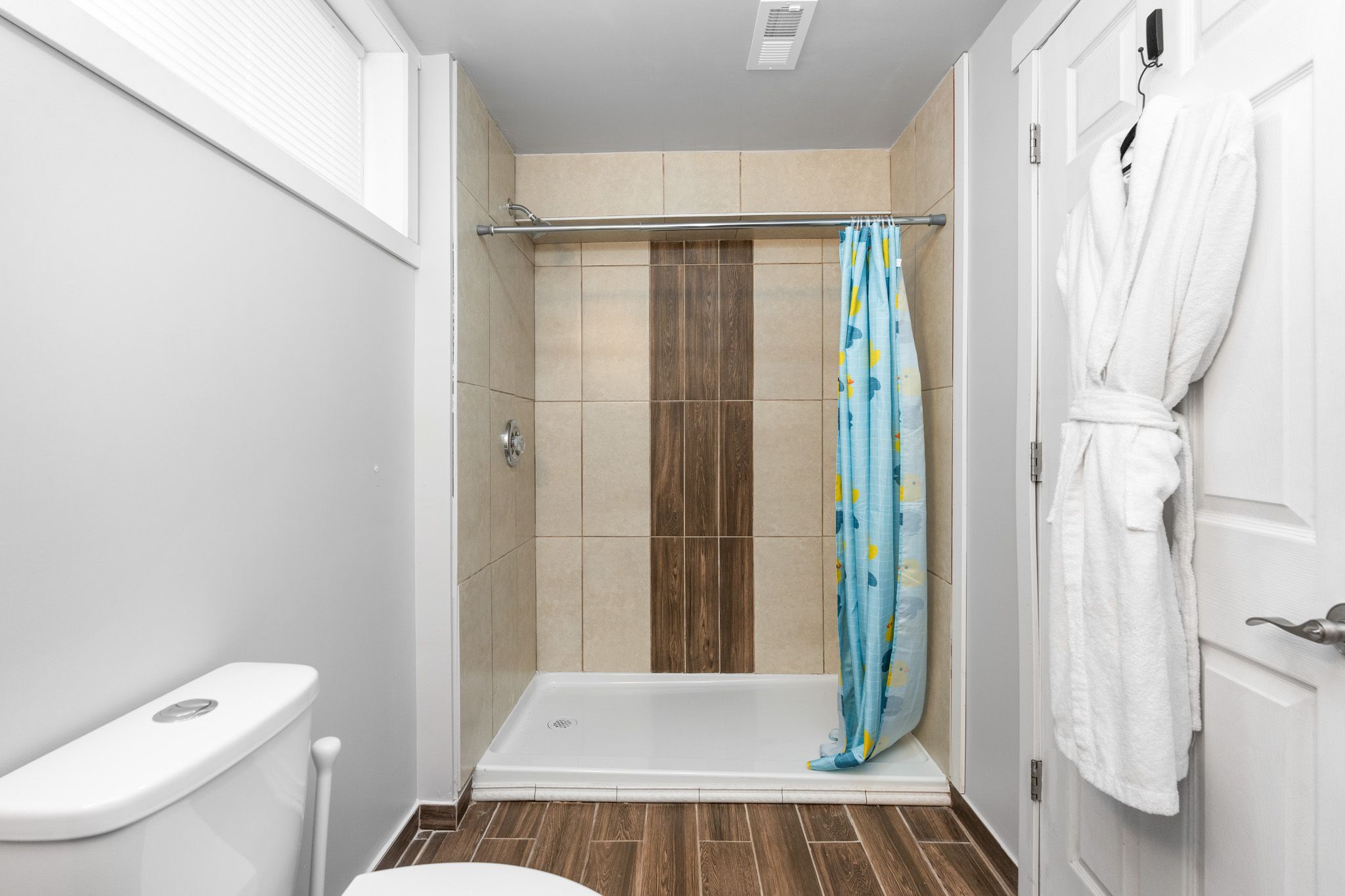 • Bright lower level features two bedrooms and a rec room with wet bar.