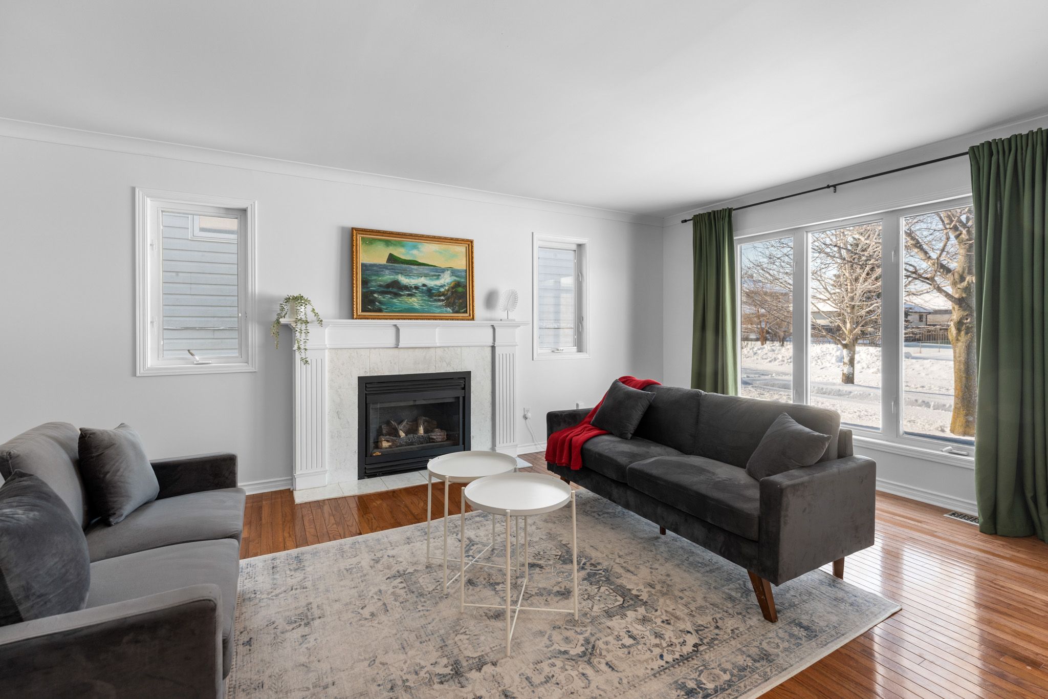 • Cozy gas fireplaces in both the living room and family room.