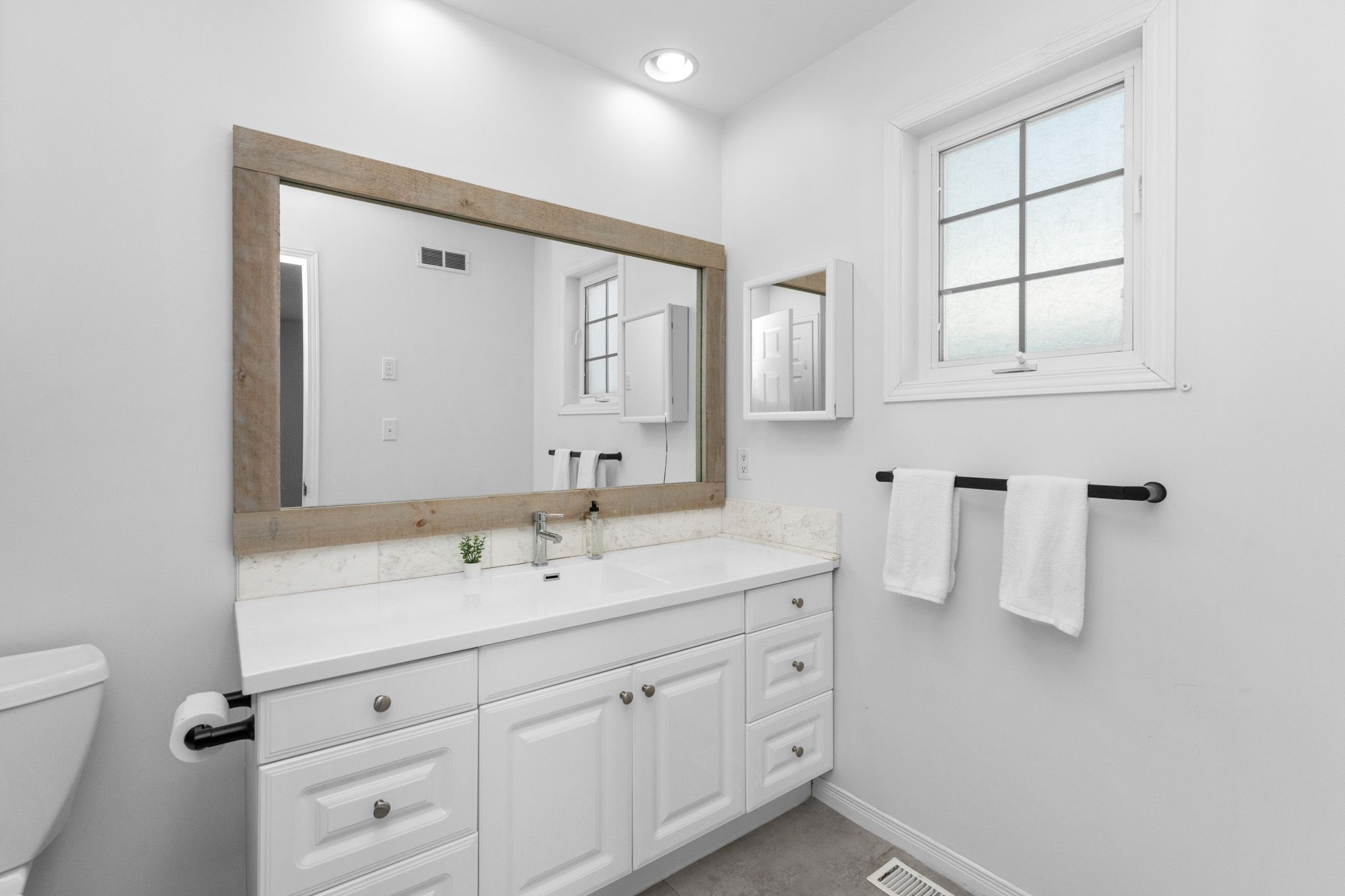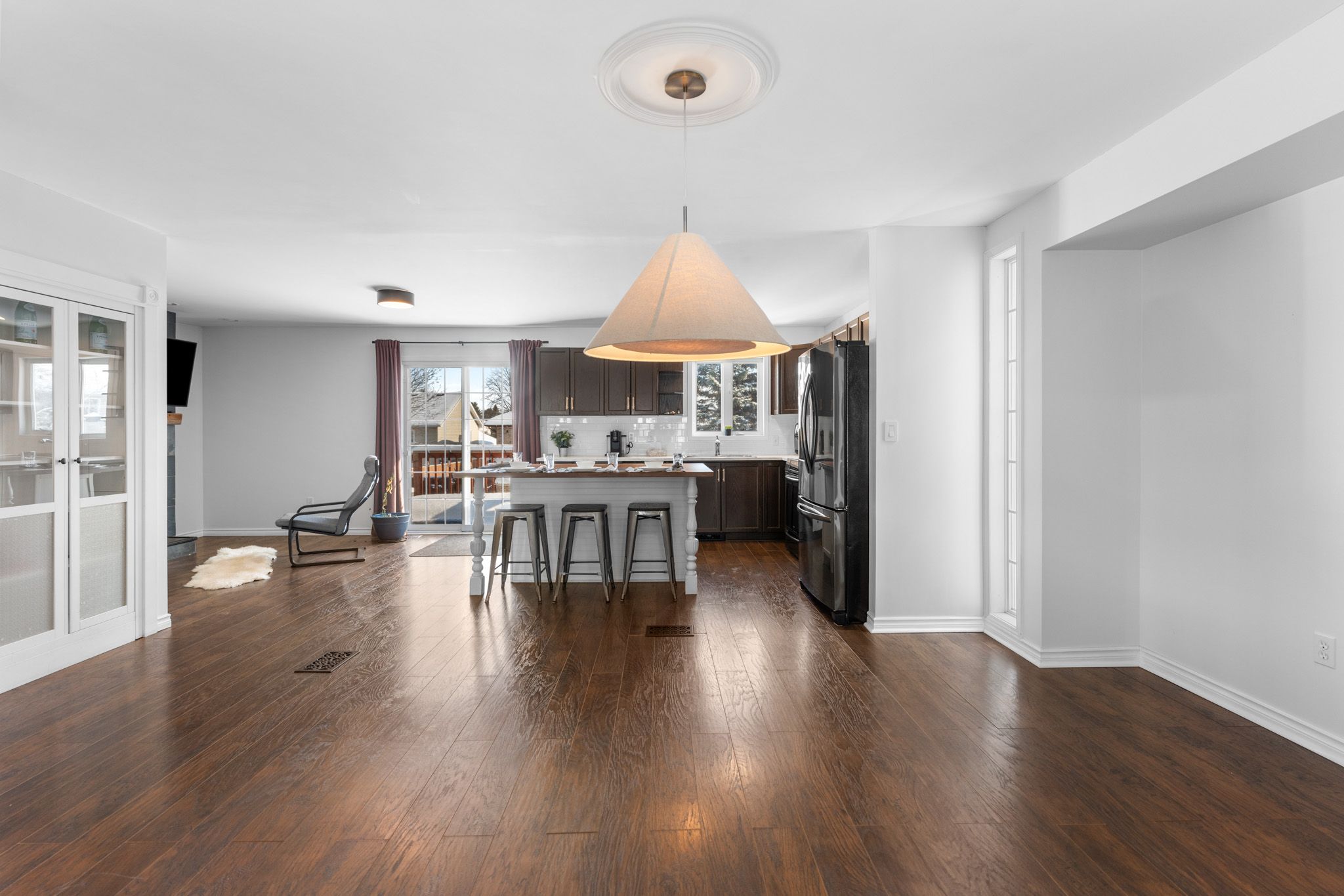 • Bright lower level with two bedrooms and a spacious rec room.