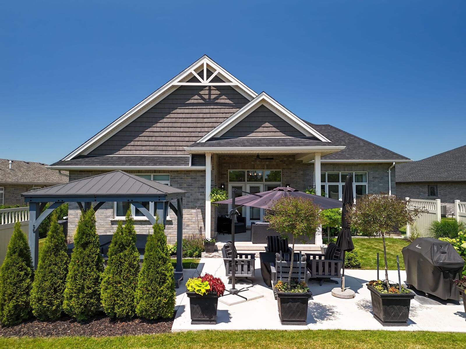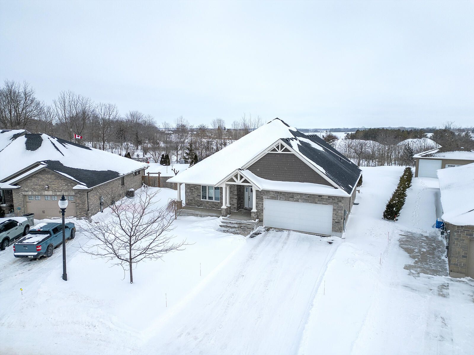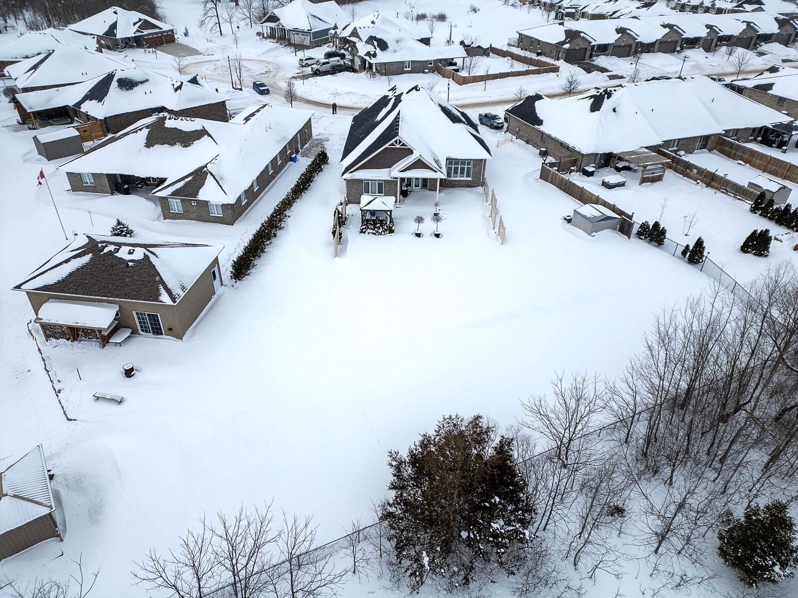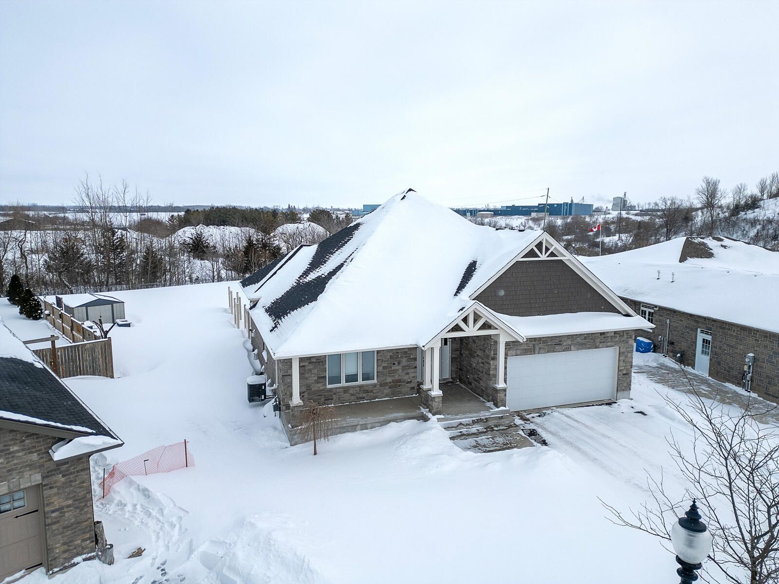 Nestled in a tranquil cul-de-sac, this exceptional bungalow truly stands out. Built in 2018, it boasts an impressive pie-shaped lot of just under half an acre and offers a remarkable 4,519 square feet of finished living space 2,411 square feet on the main floor and a fully finished lower level of 2,108 square feet, with potential for an in-law suite. Thoughtfully designed for both daily living and entertaining, the open-concept main level features smooth ceilings, recessed lighting, and gleaming hardwood floors throughout. The chef-inspired kitchen serves as the heart of the home, equipped with an oversized island, abundant cabinetry, a walk-in pantry, and generous counter space. This space flows seamlessly into the dining area and a welcoming living room, complete with a gas fireplace. Oversized windows frame serene views of the beautifully landscaped backyard, filling the home with natural light. The private primary retreat is a true sanctuary, featuring a spa-like ensuite with a coni marble shower base, a frameless glass door, and a walk-in closet, along with its own access to the backyard, perfect for morning coffee or evening relaxation. Two additional bedrooms and a stylish 4-piece bathroom are conveniently located at the front of the home. The finished lower level continues to impress, showcasing oversized lookout windows, a spacious family room with a gas fireplace, a wet-bar-ready area, two additional bedrooms, a full bathroom, and ample storage-ideal for teens, guests, or multigenerational living. Step outside to enjoy your private backyard oasis, featuring a newly constructed expansive patio, professionally landscaped grounds, and a hot tub for year-round relaxation. With 5 bedrooms, 3. 5 bathrooms, and endless space to live, gather, and grow, this remarkable home offers the lifestyle you've been waiting for-just steps away from schools, parks, trails, the recreation centre, and downtown st. Marys!