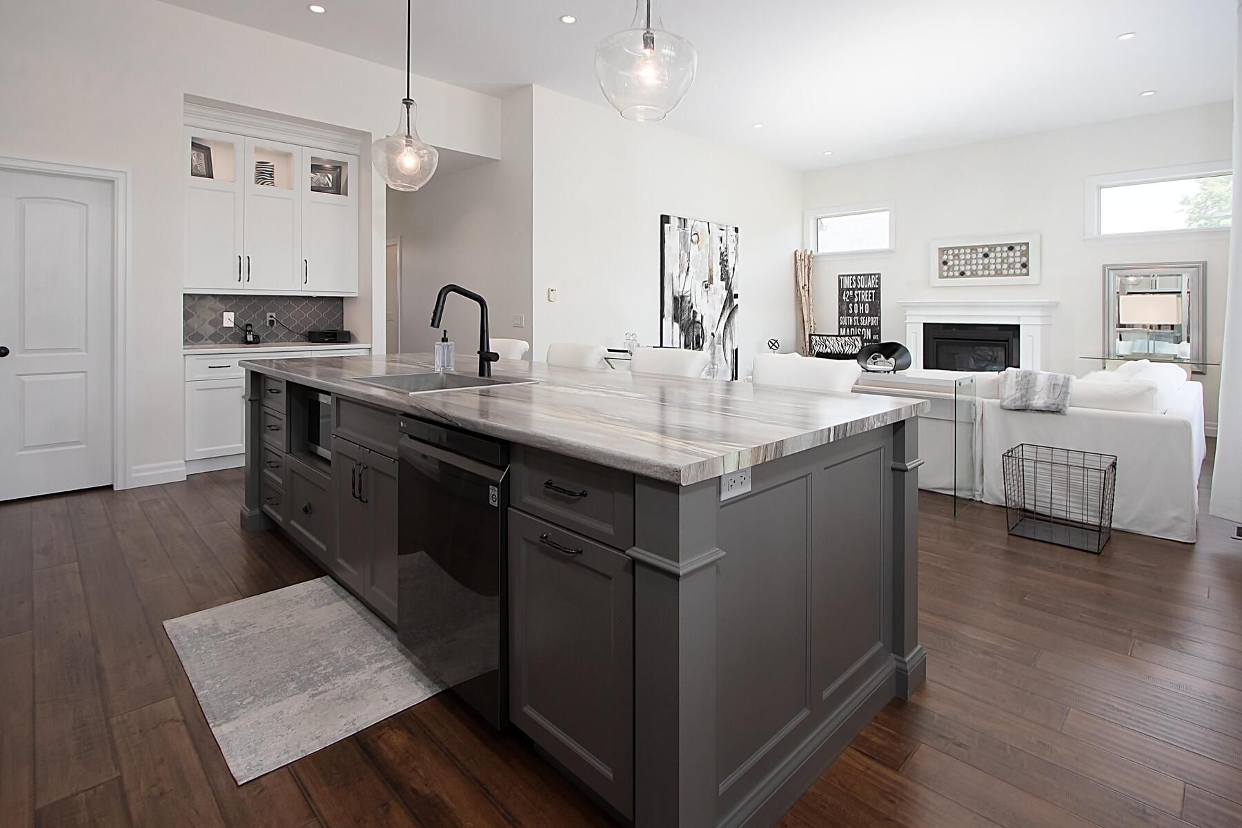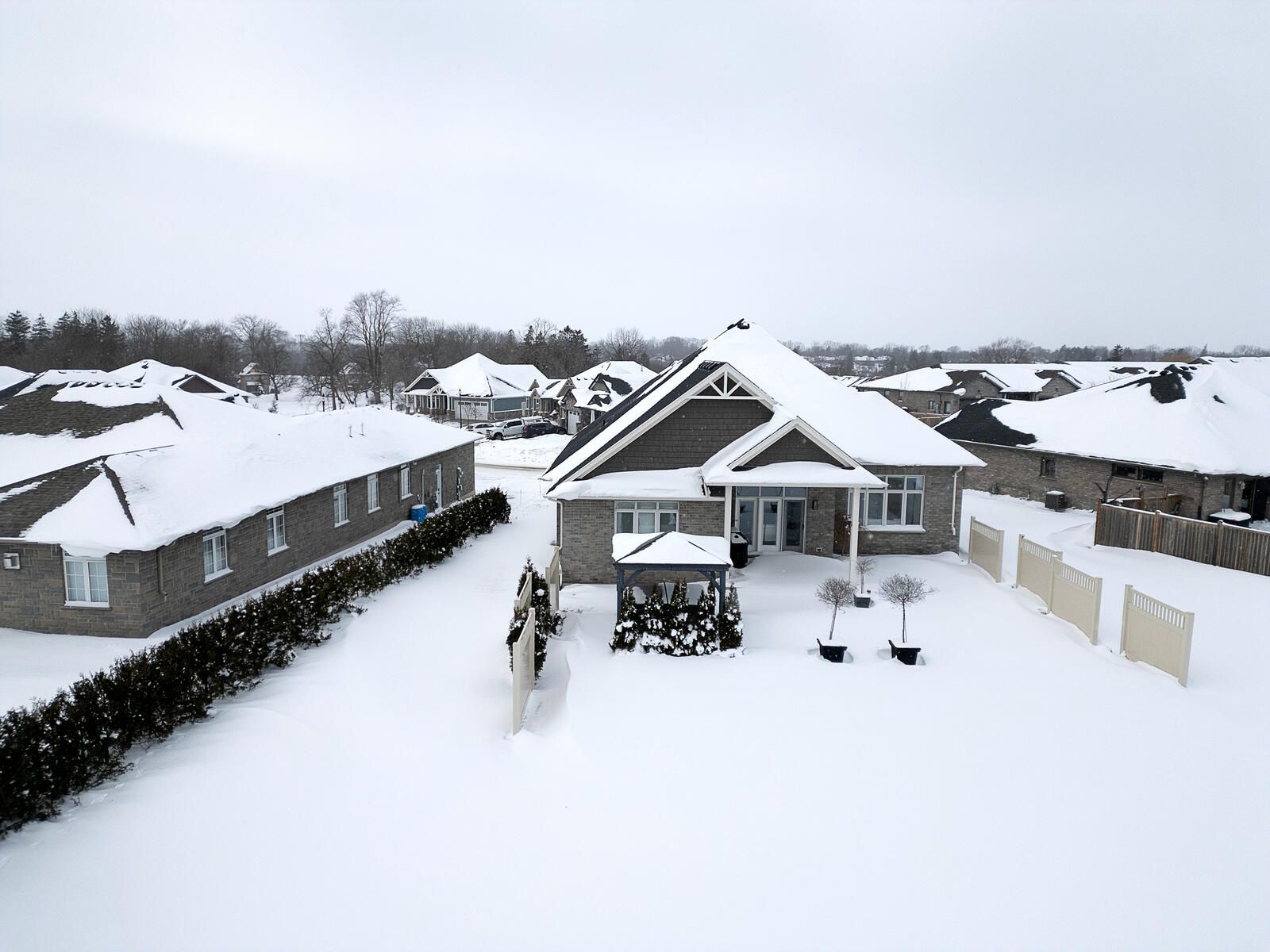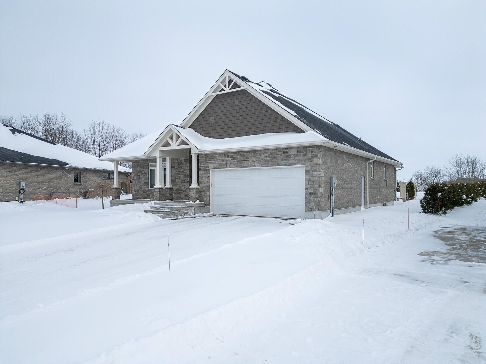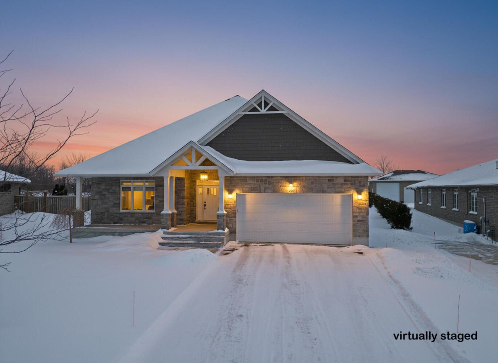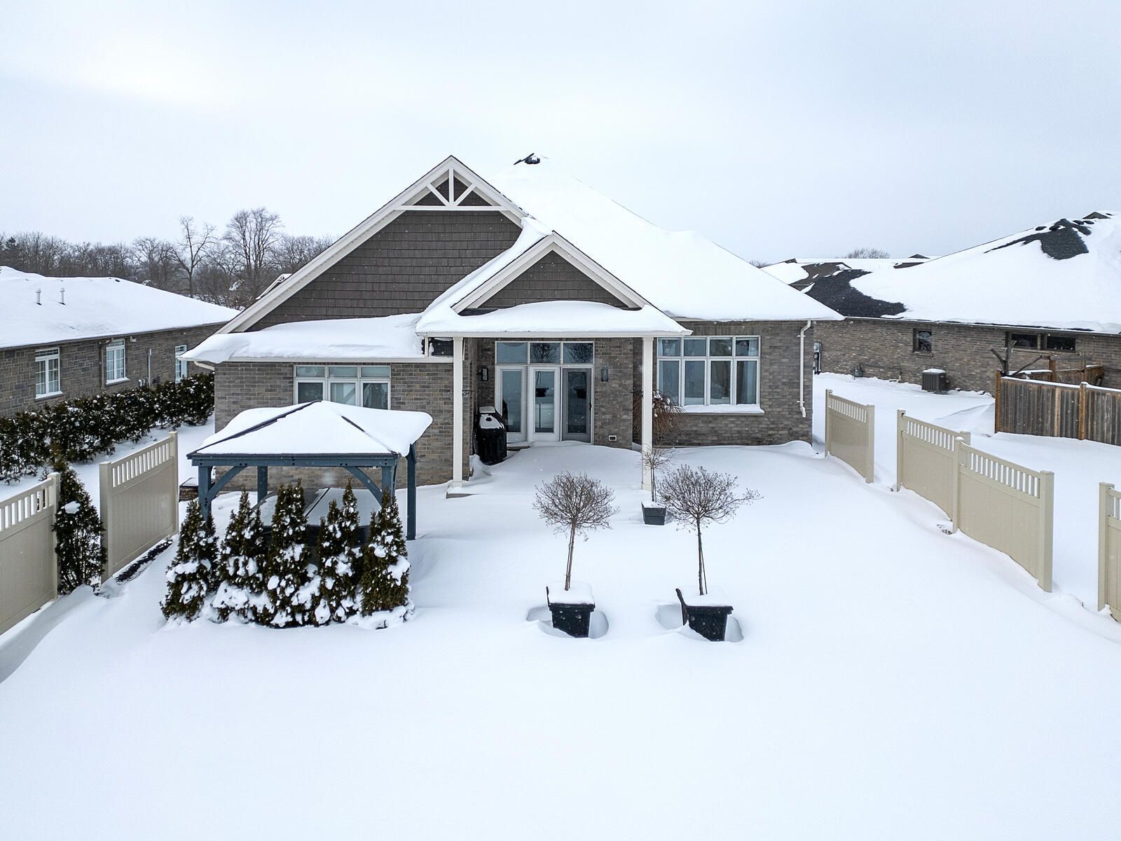 Nestled in a tranquil cul-de-sac, this exceptional bungalow truly stands out. Built in 2018, it boasts an impressive pie-shaped lot of just under half an acre and offers a remarkable 4,519 square feet of finished living space 2,411 square feet on the main floor and a fully finished lower level of 2,108 square feet, with potential for an in-law suite. Thoughtfully designed for both daily living and entertaining, the open-concept main level features smooth ceilings, recessed lighting, and gleaming hardwood floors throughout. The chef-inspired kitchen serves as the heart of the home, equipped with an oversized island, abundant cabinetry, a walk-in pantry, and generous counter space. This space flows seamlessly into the dining area and a welcoming living room, complete with a gas fireplace. Oversized windows frame serene views of the beautifully landscaped backyard, filling the home with natural light. The private primary retreat is a true sanctuary, featuring a spa-like ensuite with a coni marble shower base, a frameless glass door, and a walk-in closet, along with its own access to the backyard, perfect for morning coffee or evening relaxation. Two additional bedrooms and a stylish 4-piece bathroom are conveniently located at the front of the home. The finished lower level continues to impress, showcasing oversized lookout windows, a spacious family room with a gas fireplace, a wet-bar-ready area, two additional bedrooms, a full bathroom, and ample storage-ideal for teens, guests, or multigenerational living. Step outside to enjoy your private backyard oasis, featuring a newly constructed expansive patio, professionally landscaped grounds, and a hot tub for year-round relaxation. With 5 bedrooms, 3. 5 bathrooms, and endless space to live, gather, and grow, this remarkable home offers the lifestyle you've been waiting for-just steps away from schools, parks, trails, the recreation centre, and downtown st. Marys!
