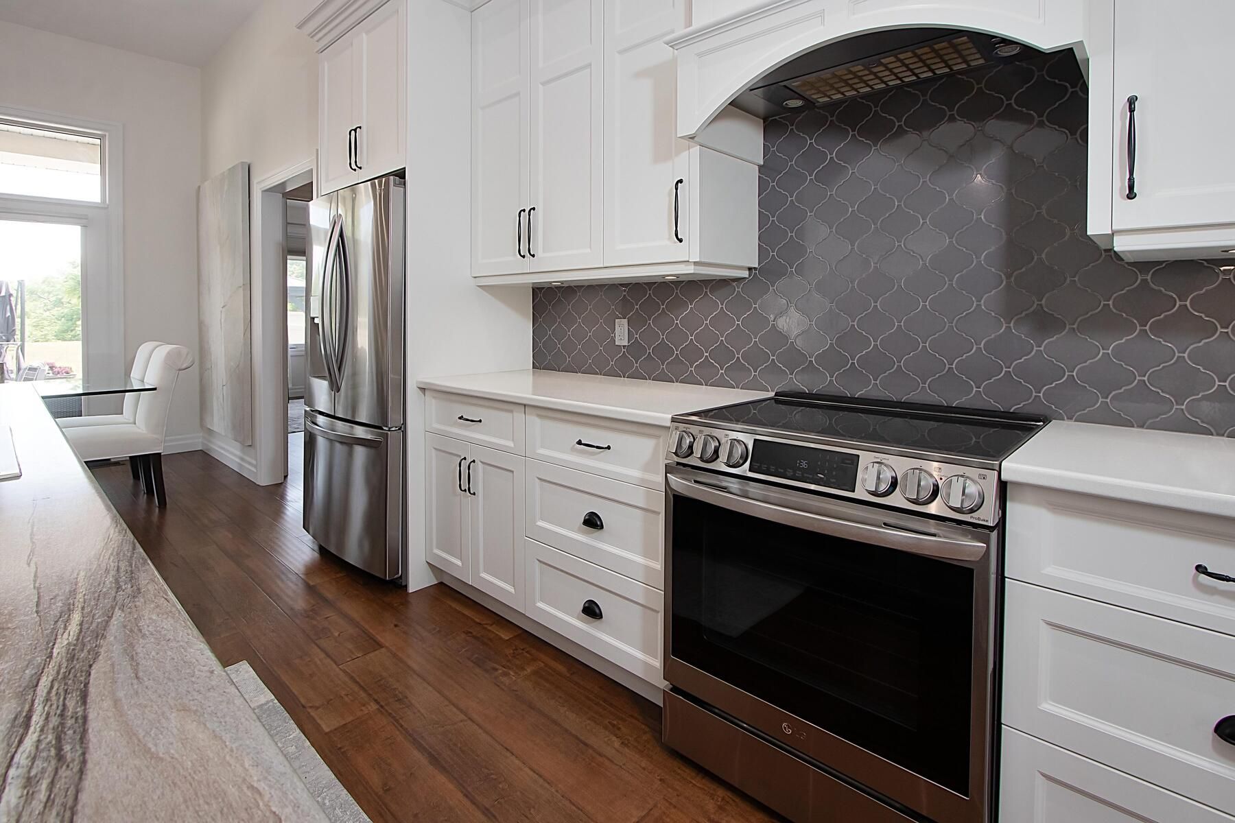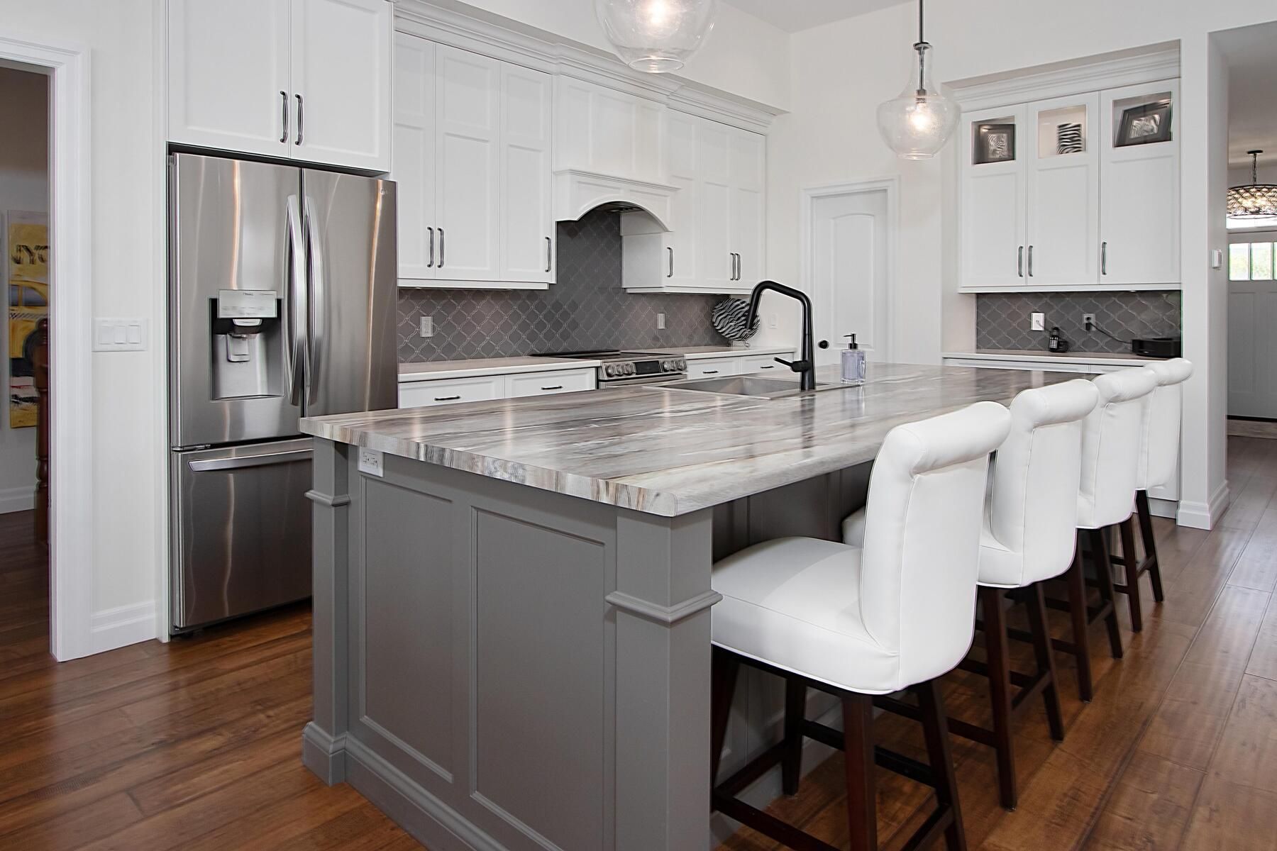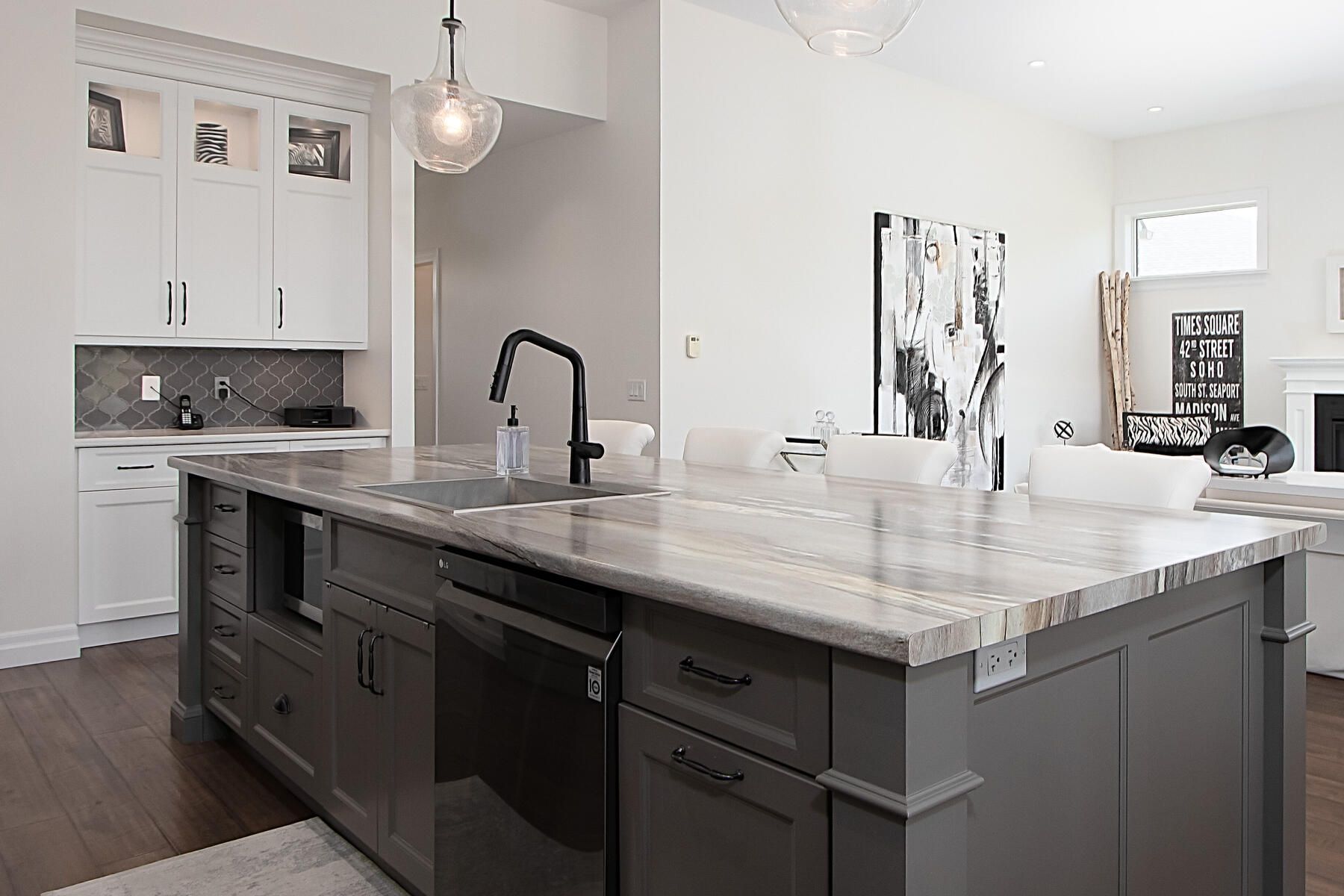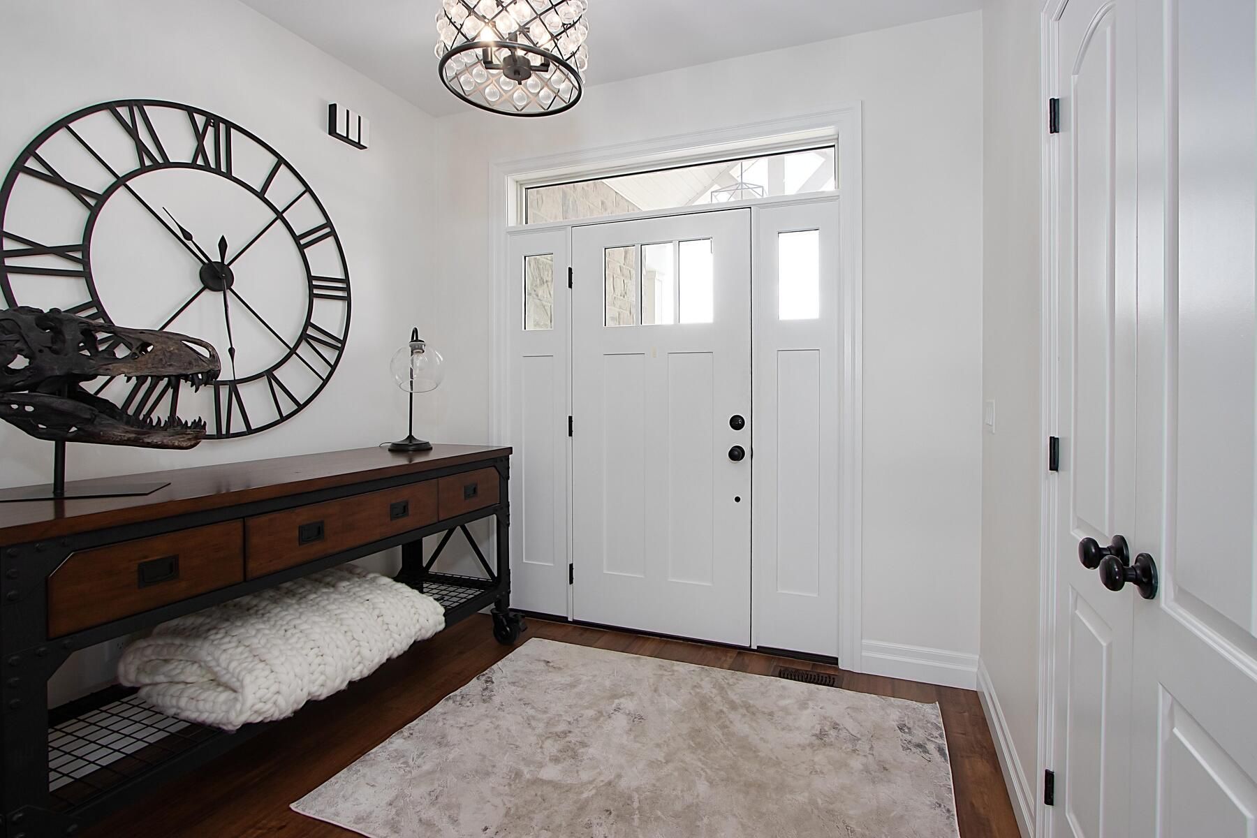 Nestled in a tranquil cul-de-sac, this exceptional bungalow truly stands out. Built in 2018, it boasts an impressive pie-shaped lot of just under half an acre and offers a remarkable 4,519 square feet of finished living space 2,411 square feet on the main floor and a fully finished lower level of 2,108 square feet, with potential for an in-law suite. Thoughtfully designed for both daily living and entertaining, the open-concept main level features smooth ceilings, recessed lighting, and gleaming hardwood floors throughout. The chef-inspired kitchen serves as the heart of the home, equipped with an oversized island, abundant cabinetry, a walk-in pantry, and generous counter space. This space flows seamlessly into the dining area and a welcoming living room, complete with a gas fireplace. Oversized windows frame serene views of the beautifully landscaped backyard, filling the home with natural light. The private primary retreat is a true sanctuary, featuring a spa-like ensuite with a coni marble shower base, a frameless glass door, and a walk-in closet, along with its own access to the backyard, perfect for morning coffee or evening relaxation. Two additional bedrooms and a stylish 4-piece bathroom are conveniently located at the front of the home. The finished lower level continues to impress, showcasing oversized lookout windows, a spacious family room with a gas fireplace, a wet-bar-ready area, two additional bedrooms, a full bathroom, and ample storage-ideal for teens, guests, or multigenerational living. Step outside to enjoy your private backyard oasis, featuring a newly constructed expansive patio, professionally landscaped grounds, and a hot tub for year-round relaxation. With 5 bedrooms, 3. 5 bathrooms, and endless space to live, gather, and grow, this remarkable home offers the lifestyle you've been waiting for-just steps away from schools, parks, trails, the recreation centre, and downtown st. Marys!