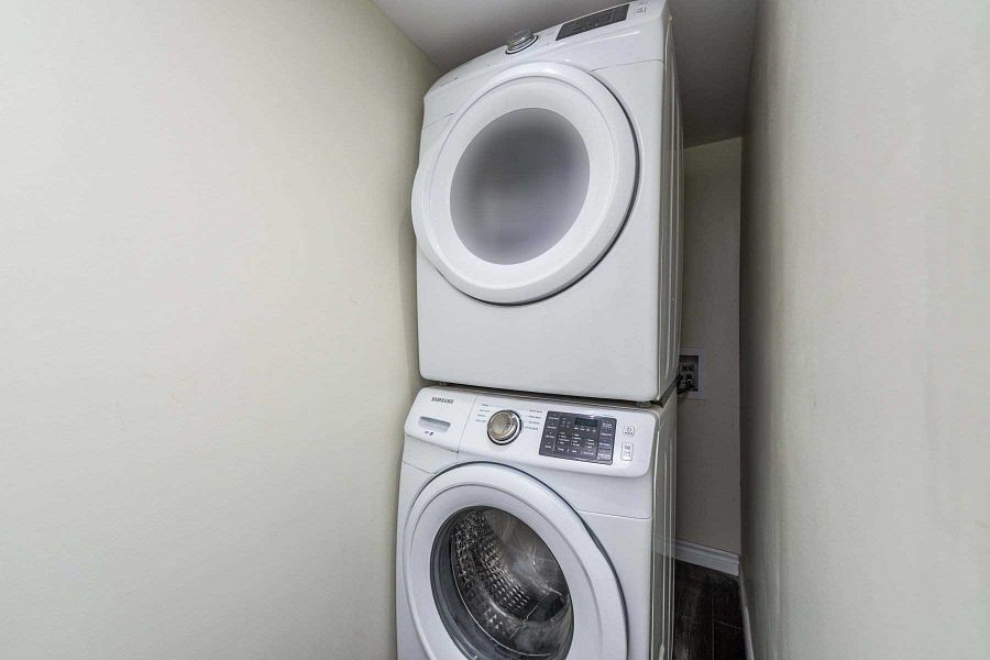 • Modern kitchen featuring quartz countertops and stainless steel appliances.