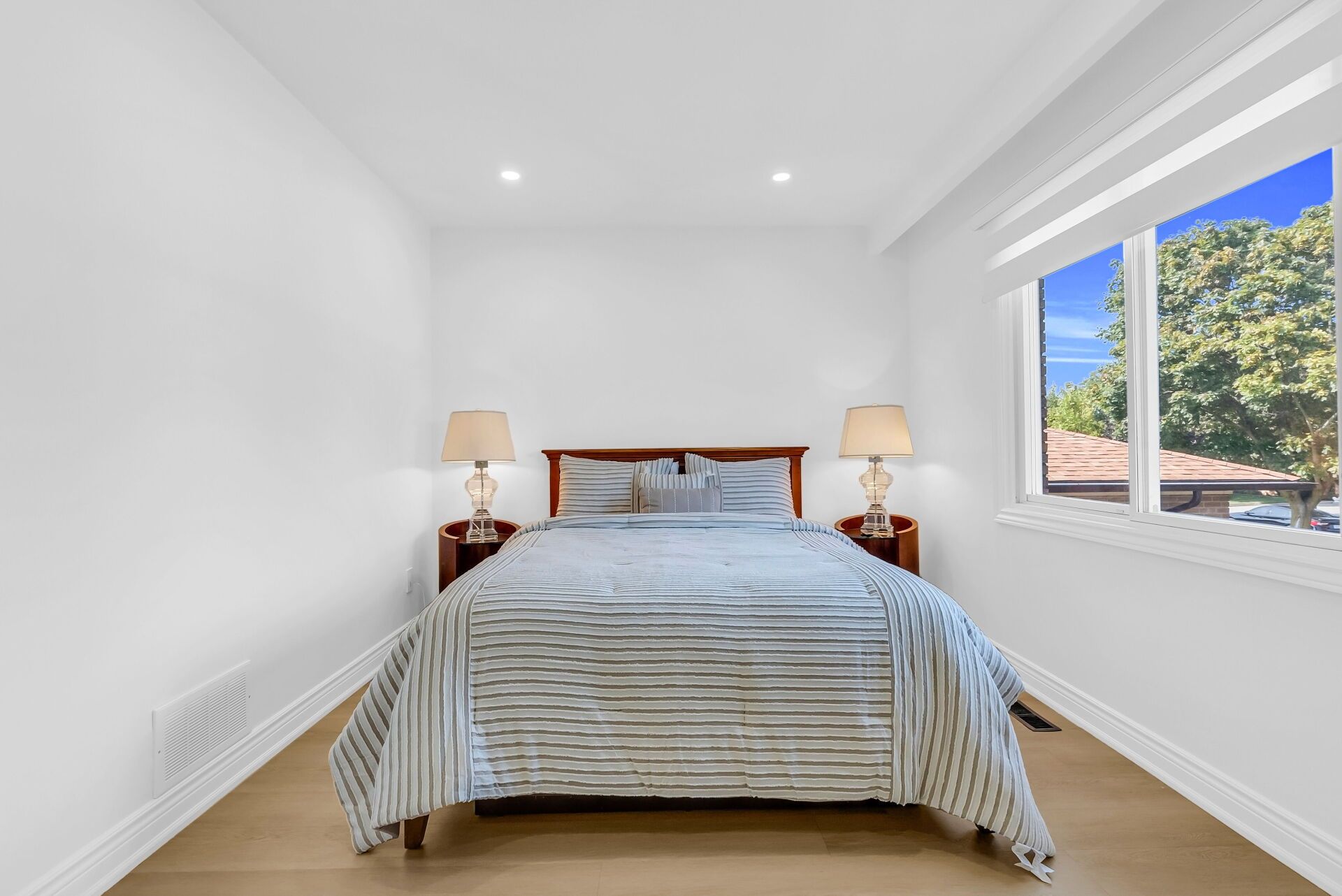 **view virtual tour** fully recently upgraded detached home w/ a legal finished walk up basement nestled on a premium corner lot in a highly desirable mississauga enclave* this 4-level side split includes 4+2 spacious bdrms & 5 bath. Step inside through elegant wrought-iron double doors into a grand foyer. Pot lights, motorized blinds, carrera 2x4 porcelain tiles main/kitchen , engineered hardwood floors throughout *no carpet*. The sun-filled living & dining rms ft oversized windows for lots of natural light, professionally painted interiors, & an empire crystal chandelier anchoring the dining space. At the heart of the home, the chef-ready kitchen showcases new countertops, sleek cabinetry, upgraded stainless steel appliances, & a breakfast area overlooking the warm family room w/ an accent tv wall & modern fireplace, plus a walkout to the private backyard. Upstairs, four generously sized bdrms include a serene primary retreat w/a spa-inspired 3-pc ensuite. 3 additional bdrm share 2 additional btrms. All washrooms have been fully renovated w/ porcelain tile, glass showers, custom vanities, & upscale fixtures. A main-floor laundry adds ease to daily living, equipped w/ brand new s/s machines & cabinets for easy storage. Professionally finished legal walk-up basement apartment (2024) offers 2 bdrms, 2 bathrooms, kitchen, pot lights, a bright open-concept living space, & a private entrance ideal for in-law accommodations or rental income potential. Recent upgrades include new furnace (2024), new ac (2024), new main entrance & patio doors, all interior doors replaced, motorized blinds installed, & concrete paving around the house (2024). With a 4-car driveway, 2-car garage, & every detail upgraded, this move-in-ready home defines refined living in mississauga. Ideally located near top-rated schools, hospitals, community centres, lush parks, & major highways, this residence blends upscale comfort with everyday convenience**