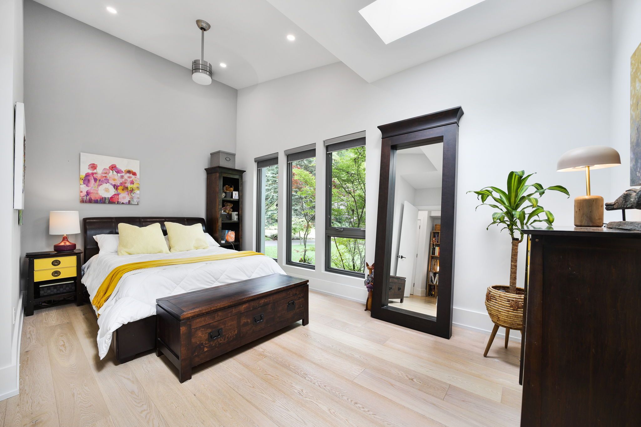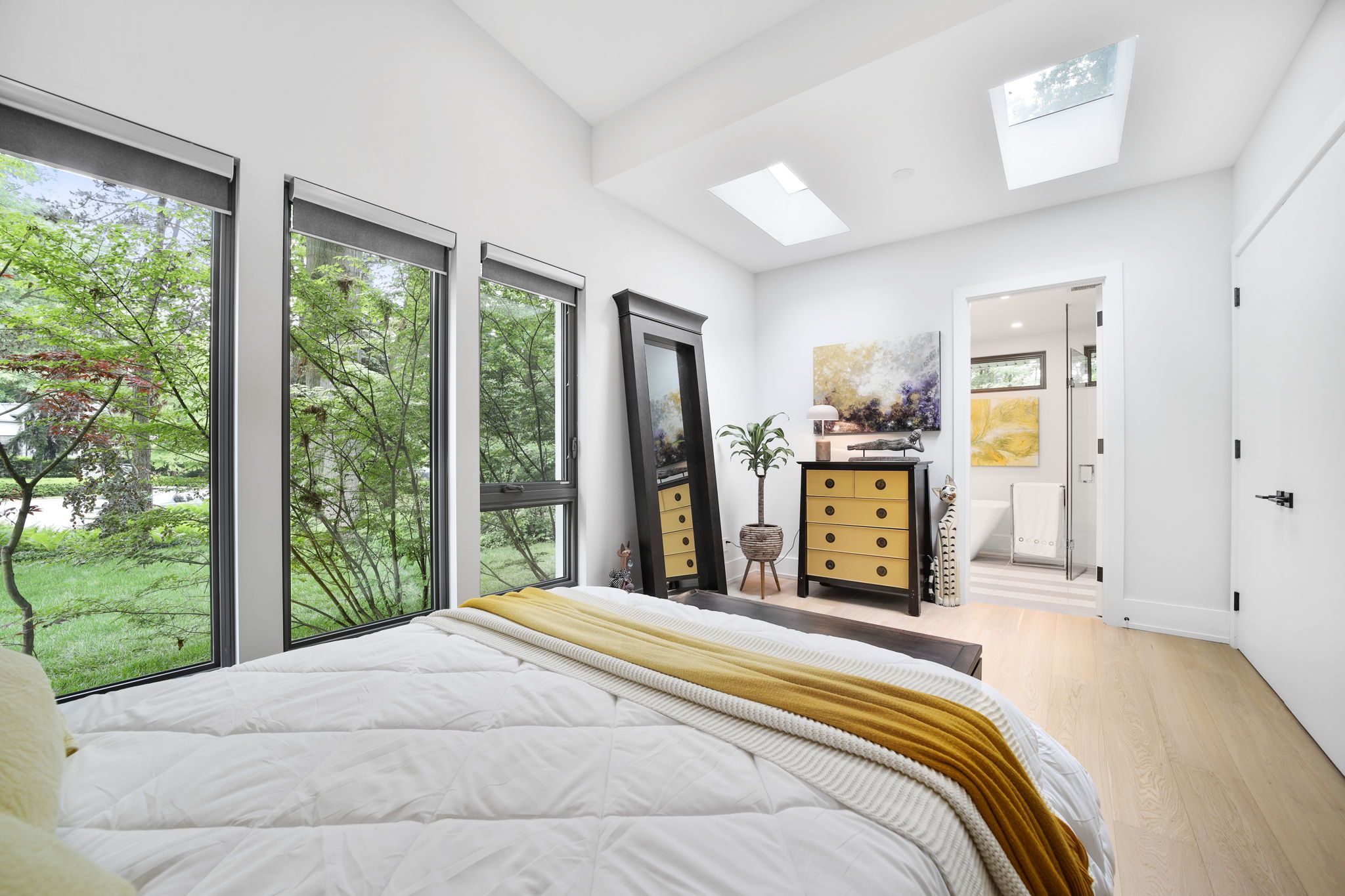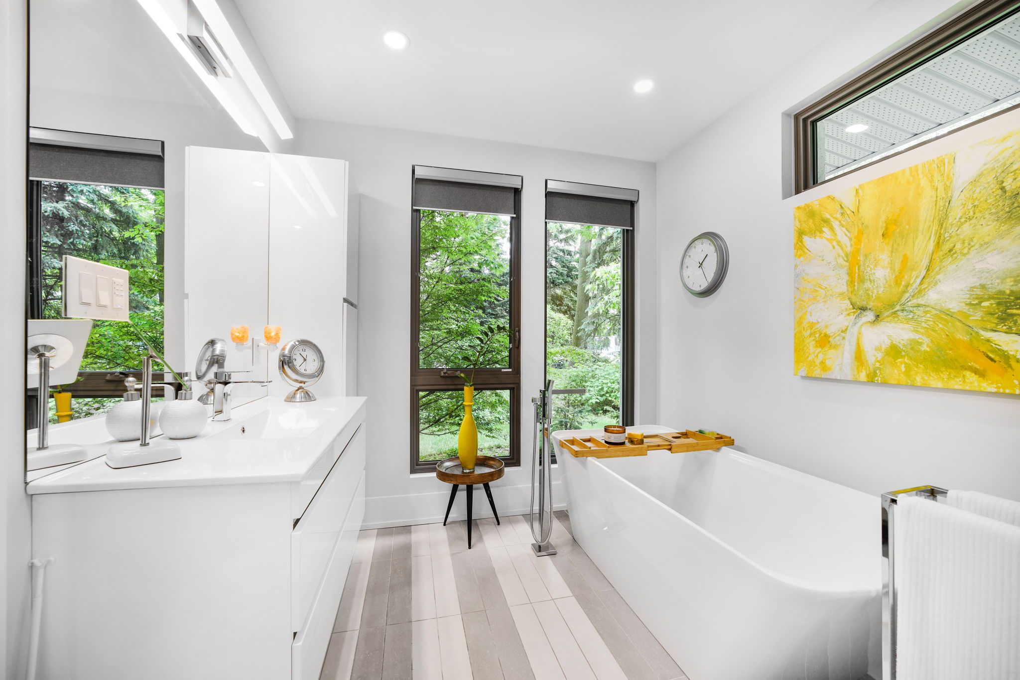 Modern luxury renovated bungalow on a massive, third-of-an-acre pie-shaped lot, backing into a park. Almost 3800 square feet of the total luxury finished livable space. Situated at the end of a quiet cul-de-sac on one of the most prestigious streets in south-east oakville. Surrounded by mature trees, the west-facing backyard provides year-round privacy. Upon entering, you are greeted by soaring ceilings, skylights and 13-foot inline fiberglass windows providing a direct view into the private, treed backyard and patio. Complementing the great room with a fireplace is a spacious and modern kitchen, dining room, powder room, mudroom and laundry. There are three bedrooms on the main level, two with their en-suite bathrooms, with the third currently being used as a home office. The lower level has been completely redesigned and can function as a separate unit with its own entrance or as an in-law or nanny suite. Complete with a large open concept living room and kitchen, there are three bedrooms, two bathrooms, a gas fireplace and a dedicated laundry. All upgraded "inline" fibreglass windows throughout. All upgraded electrical with 200 amp service, all upgraded gas line. The house has a double-car garage with a tesla charging station, a large park-like, landscaped lot with a storage shed and big patios. Cul-de-sac in south east oakville with a gorgeous forest view! Not to be missed! **extras** please note the house is backing into a park - but it's not subject to conservation authority - for a client interested in future development. It's approximately 216' across the back of the property. Original survey attached. Brand new commercial flat roof with skylights installed in 2025.