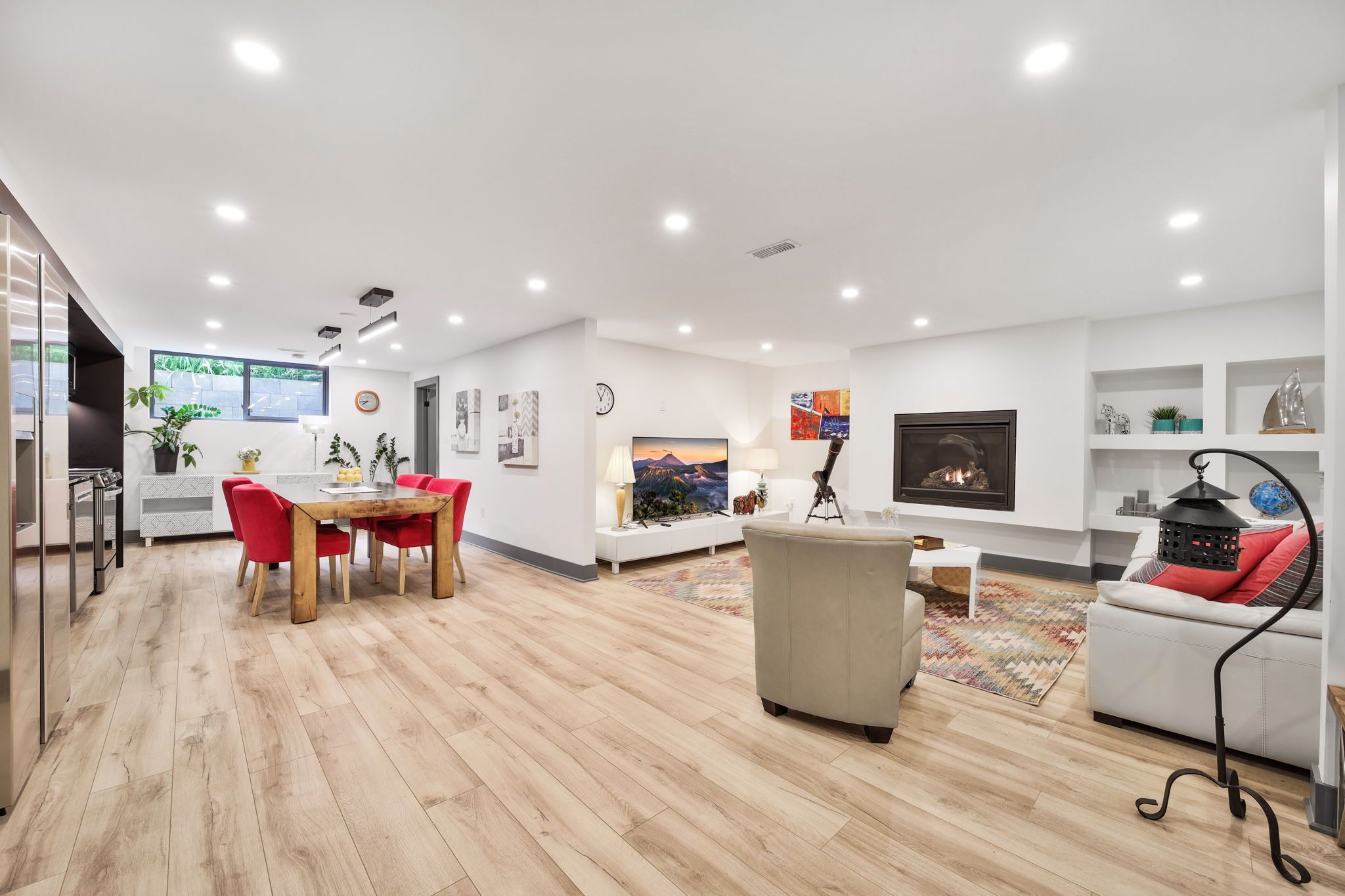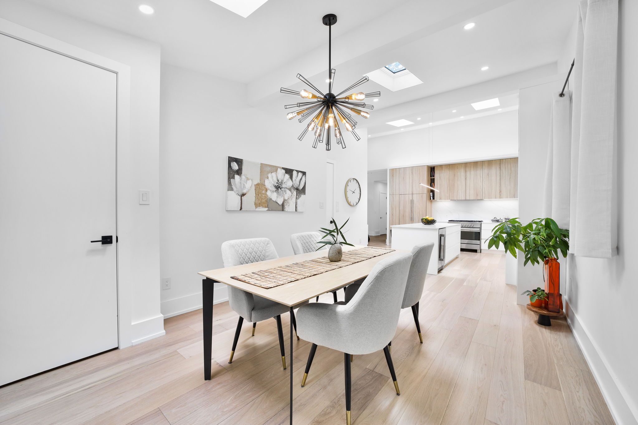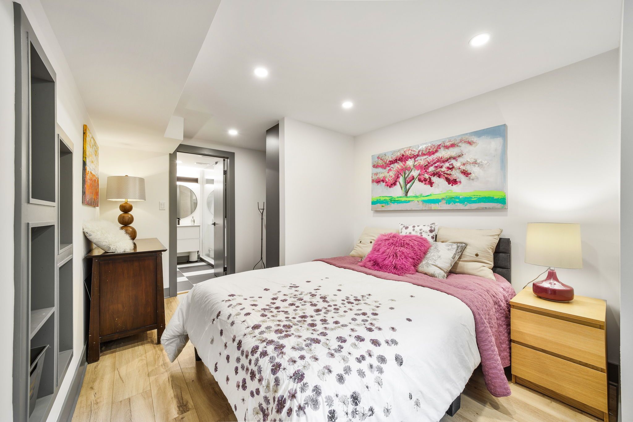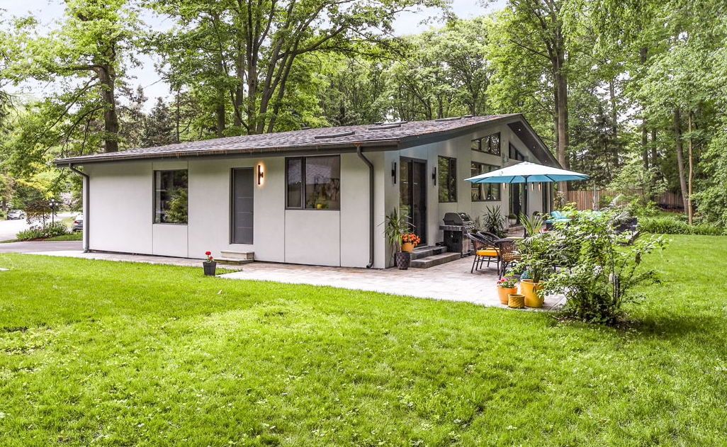 • Renovated bungalow on a large, pie-shaped lot backing onto a park.