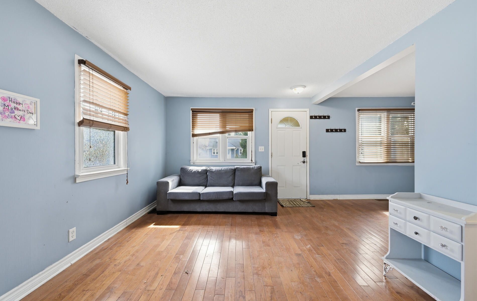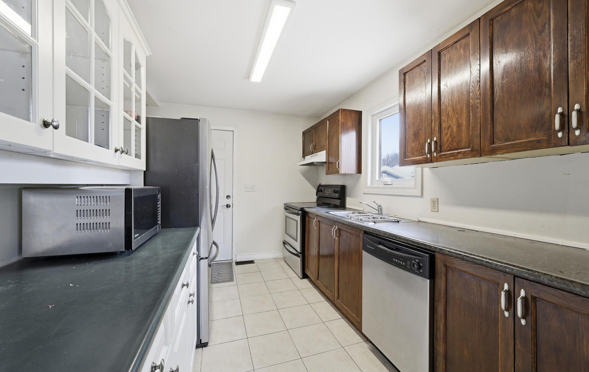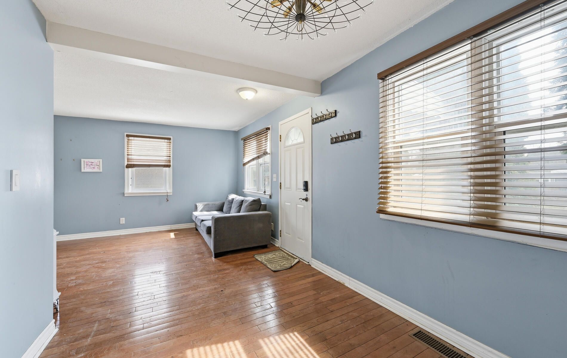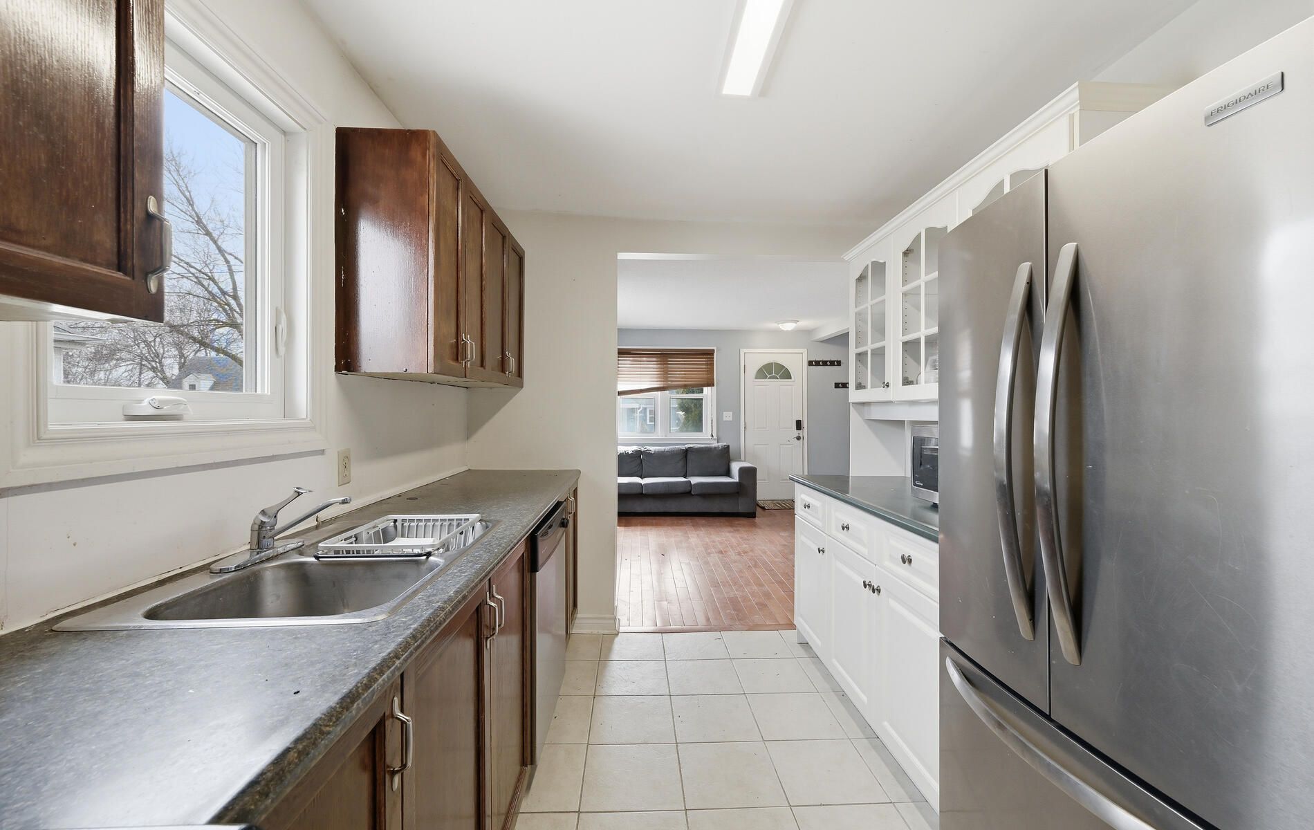 Opportunity knocks! This detached 1. 5 storey home is a must see! Perfect for first time buyer's or someone looking to downsize. It is the perfect blend of charm and character. This home features a kitchen with ceramic floor, built in dishwasher and a window. An open concept living room with hardwood floors and a window. An l-shaped dining room with hardwood floors a window. 3 bedrooms. Two bedrooms have broadloom, a closet and a window, the other bedroom has laminate flooring and a window. The basement area has been partially finished waiting for those finishing touches to complete the space. Good size deck and backyard. Parking for 3 cars. Close to schools, shopping and transit. Minutes to the 401. An ideal location for convenience and commuters.