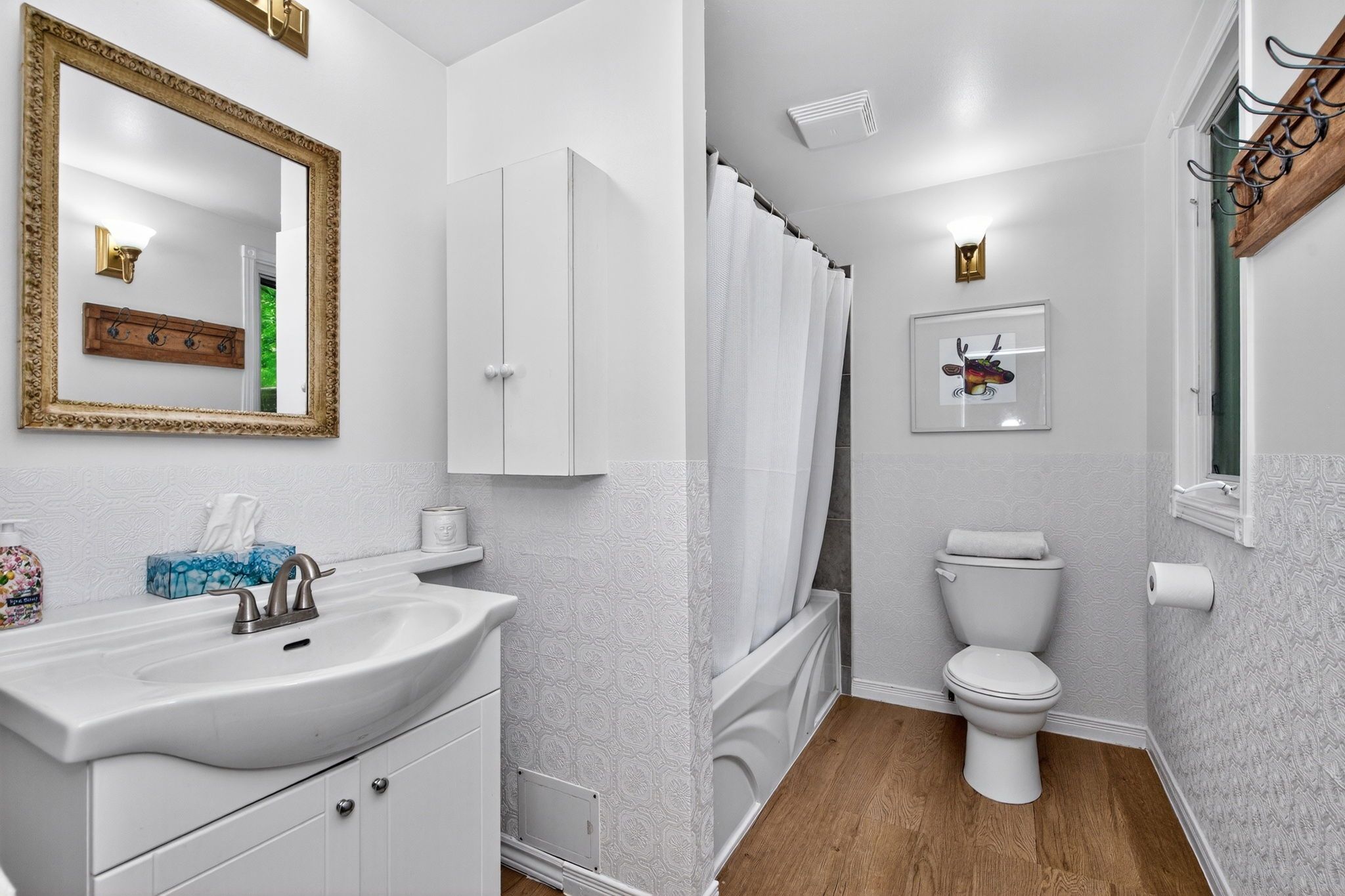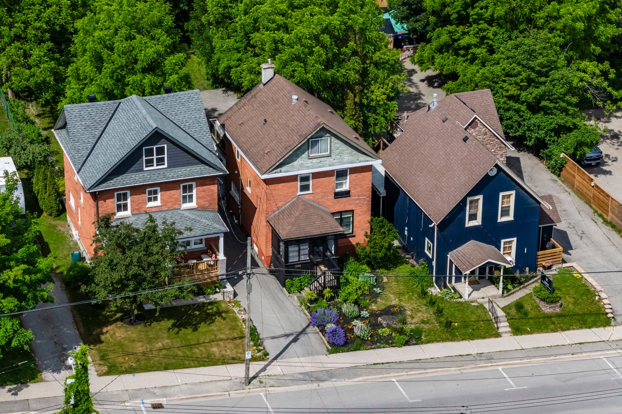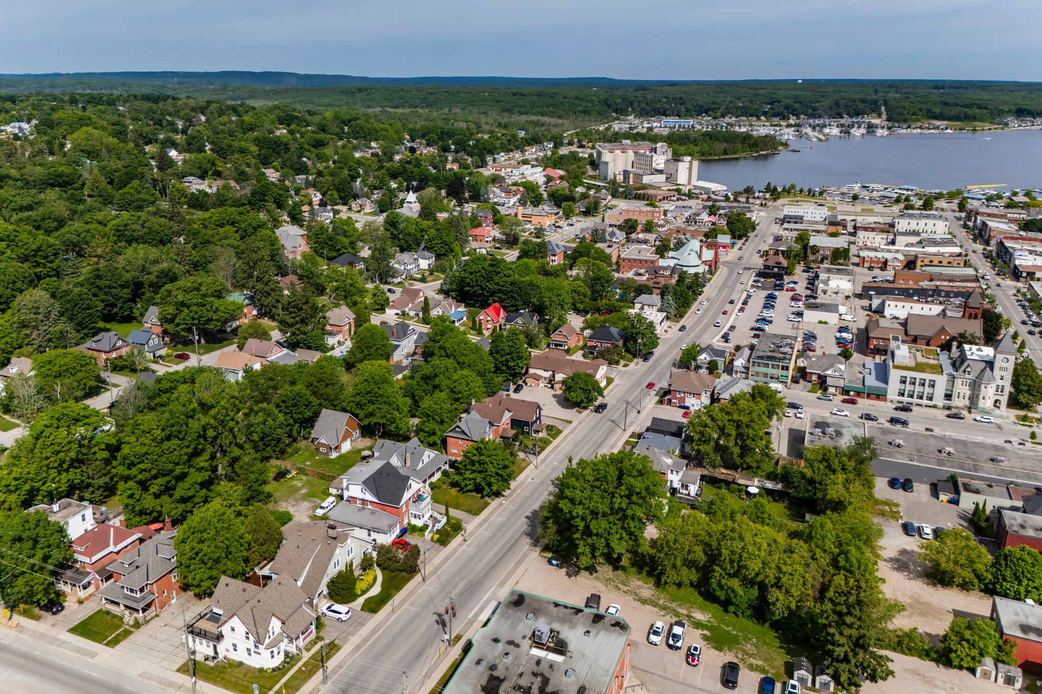 This updated century home offers timeless charm and exceptional flexibility, set within dc-f2 zoning that supports a variety of uses. Ideal for a growing or multi-generational family, or those simply seeking a spacious and adaptable home, this property easily accommodates a range of lifestyles. The home features a thoughtful and versatile layout with generous living space across multiple levels. The upper level includes two bright bedrooms and a large private deck overlooking the peaceful backyard, while the main floor offers three additional bedrooms and preserves the character of the original home, enhanced by tasteful modern updates. A full basement provides ample storage and added functionality. Perfectly situated in a prime, walkable location just steps from downtown, georgian bay and the marina, as well as shops, restaurants, and local amenities, this home seamlessly blends historic character, modern comfort, and everyday convenience.